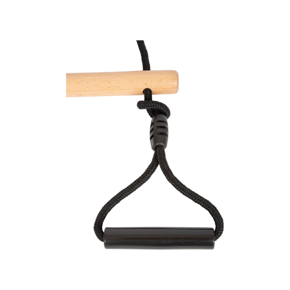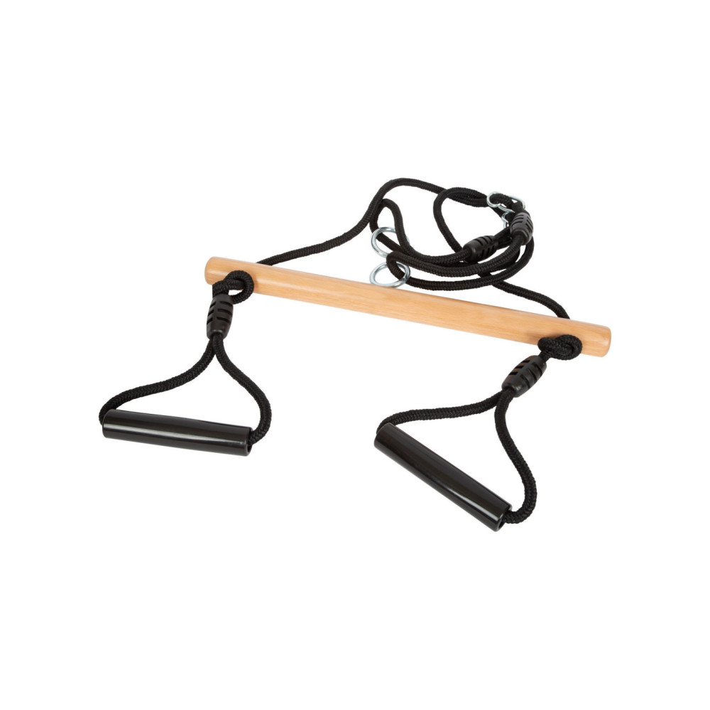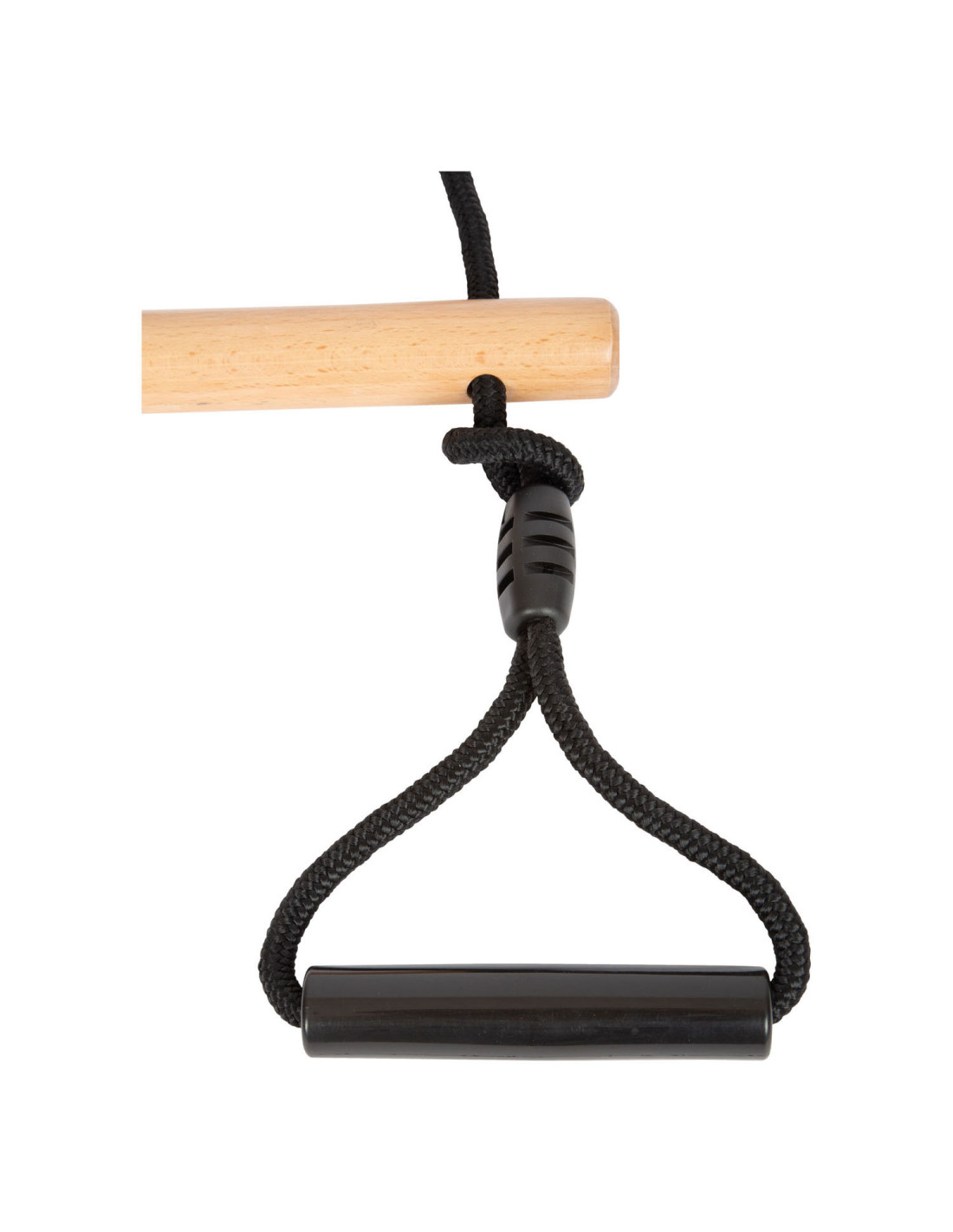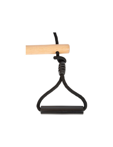 • De houten trapezestang kan gebruikt worden als zitplaats bij het schommelen of gymnastiek