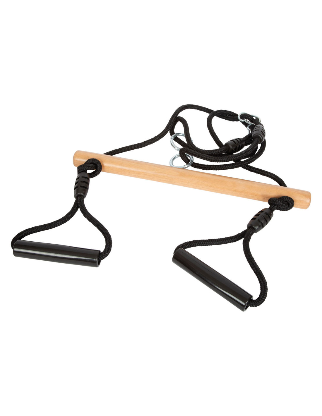Swingen of gymnastiek? Waarom niet allebei met deze trapezeschommel met gymnastiekringen! De houten trapezestang kan worden gebruikt als zitplaats om te schommelen of gymnastiek te doen, terwijl de gymnastiekringen jonge, ambitieuze acrobaten de mogelijkheid bieden om hun bewegingen uit te proberen zoals ze willen. En hier is een bijzonder hoogtepunt: de trapezestang zorgt ervoor dat de afstand tussen de gymnastiekringen constant blijft. Deze schommel is ideaal voor beginners in de gymnastiek. Inclusief in lengte verstelbare touwen en metalen ringen voor het ophangen en afbreken van de trapezeschommel. De trapeze is gemaakt van robuust massief hout en de touwen zijn gemaakt van weerbestendig materiaal, waardoor ze geschikt zijn voor buitengebruik. Dankzij het formaat en draagvermogen ook geschikt voor gebruik door volwassenen.