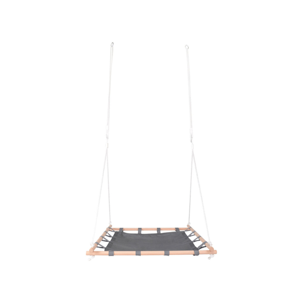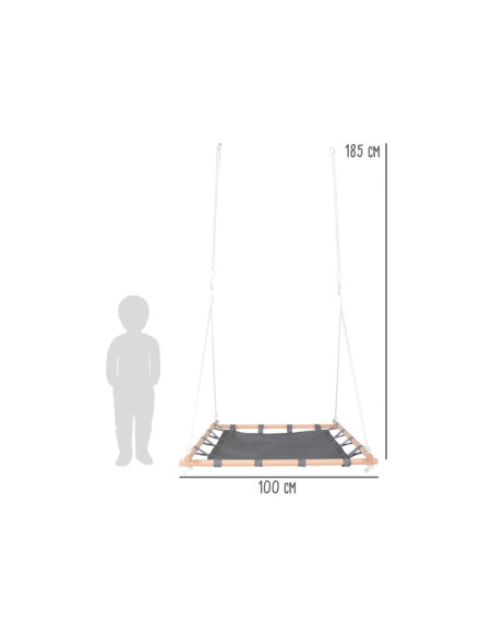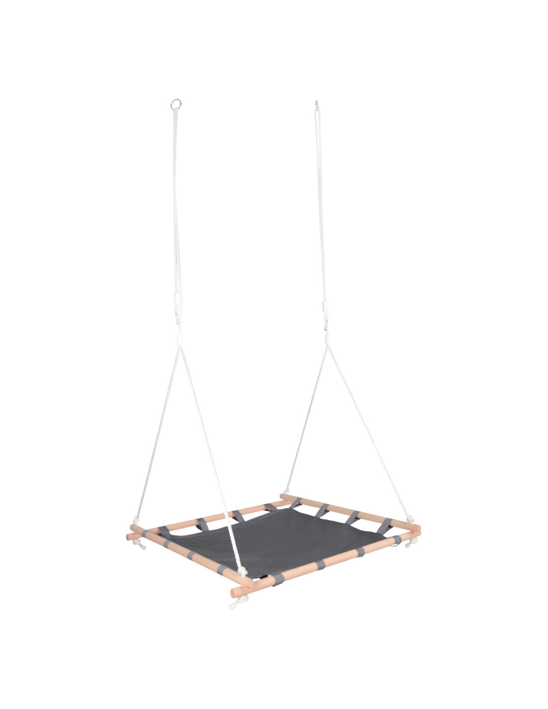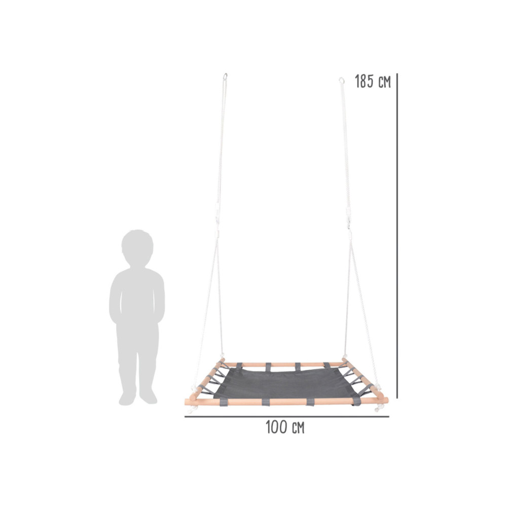 Schommelplezier in vierkante vorm! Of het nu gaat om een schommel voor in de tuin of voor binnenshuis, deze vierkante nestschommel met een modern design is overal een echte blikvanger met zijn stabiele frame van natuurlijk behandeld hout! Het grote, comfortabele schommeloppervlak van duurzaam en gemakkelijk schoon te maken materiaal biedt ruimte voor meerdere kinderen om te schommelen, plezier te hebben en te ontspannen. Iedereen kan opstappen zolang er plek is in het nest! Schommelen op nestschommels moedigt je aan om het ene moment te ontspannen en het volgende moment heel veel plezier te hebben. Van zacht heen en weer zwaaien tot hoogvliegende bogen, het kan allemaal. Ook hier maakt het milieuvriendelijke materiaal hout een goede indruk!
