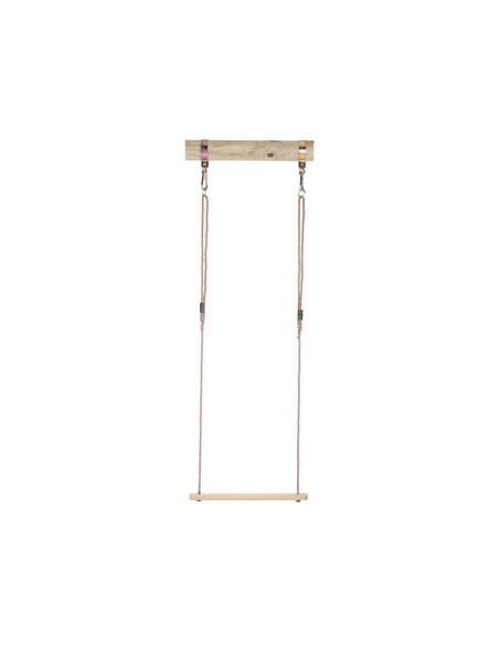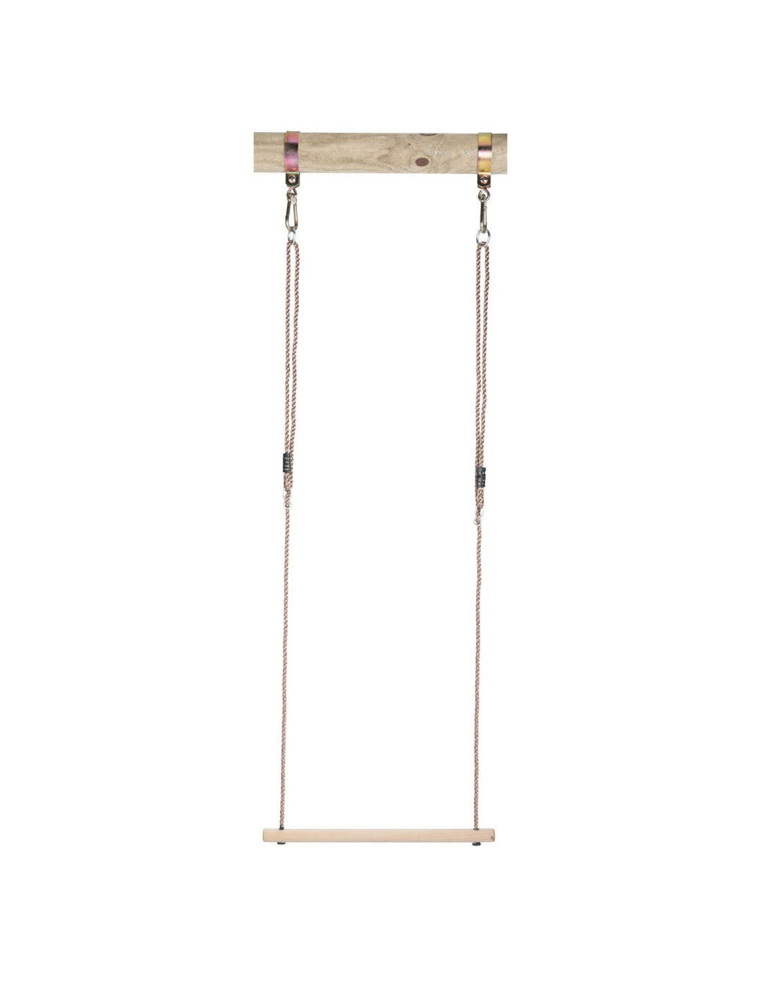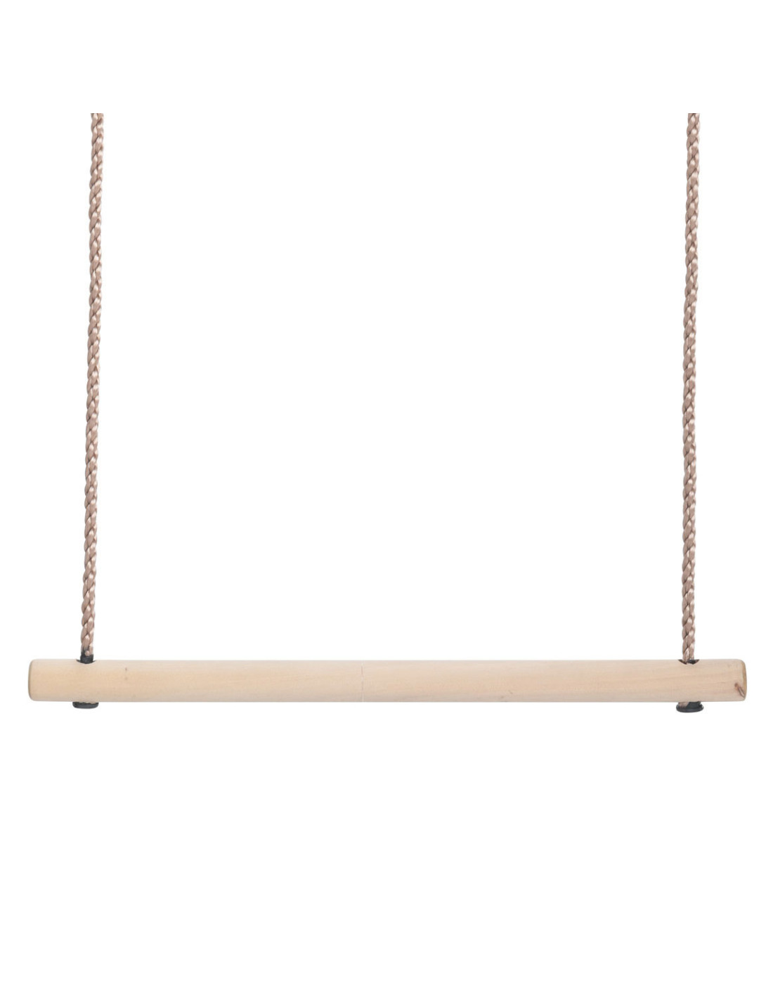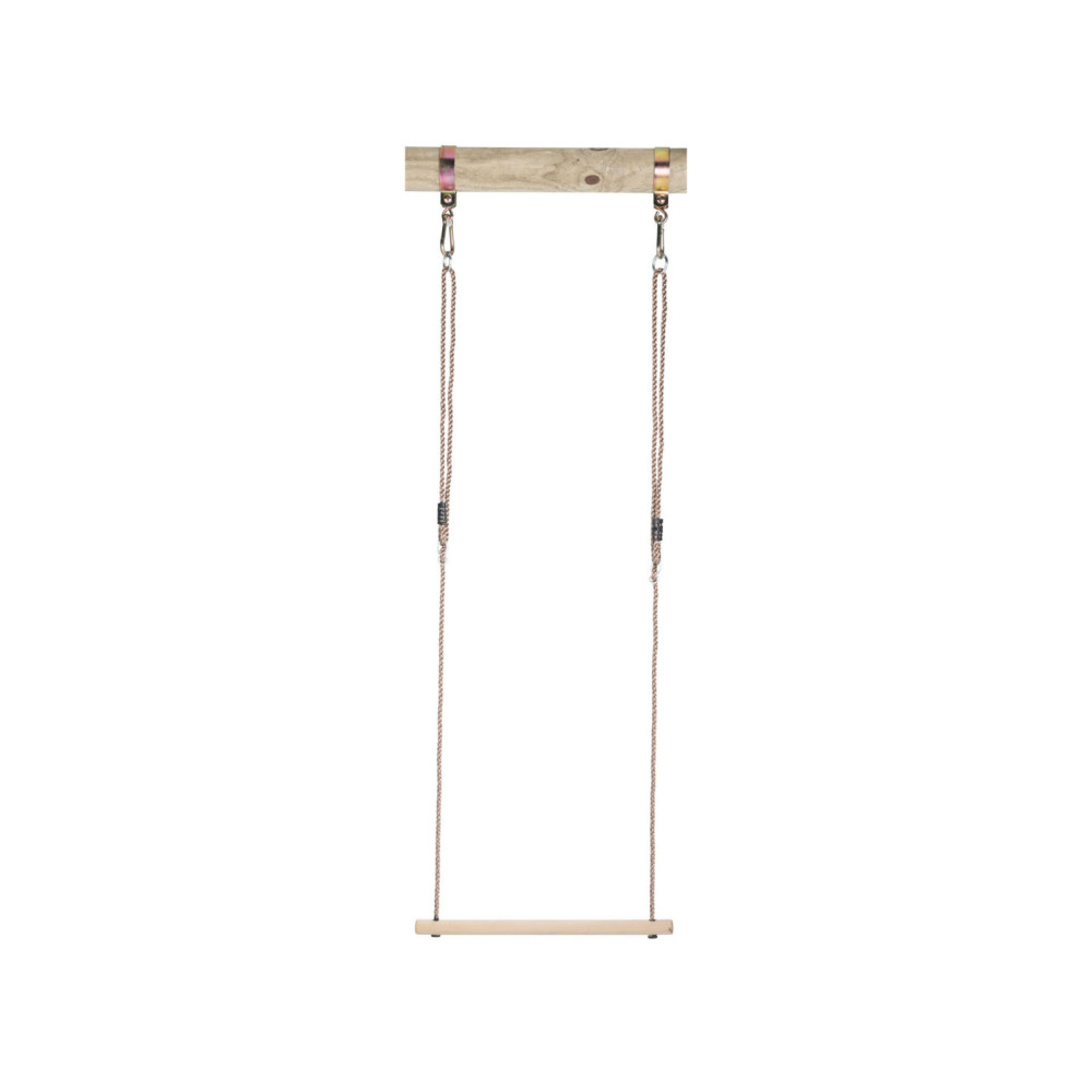 Houten Trapeze. De trapeze is voorzien van in lengte verstelbare touwen zodat ze altijd op de juiste hoogte hangen. Materiaal touw: polypropyleen. De trapeze is 48 centimeter breed. Geschikt voor kinderen vanaf 3 jaar.