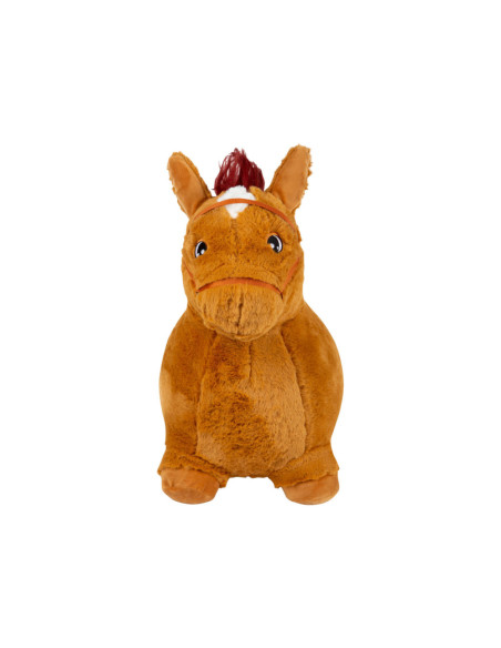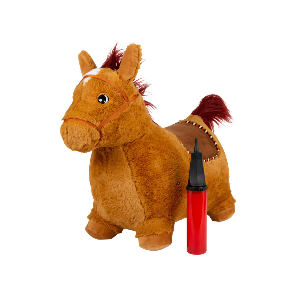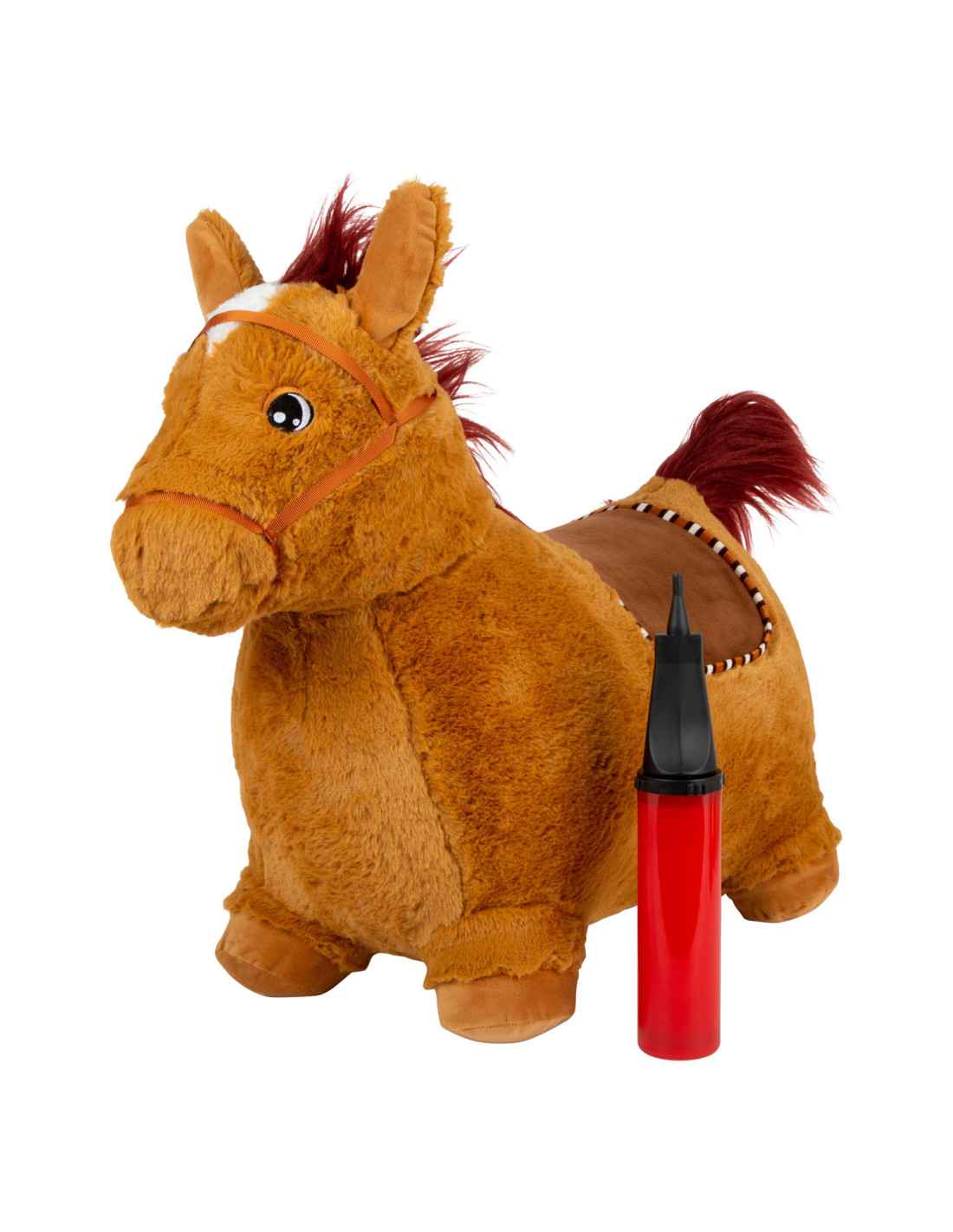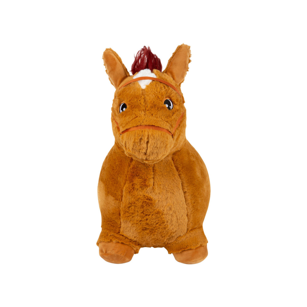Dit knuffelzachte huppelpaard combineert een robuust rubberen lijf met pluizig zachte pluche vacht. Dat maakt het rijden op je favoriete huppeldier nog leuker! De zachte manen, staart, halster en zadel van het kleine huppelpaard zorgen voor realistisch speelplezier. Compatibele luchtpomp inbegrepen.