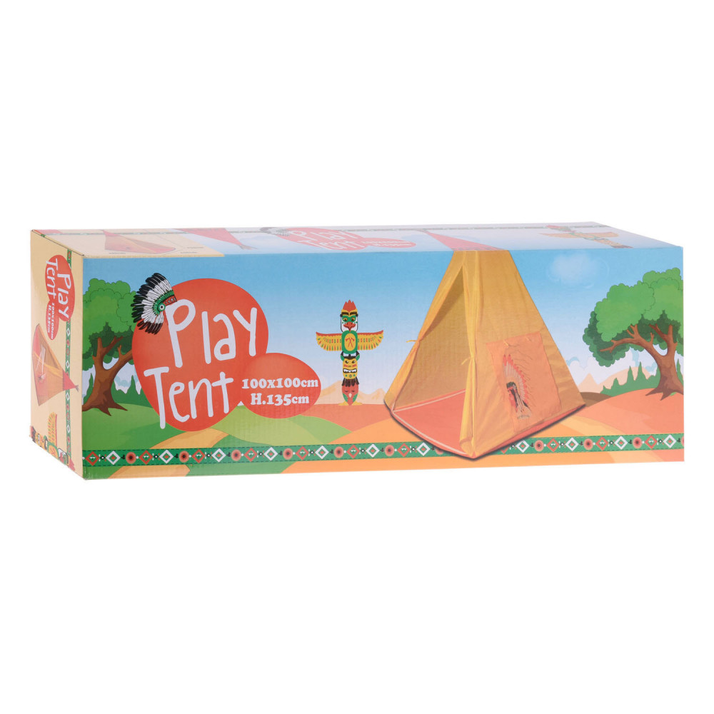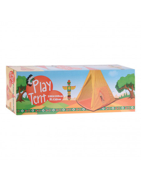 De tipi tent is gemaakt van hoogwaardige materialen en heeft een stevig frame dat gemakkelijk in elkaar te zetten is. Het heeft een mooie print van een indiaan met een hoofdtooi op de zijkant van de tent en zal zeker de verbeelding van je kinderen stimuleren.