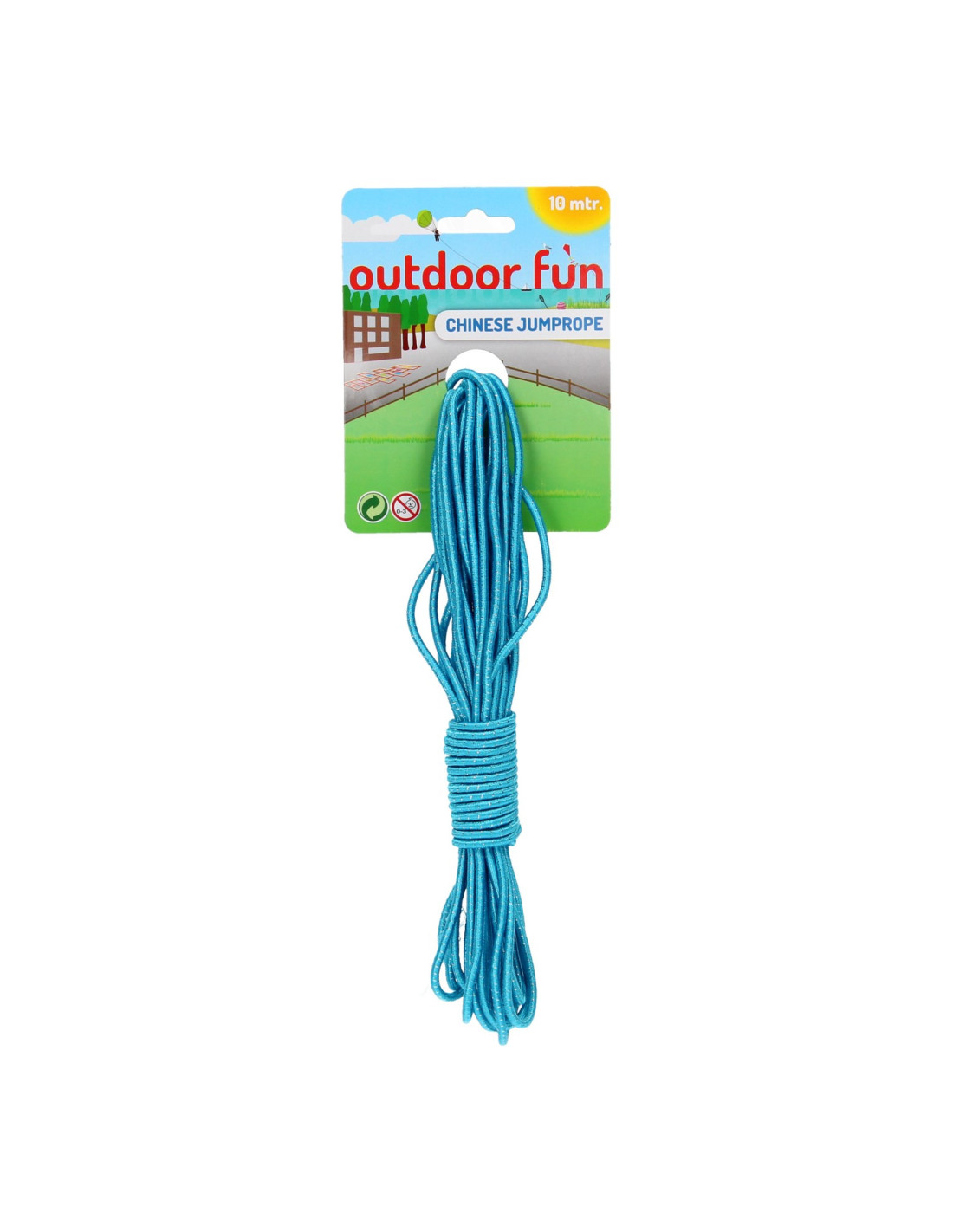Maak de mooiste sprongen en dansjes met dit blauwe springelastiek met glitters. Houd het elastiek met 2 stoelen of kinderen uit elkaar en spring, draai en maak de leukste moves!
