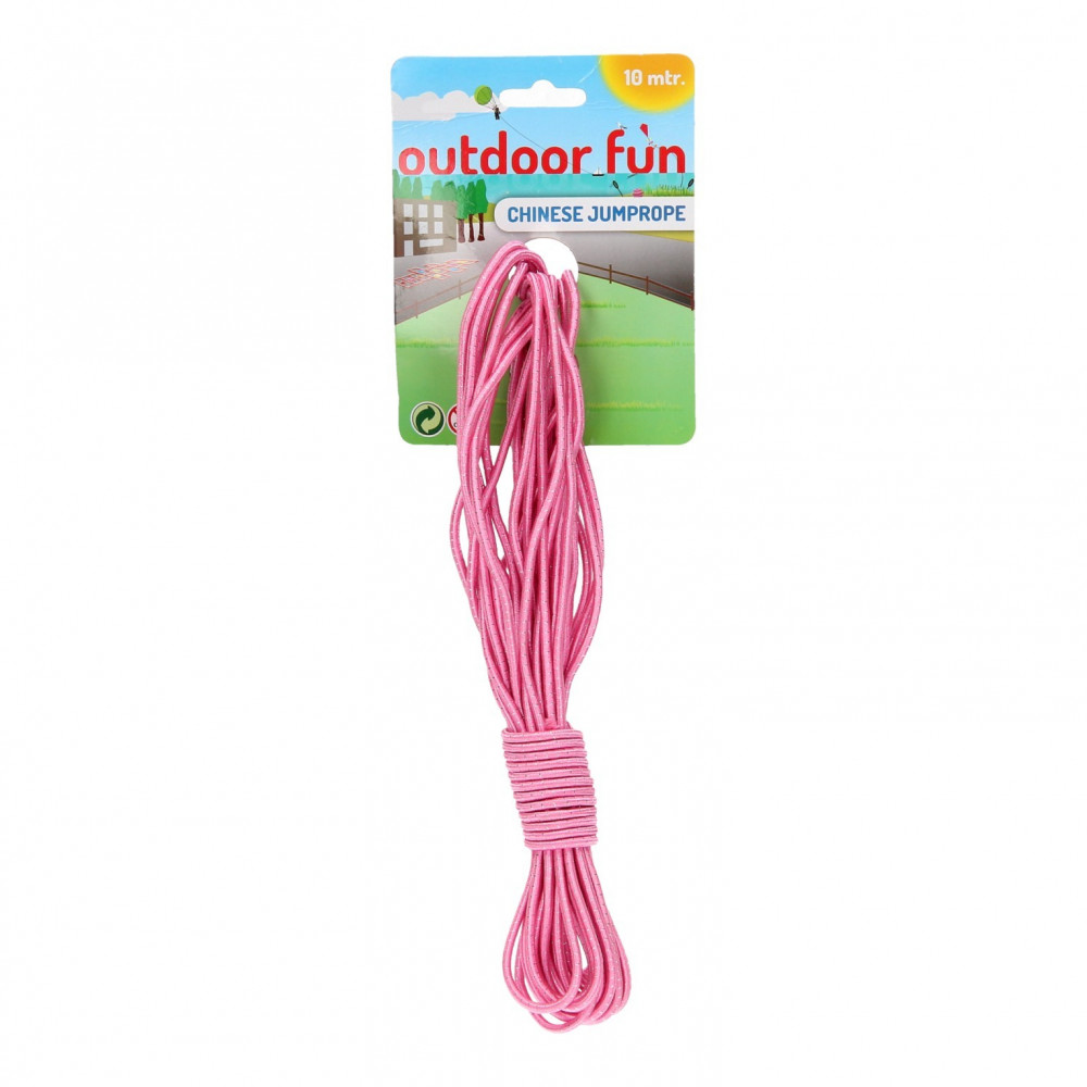 Maak de mooiste sprongen en dansjes met dit roze springelastiek met glitters. Houd het elastiek met 2 stoelen of kinderen uit elkaar en spring, draai en maak de leukste moves!