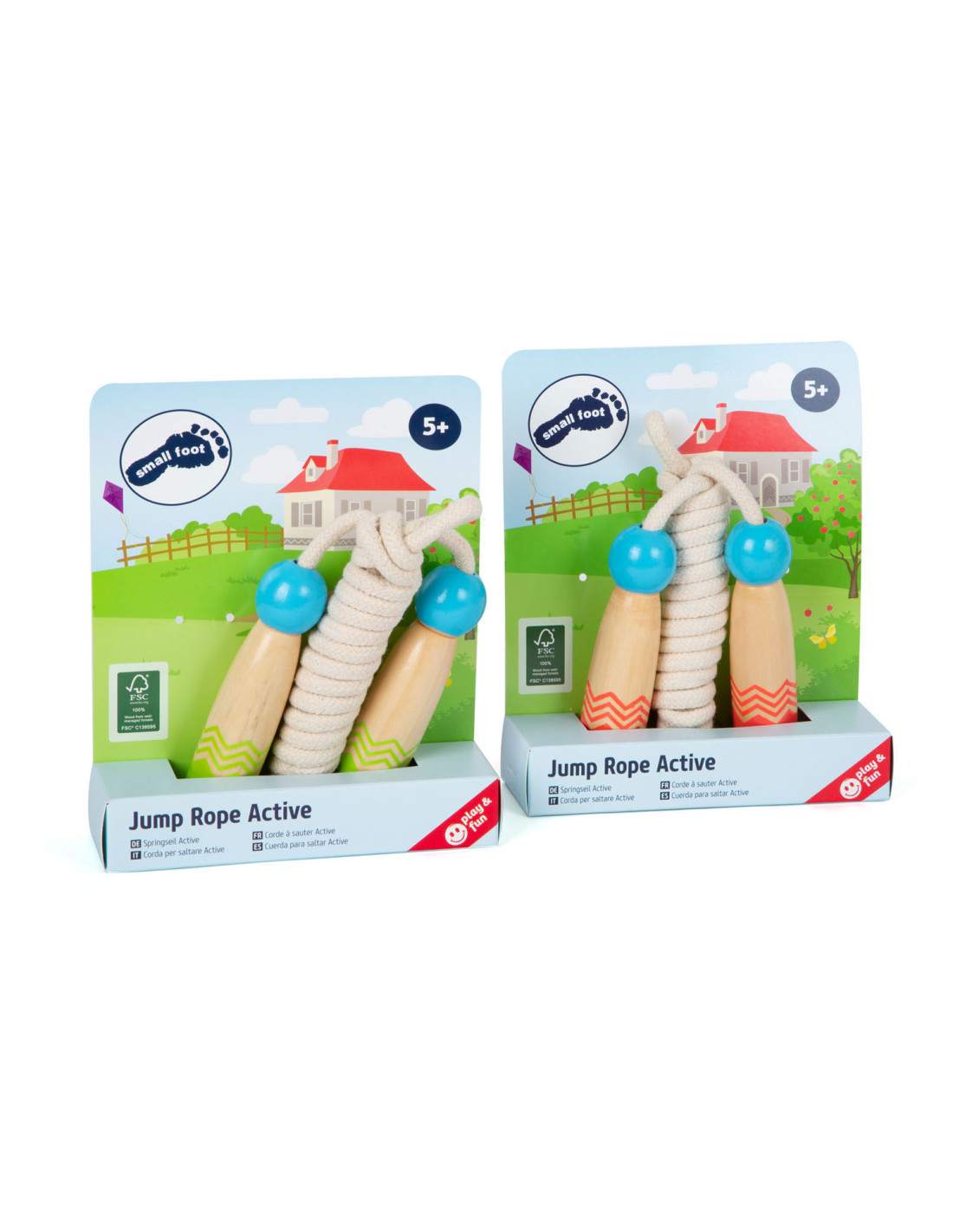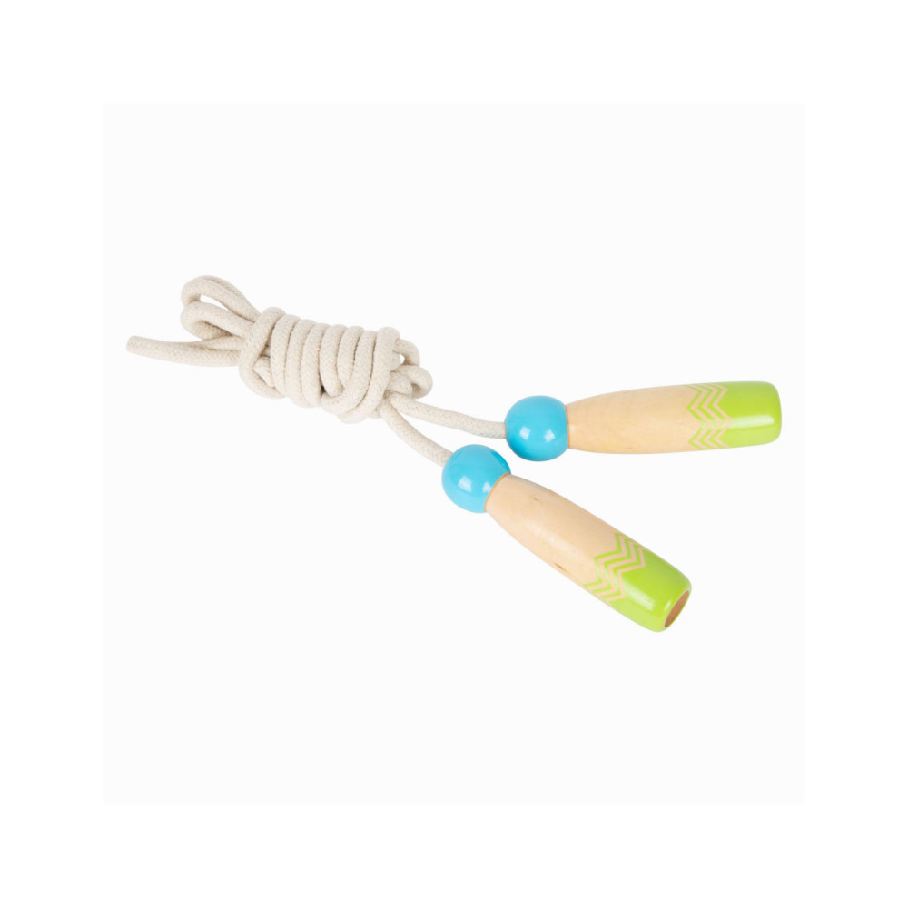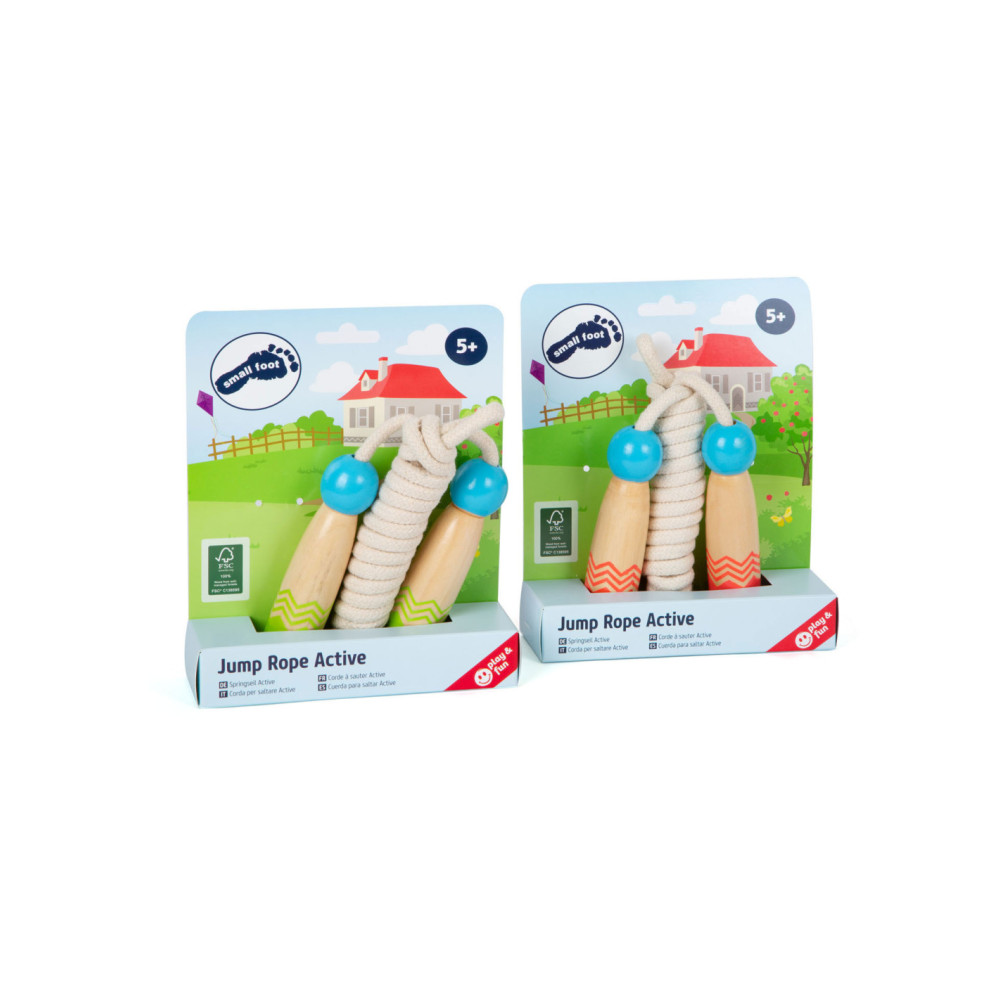 Van touwtjespringen word je fit! Met dit duurzame springtouw zijn spel, plezier en actie gegarandeerd. Bij het springen kunnen kinderen goed stoom afblazen terwijl ze hun behendigheid, kracht en uithoudingsvermogen trainen. De afgeronde grepen van FSC® 100%-gecertificeerd hout en liggen bijzonder goed in de hand. De touwlengte kan worden aangepast via de knopen in de grepen.