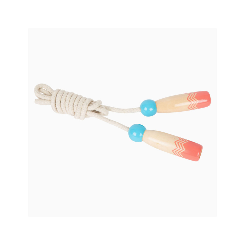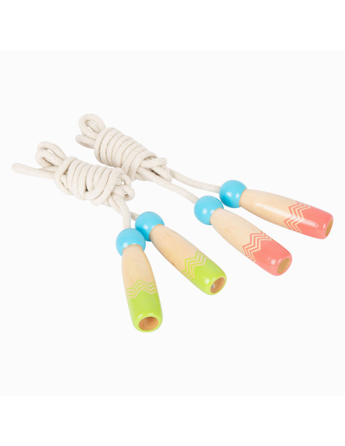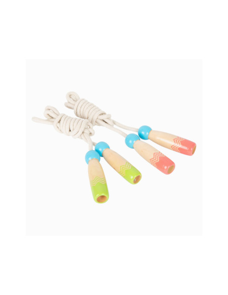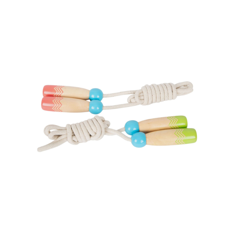 Van touwtjespringen word je fit! Met dit duurzame springtouw zijn spel, plezier en actie gegarandeerd. Bij het springen kunnen kinderen goed stoom afblazen terwijl ze hun behendigheid, kracht en uithoudingsvermogen trainen. De afgeronde grepen van FSC® 100%-gecertificeerd hout en liggen bijzonder goed in de hand. De touwlengte kan worden aangepast via de knopen in de grepen.