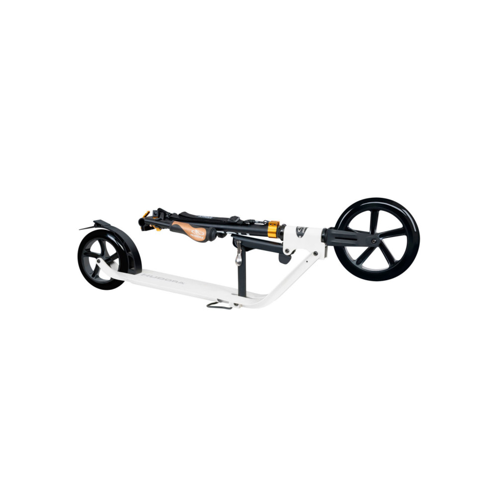 Een dubbele voetstandaard voor veilig parkeren, zelfs onder belasting, is ook geïnstalleerd. De unieke grote volledig PU-wielen (diameter 230 mm aan de voorkant, diameter 205 mm aan de achterkant) scoren met ABEC 5 chromen kogellagers Het stuur is in hoogte verstelbaar. Met een maximaal gebruikersgewicht van 120 kg is de Style 230 buitengewoon veerkrachtig.