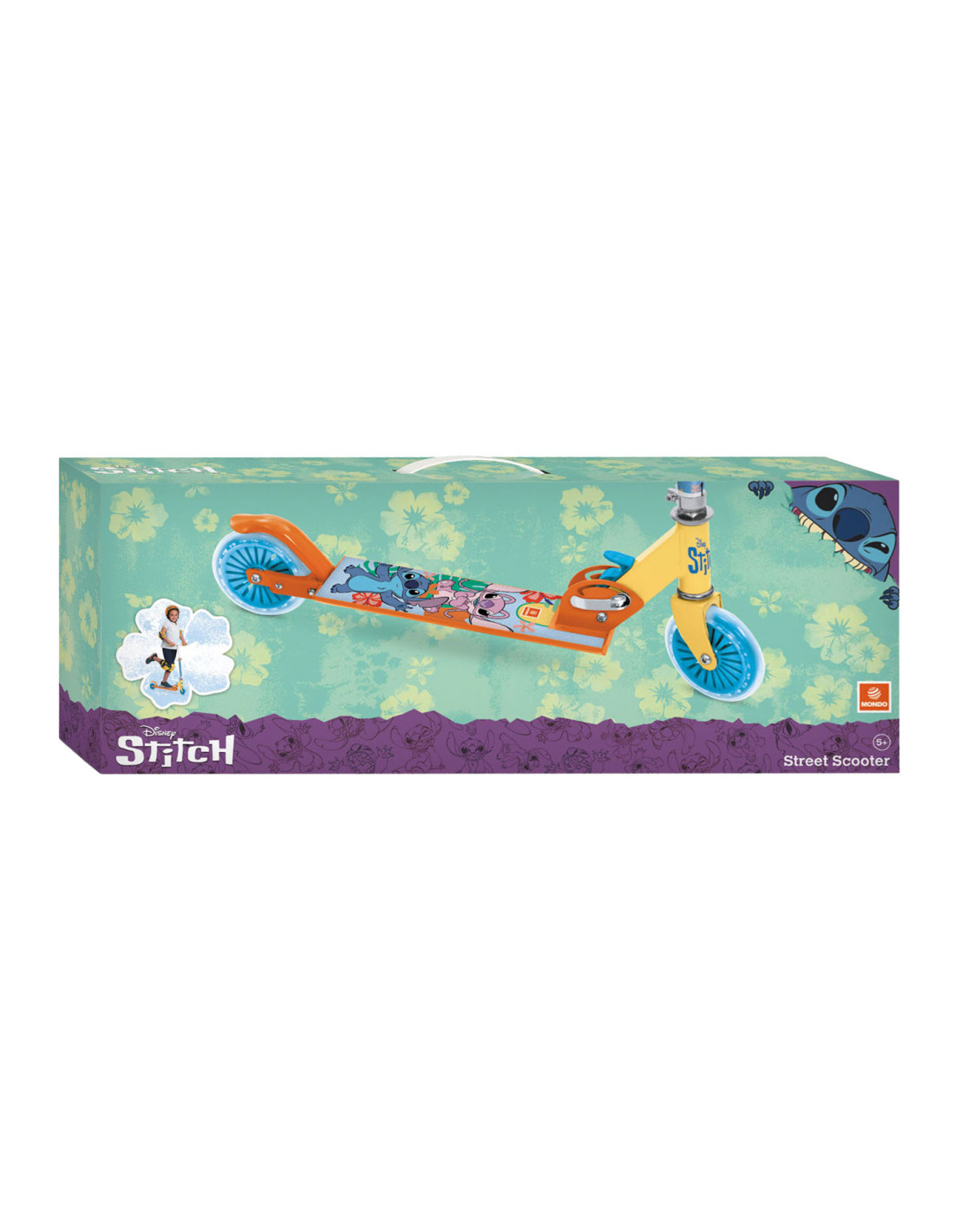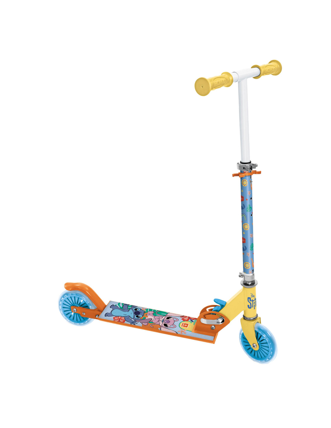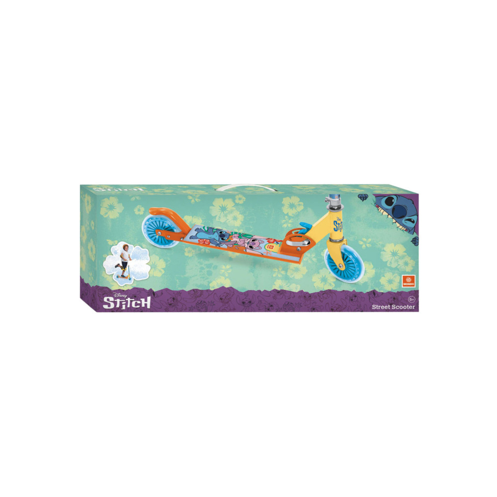 Kinderstep met wielen in design van Stitch. De step heeft een rem, een in hoogte verstelbaar stuur en een eenvoudig vouwsysteem voor opbergen en vervoeren. Geschikt voor kinderen vanaf 5 jaar oud met een maximaal gewicht van 50 kg.
