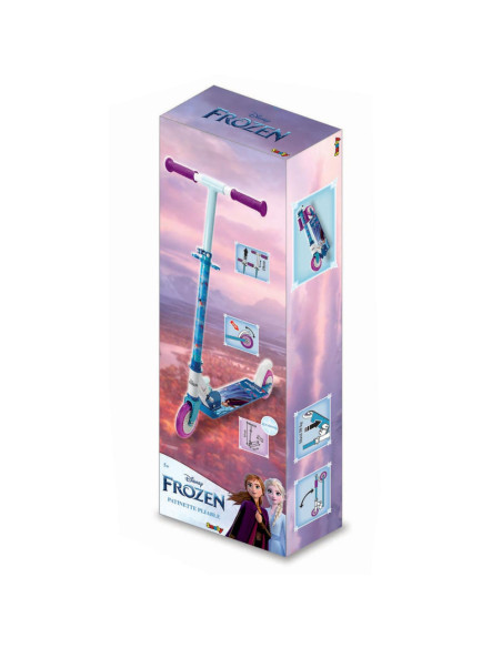 Smoby Disney kinderstep in de kleuren en met prints van Frozen. Het stevige metalen frame zorgt voor een lange levensduur en veilige, stabiele rit. Afmetingen: 73/78/83 x 32 x 70 centimeter. Deze kinderstep met 2 wielen van Smoby is geschikt voor kinderen vanaf 3 jaar en met een maximumgewicht van 50 kilogram.