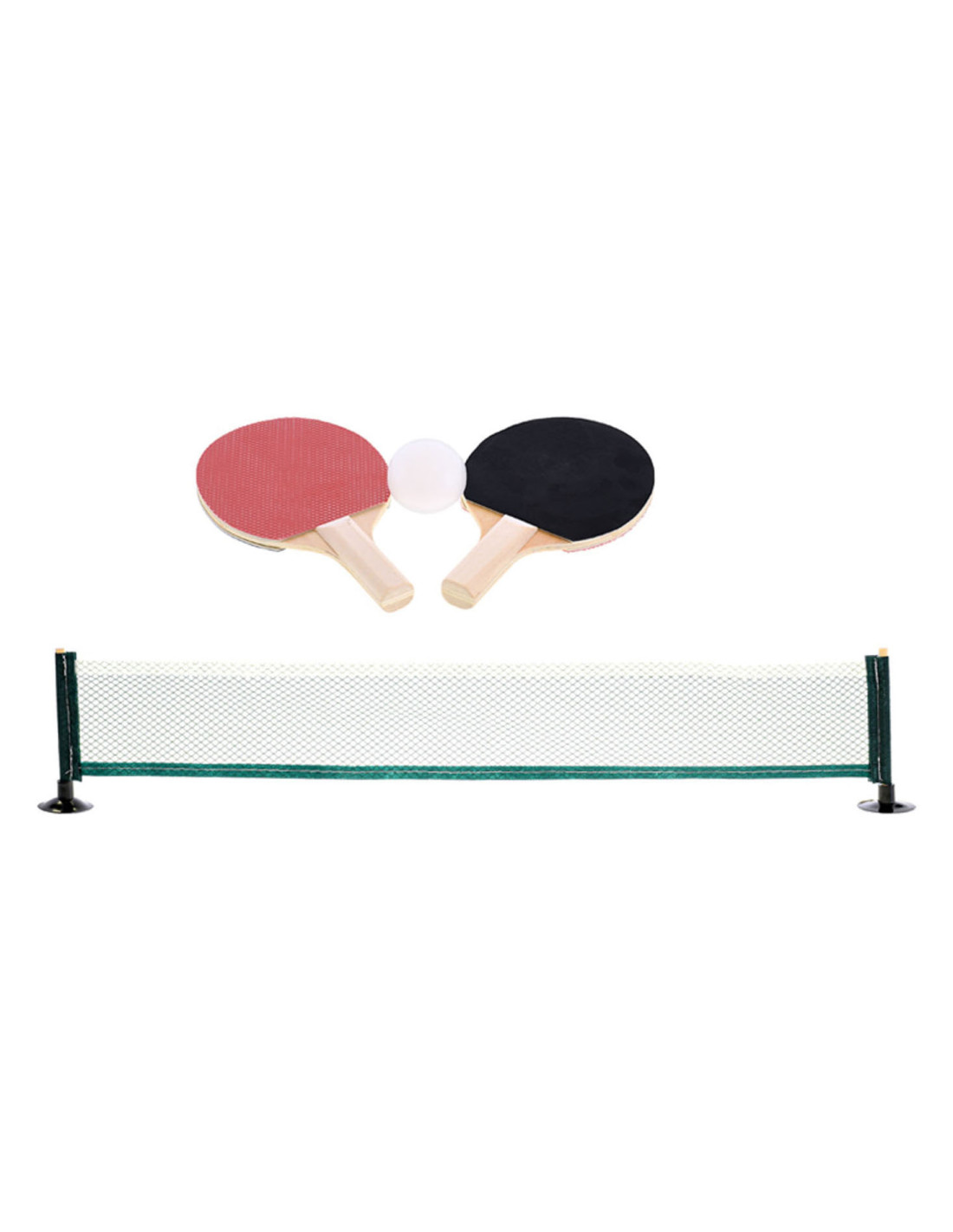 Mini set om je tafel te veranderen naar een tafeltennistafel. Met twee balletjes, een net en twee kleine batjes.