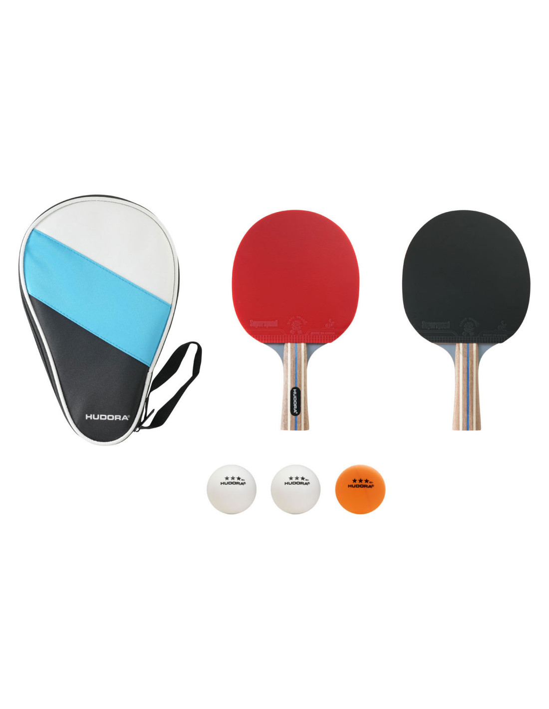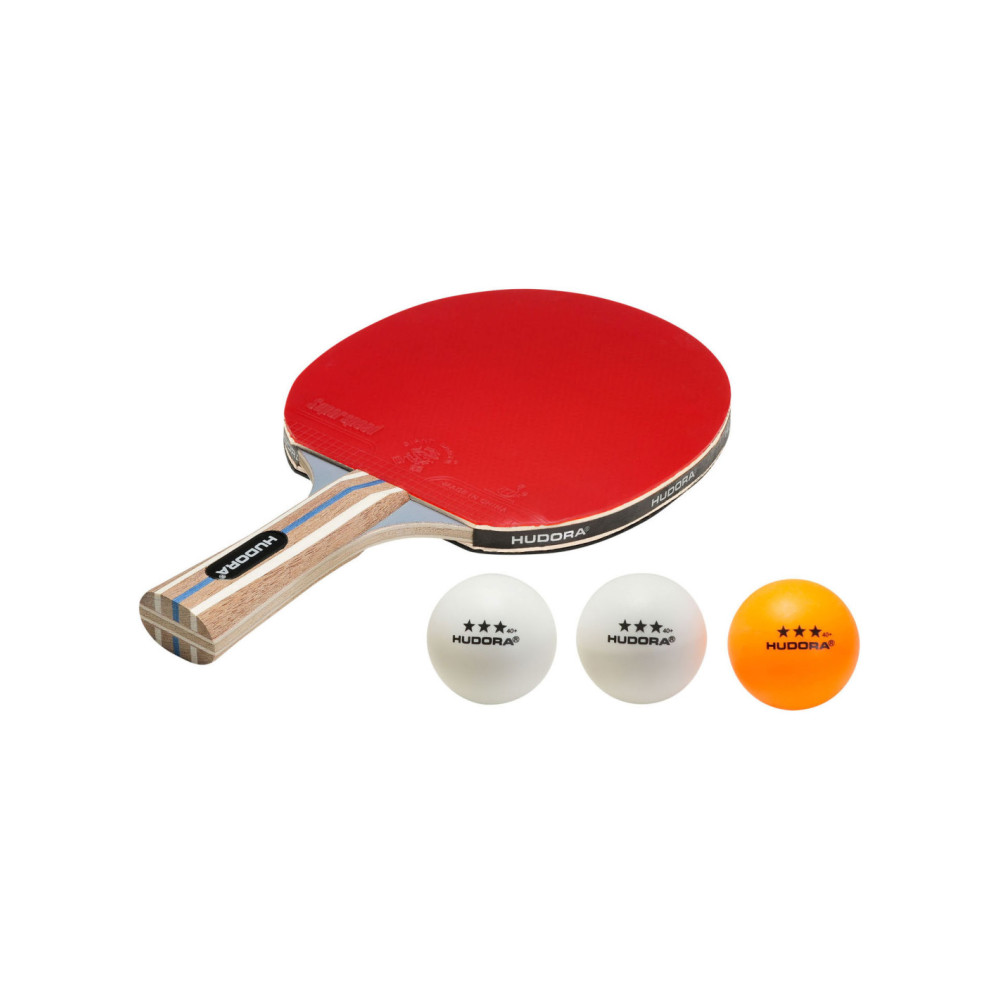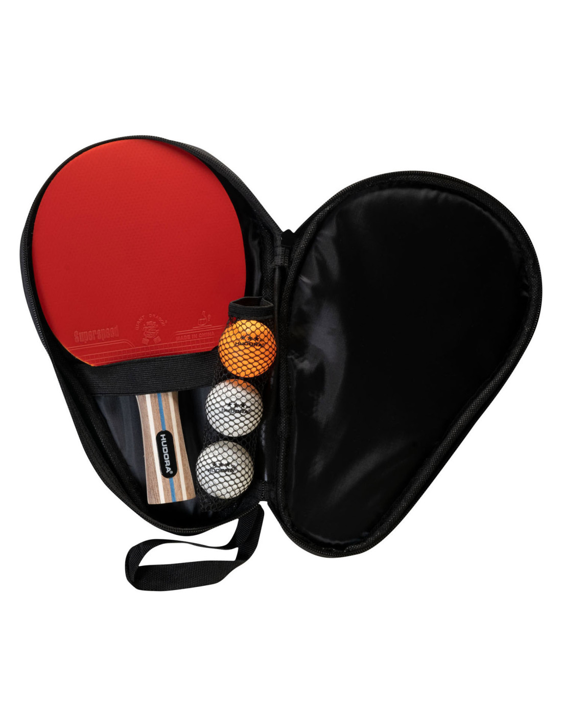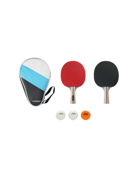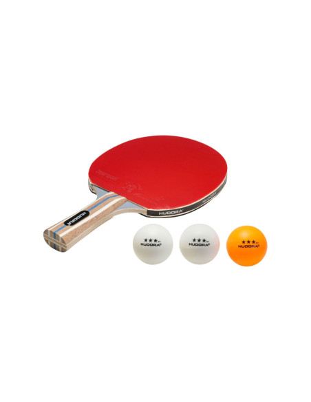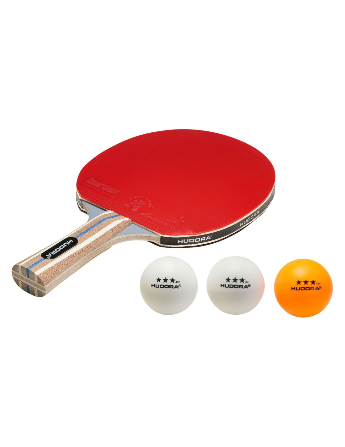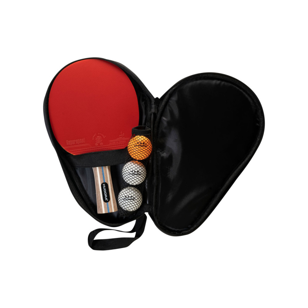 Tafeltennisset van Hudora met 1 Attack batje (6,5 mm dik) en 3 pingpongballen, hoge kwaliteit.