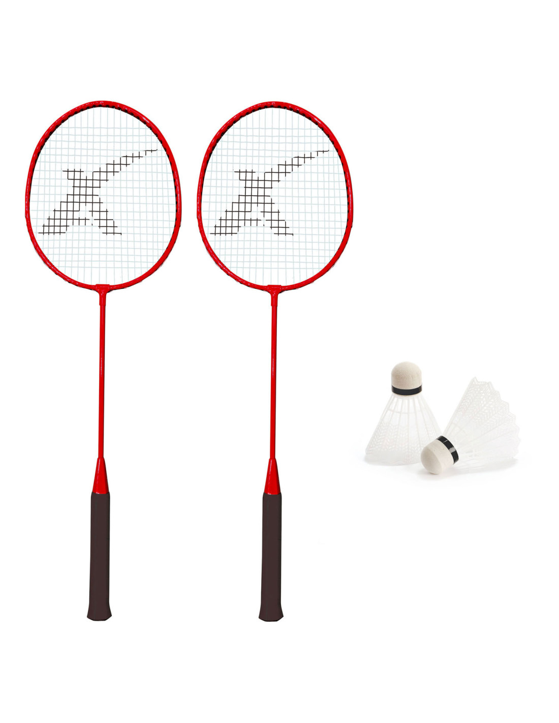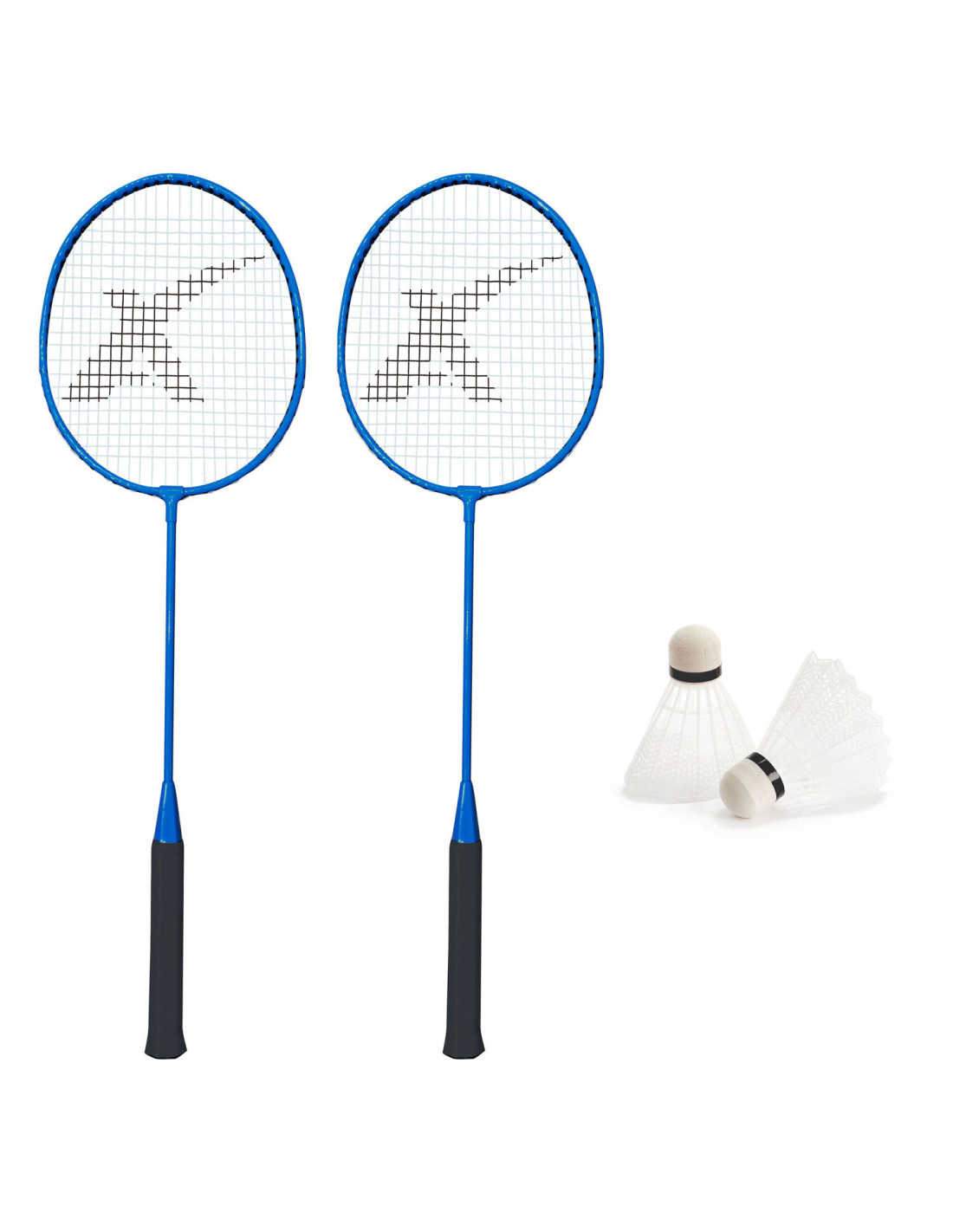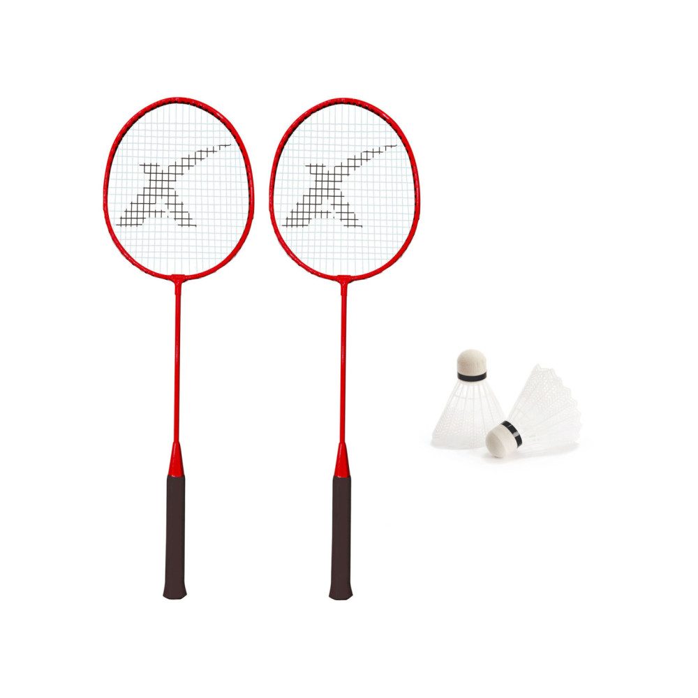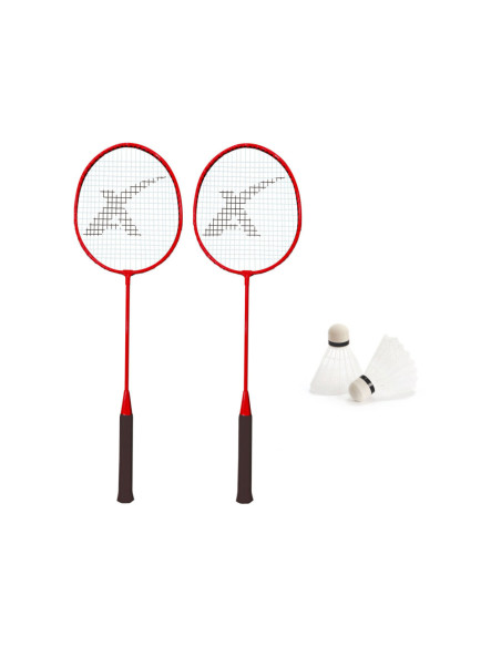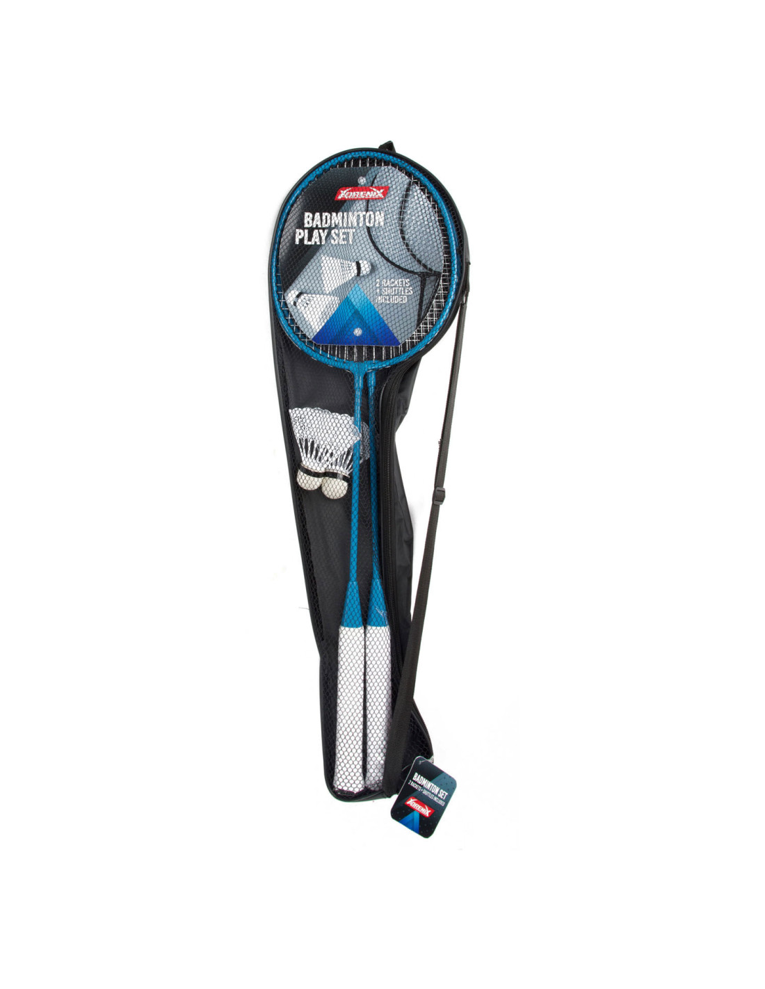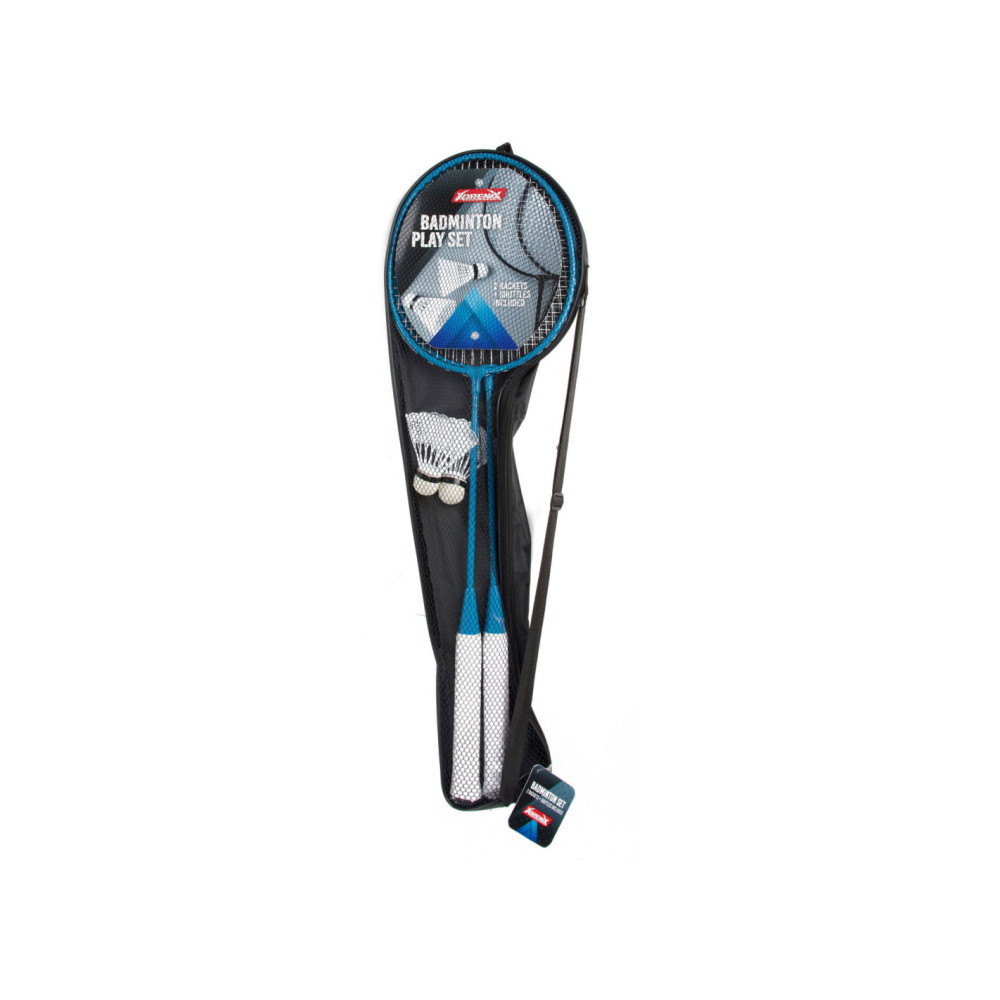 ADRENIX Badmintonset in handige reistas. De set bestaat uit twee badmintonrackets (verkrijgbaar in rood en blauw) en 2 shuttles. Afmetingen: 27 x 28 x 3 centimeter.