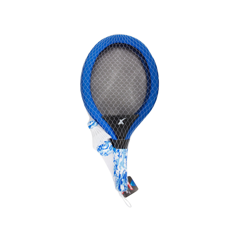 Adrenix tennissetje met zachte rackets, een shuttle en zachte bal. Afmetingen: ca. 7 x 28 x 59 centimeter. Verkrijgbaar in 4 verschillende kleuren. Geschikt voor kinderen van 3 jaar en ouder.