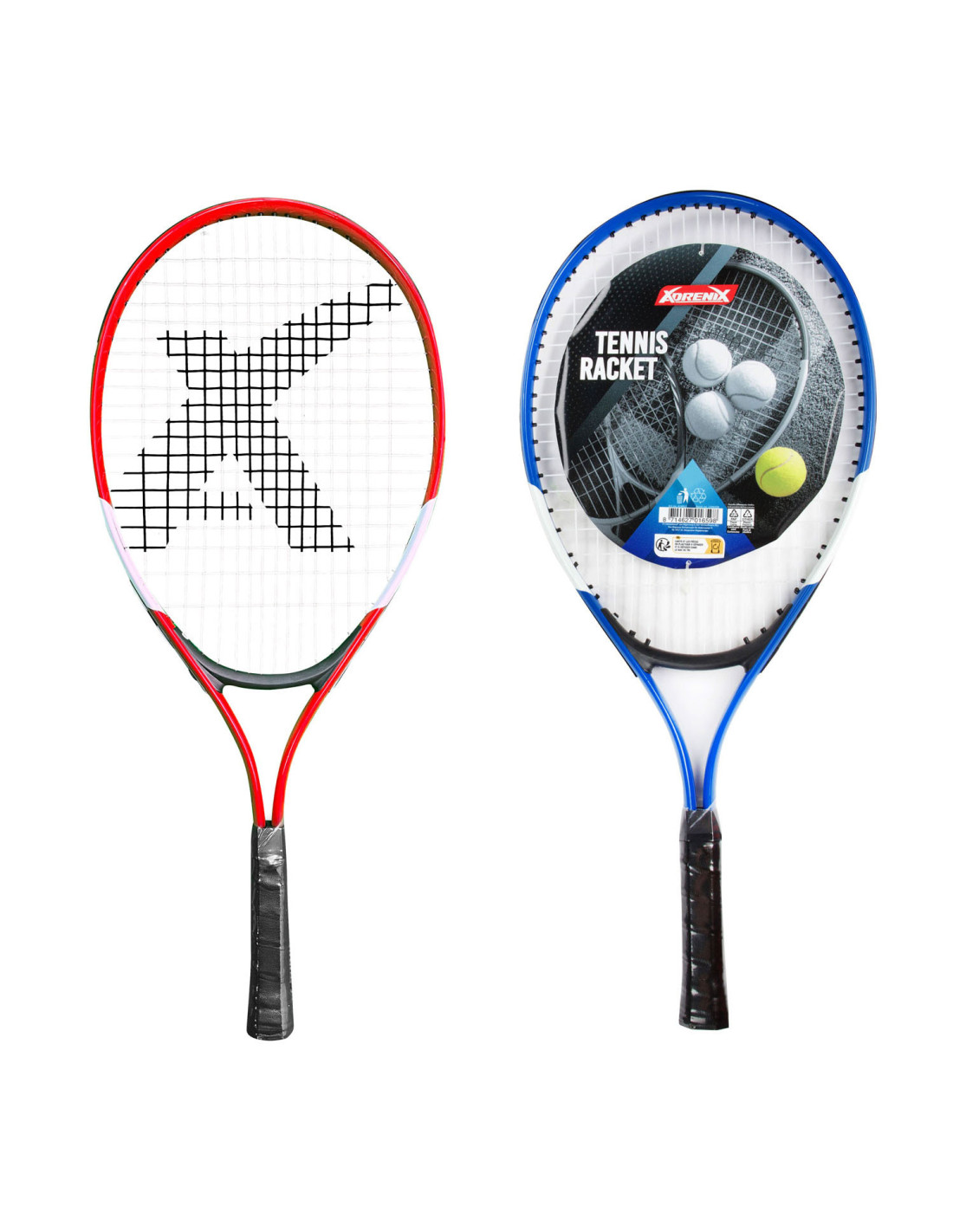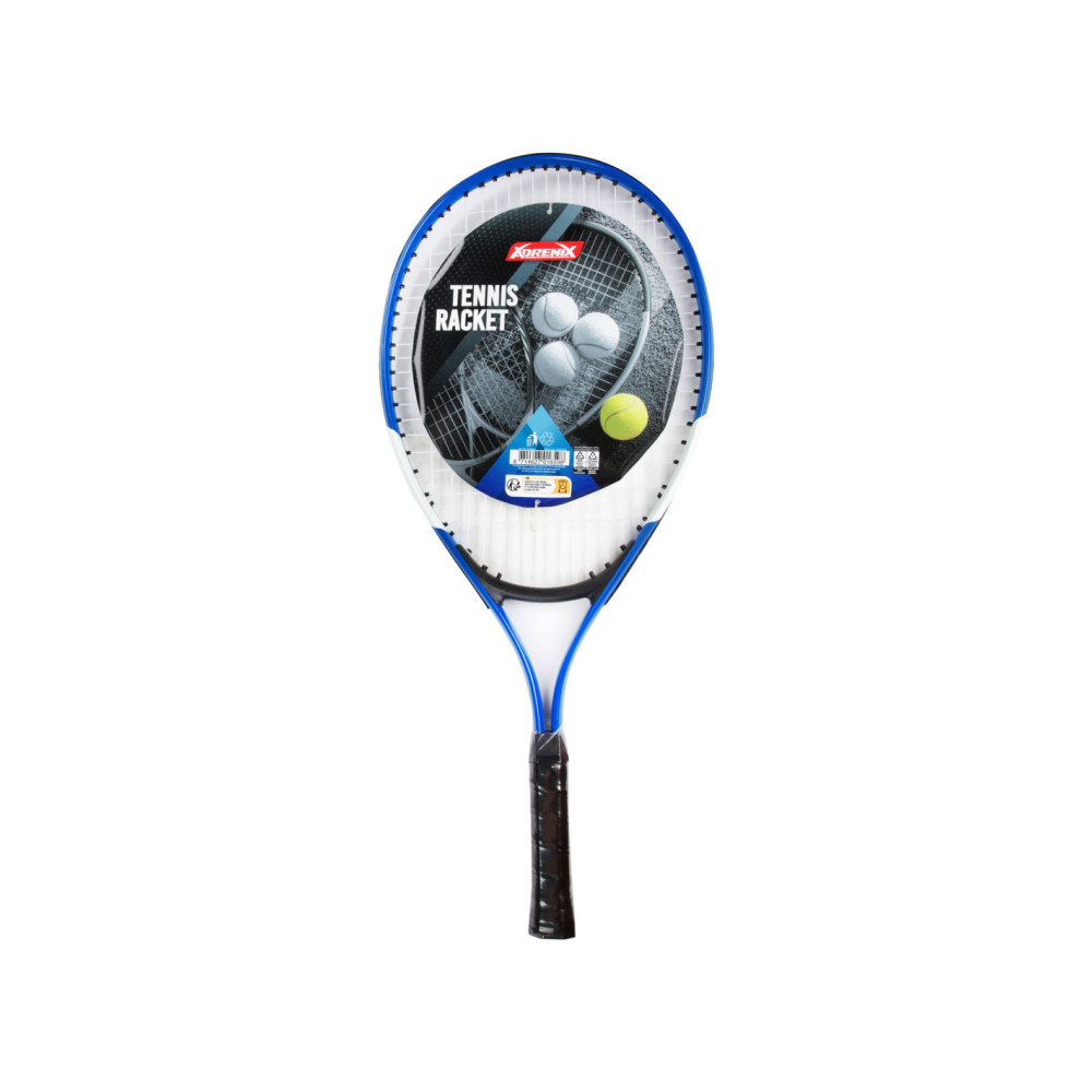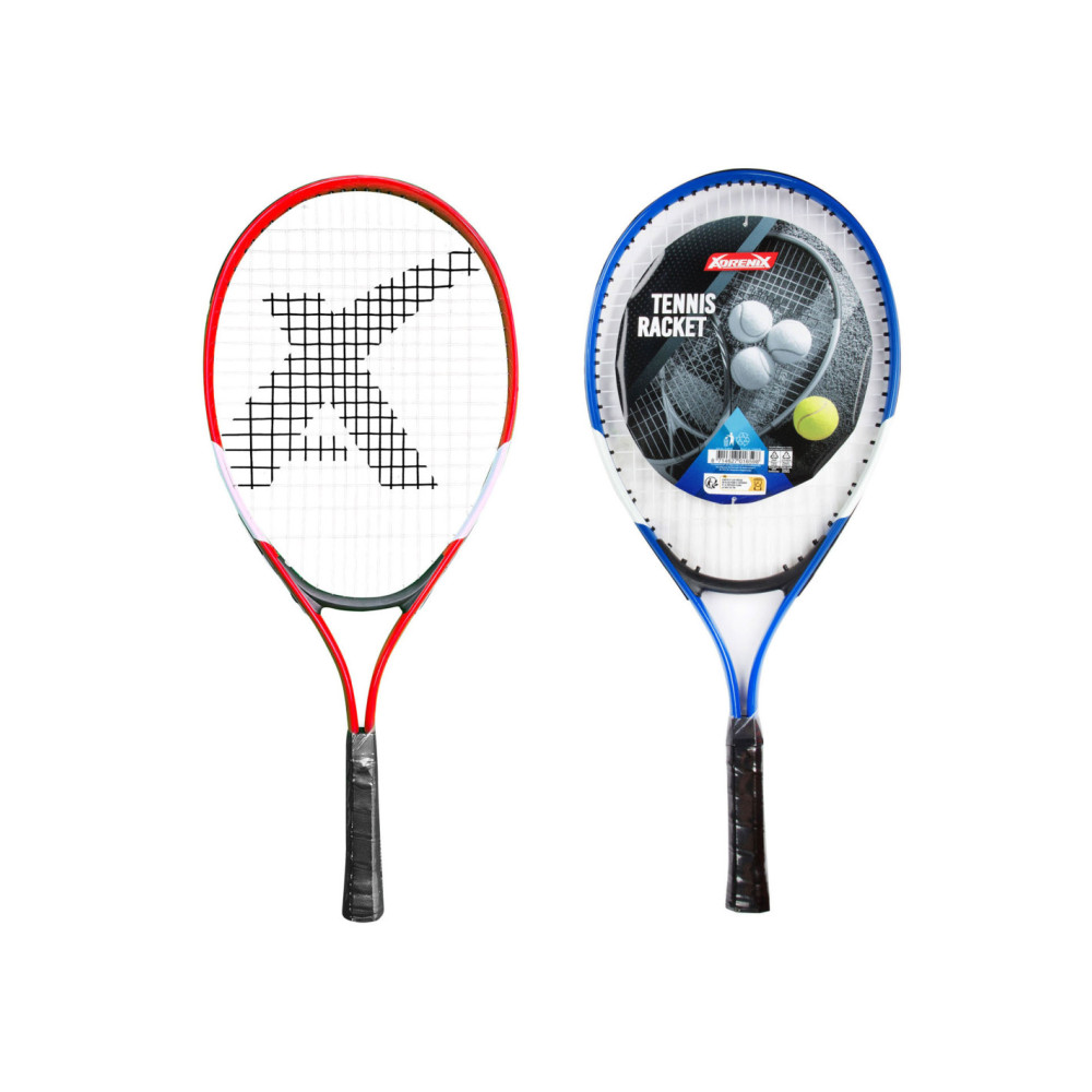 ADRENIX tennisracket. Het racket wordt geleverd in rood of blauw. Afmetingen: 59 x 26 x 3,5 centimeter.