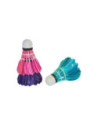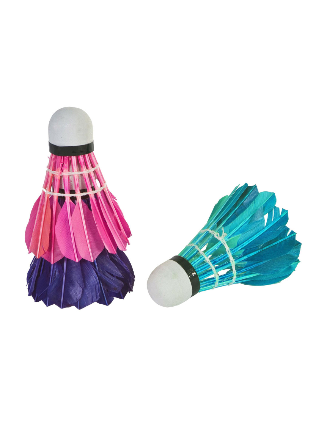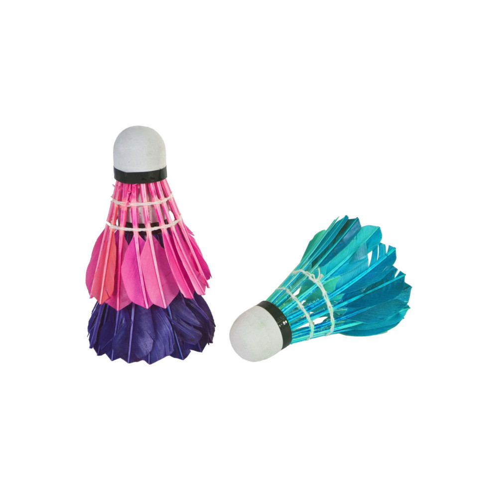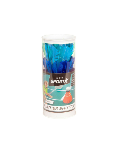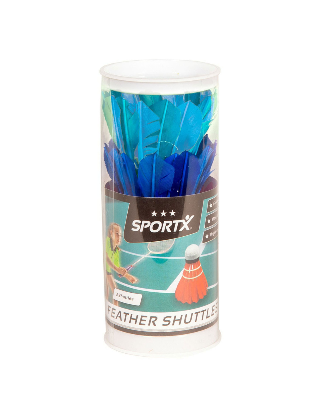 SportX veren badmintonshuttles in paarse, roze en groene kleurstelling. Met veren shuttles kun je sneller spelen, en met meer kracht de shuttle wegslaan. Drie stuks verpakt in koker.