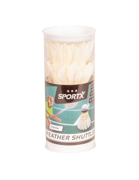 SportX veren badmintonshuttles in witte kleurstelling. Met veren shuttles kun je sneller spelen, en met meer kracht de shuttle wegslaan. Drie stuks verpakt in koker.