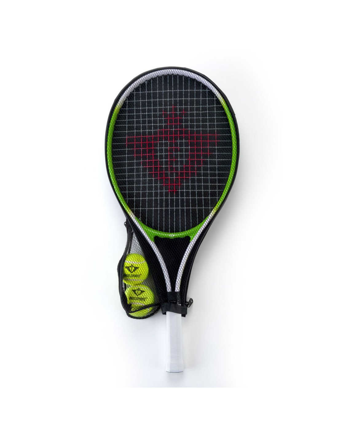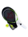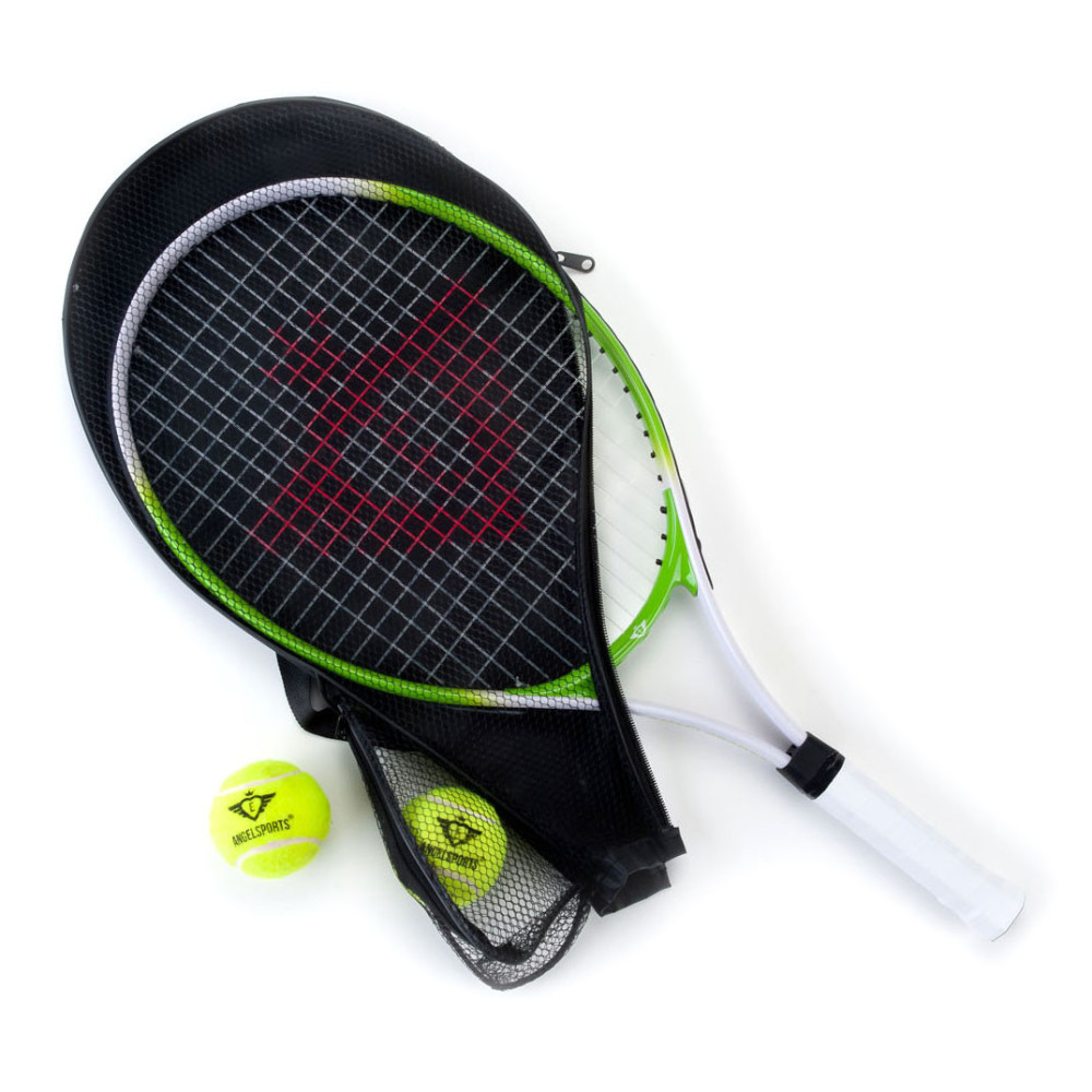 Speel een spannend potje tennis met dit groene tennisracket. Zoek een vriendje om tegen te spelen of oefen tegen de muur. Het racket is gemaakt van stevig aluminium en heeft een comfortabele grip. Inclusief 2 ballen in handig net.