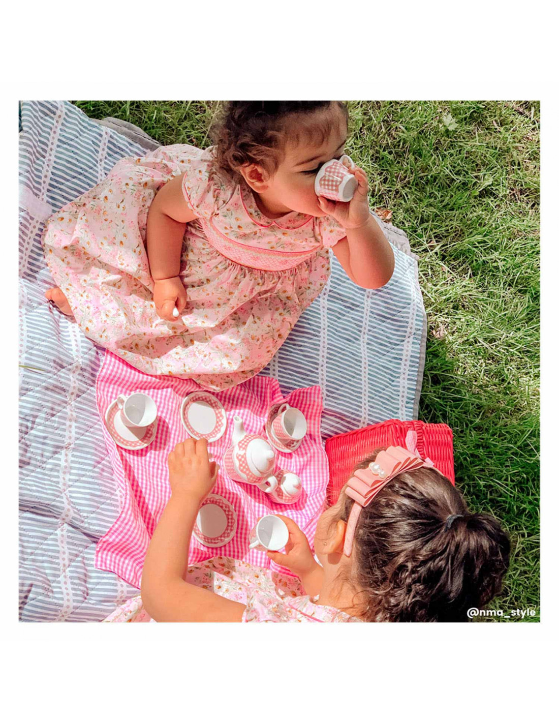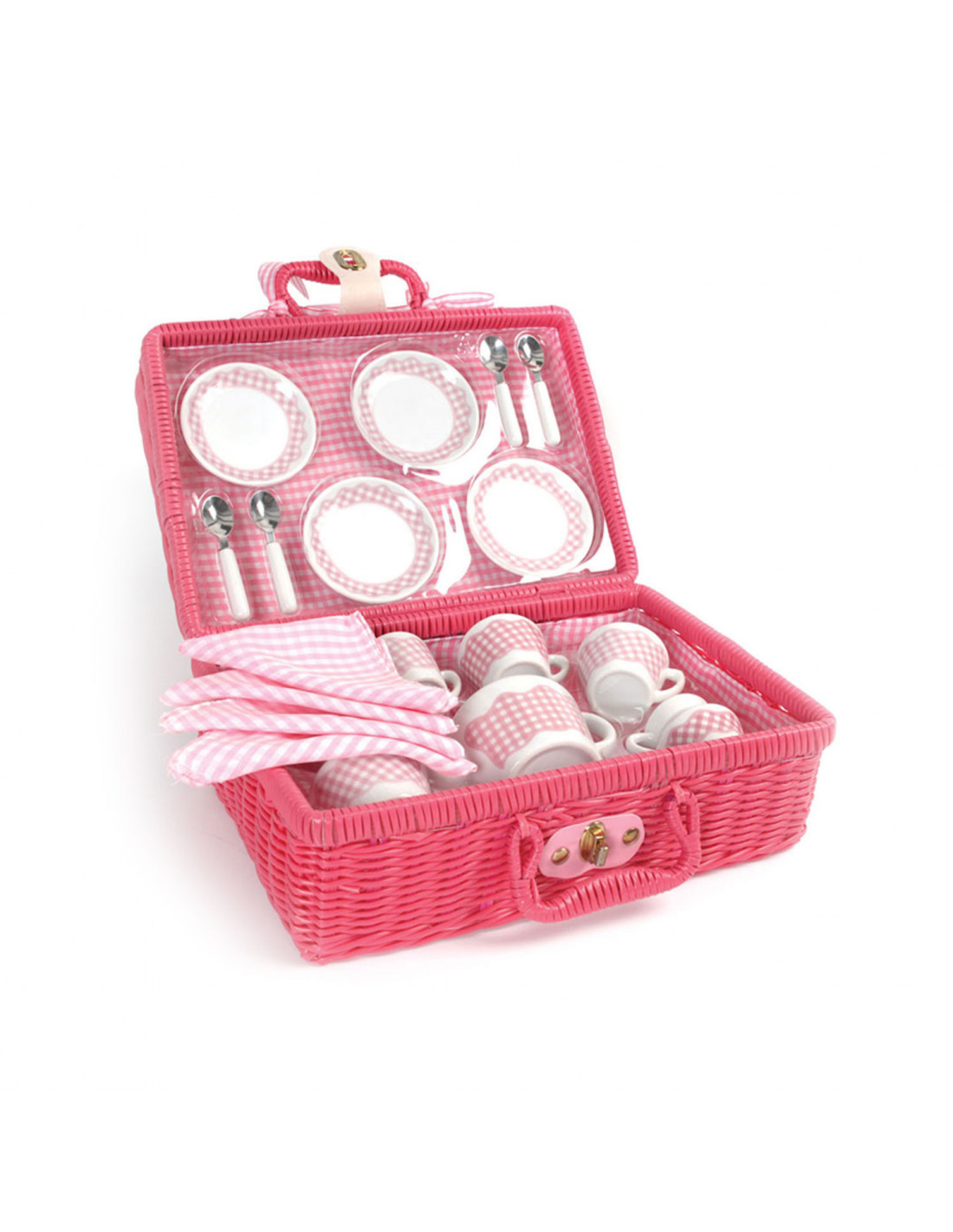 Organiseer een luxe theekransje voor je knuffels en poppen met deze heerlijke Tidlo Picknickset. Een traditioneel kindertheeservies met vier porseleinen borden, kopjes en lepels, een melkkan, een theepot, een suikerpot, servetten en een dekentje.