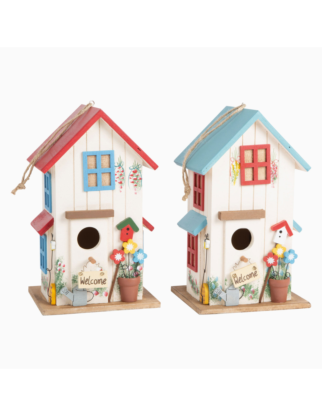 Dit kleine huisje heeft veel gedetailleerde ornamenten en een klein luikje met een lat en is een prachtig verblijf voor vogels! Ze zullen het heerlijk vinden om in de tuin te wonen. Een representatieve decoratie van geglazuurd multiplex voor op het terras, het balkon, het huis of de etalage.