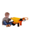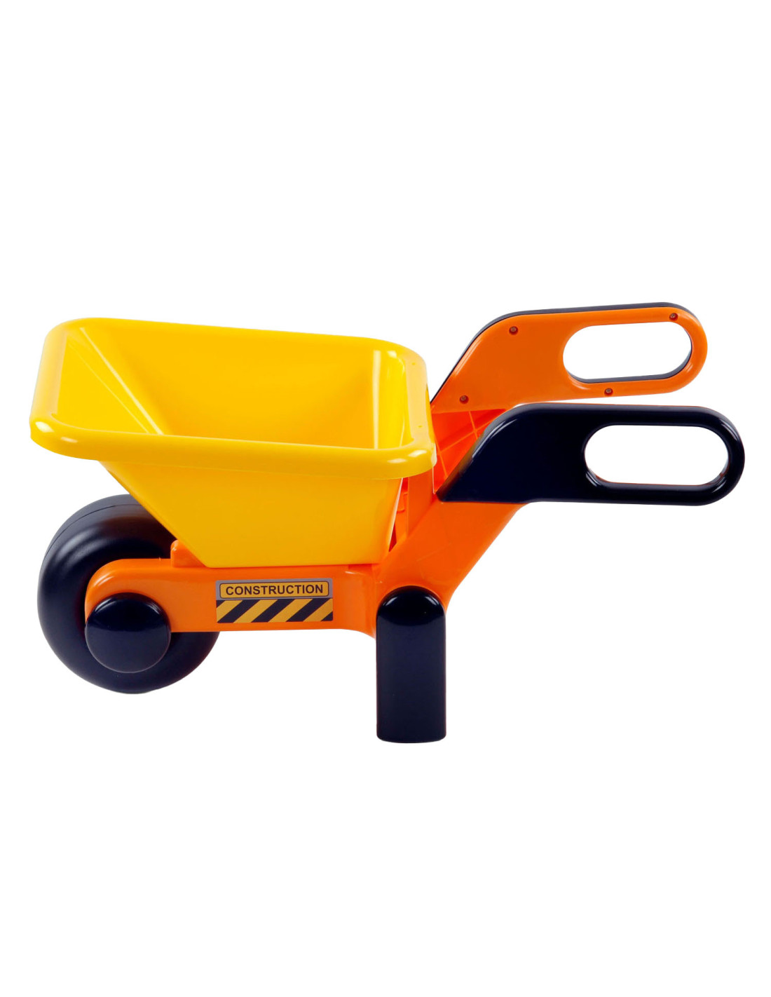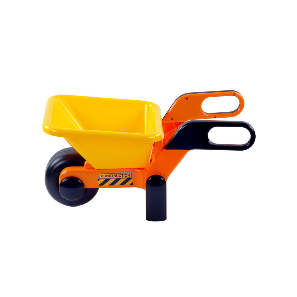 Deze gave kruiwagen kan je tjokvol met spullen stoppen. De geel, oranje, zwart gekleurde kruiwagen heeft een breed wiel waardoor hij niet gauw omkiept. De 2 poten zorgen ervoor dat hij stevig blijft staan, terwijl jij hem vol laadt. Met de grote handvaten kan je hem voort duwen. Hier kun je echt uren mee spelen!