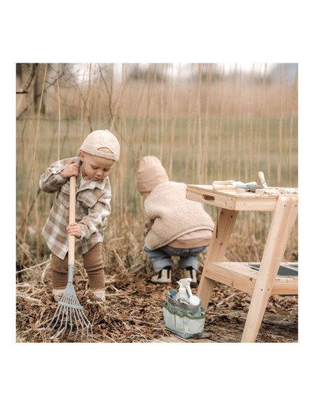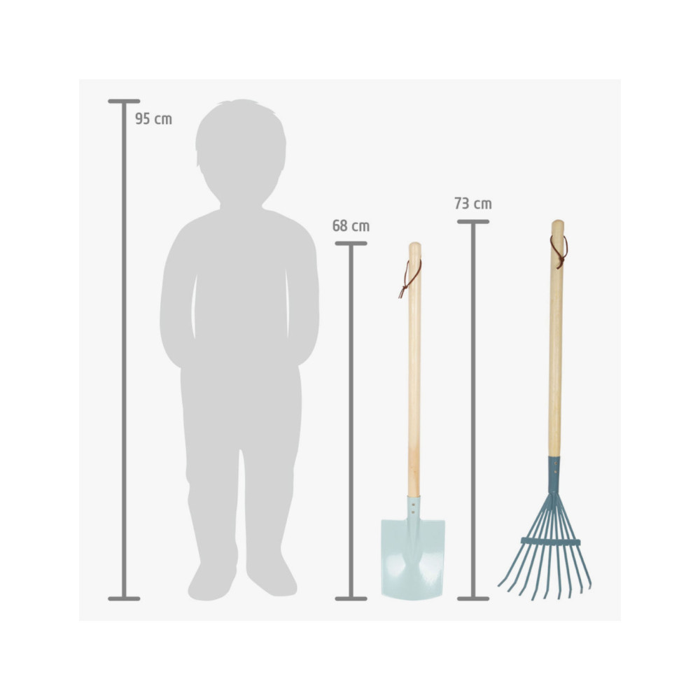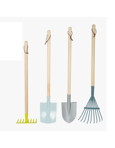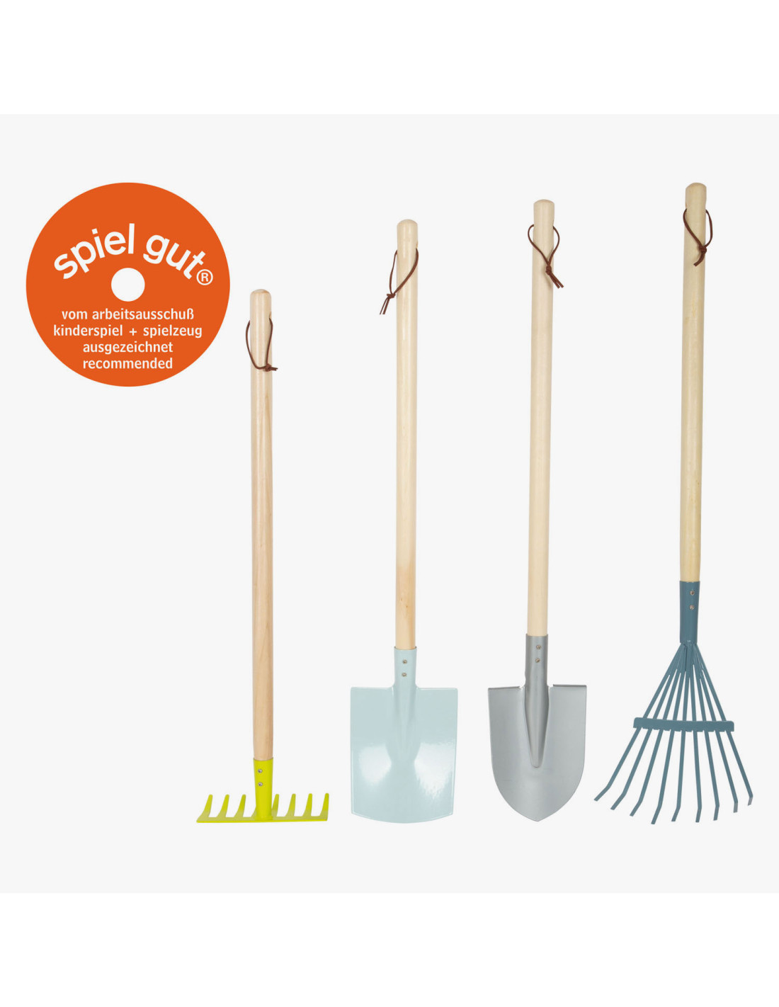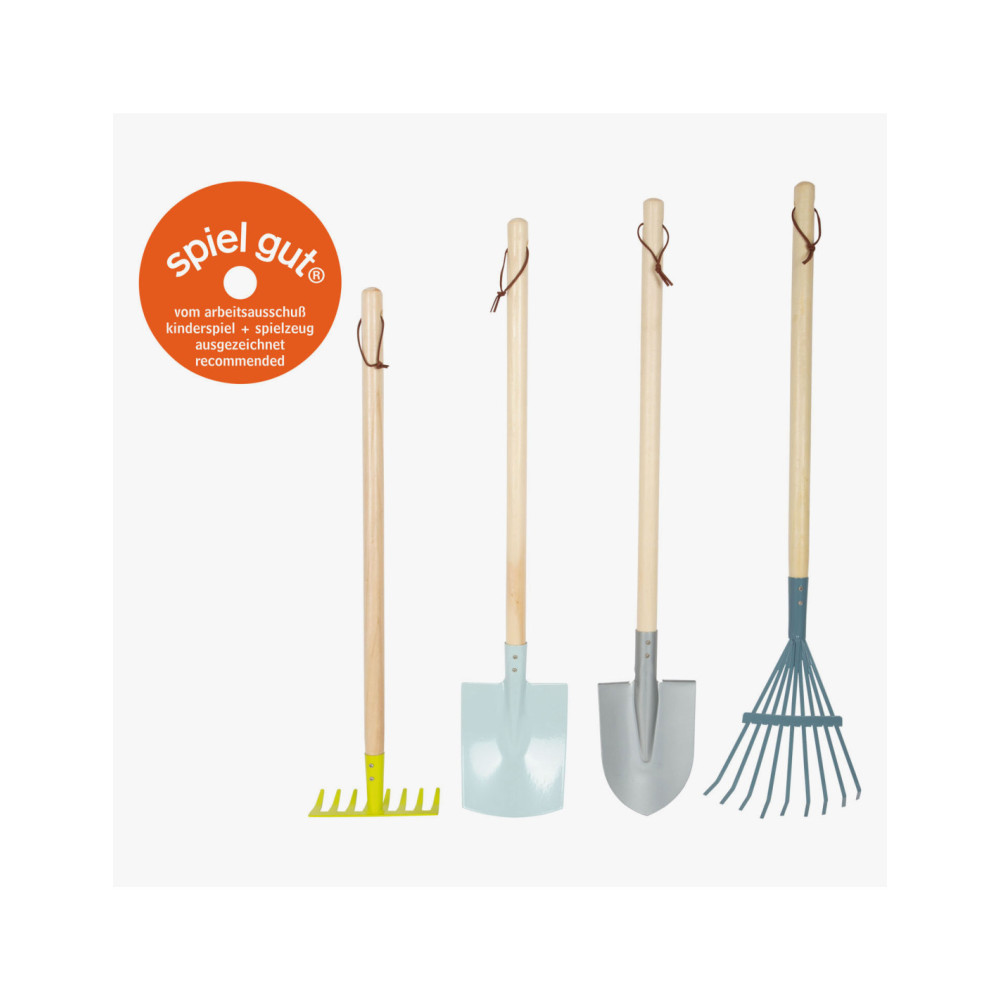 Met deze set tuingereedschap zijn jonge tuiniers echt goed uitgerust! De praktische tuinhulpmiddelen zoals een schop, schep en twee harken van metaal met houten palen in kindvriendelijke maten maken ook optisch een geweldige indruk dankzij hun moderne kleuren. Nadat het tuinwerk is gedaan, kunnen alle gereedschappen worden opgehangen aan hun handige lussen. Ook geschikt als speelgoed om mee te spelen in de zandbak of op het strand.