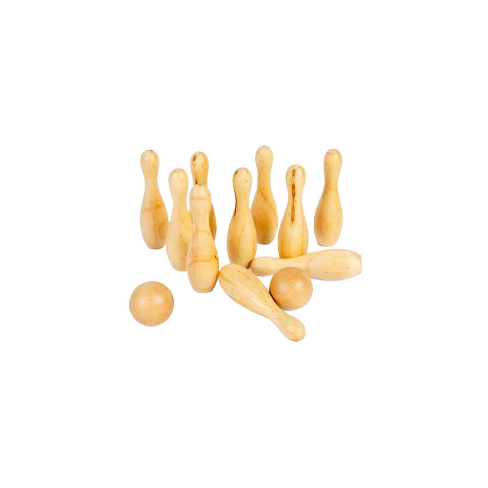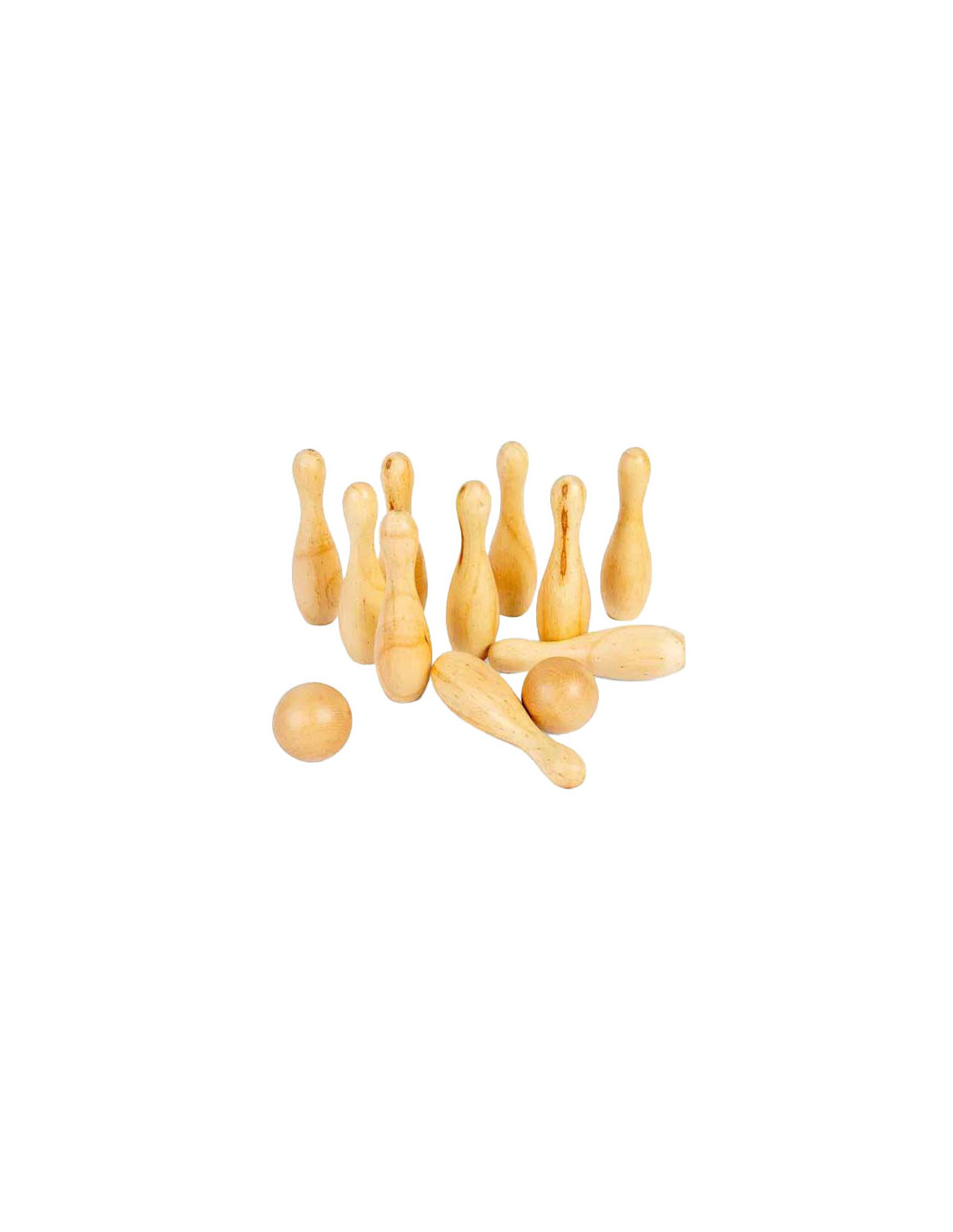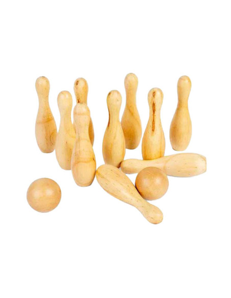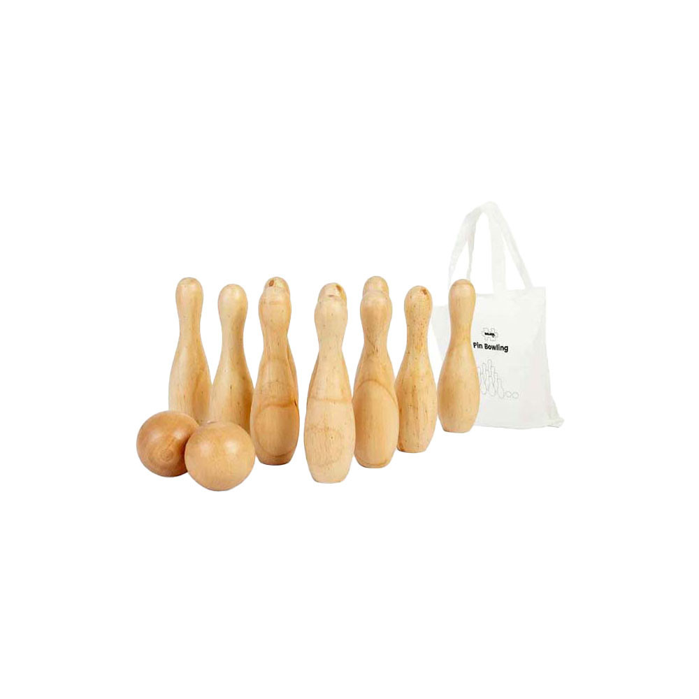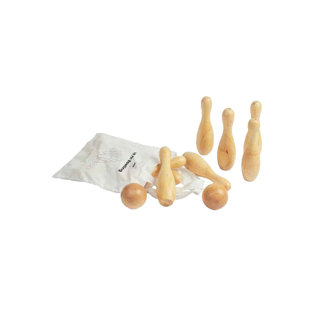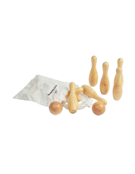 Deze bowling set is ideaal voor kleine bowlers die net beginnen met het spel! De houten set bestaat uit 10 stevige, duurzaam bowling pins die gebouwd zijn om jaren mee te gaan. De 2 ballen en tas maken de set compleet!