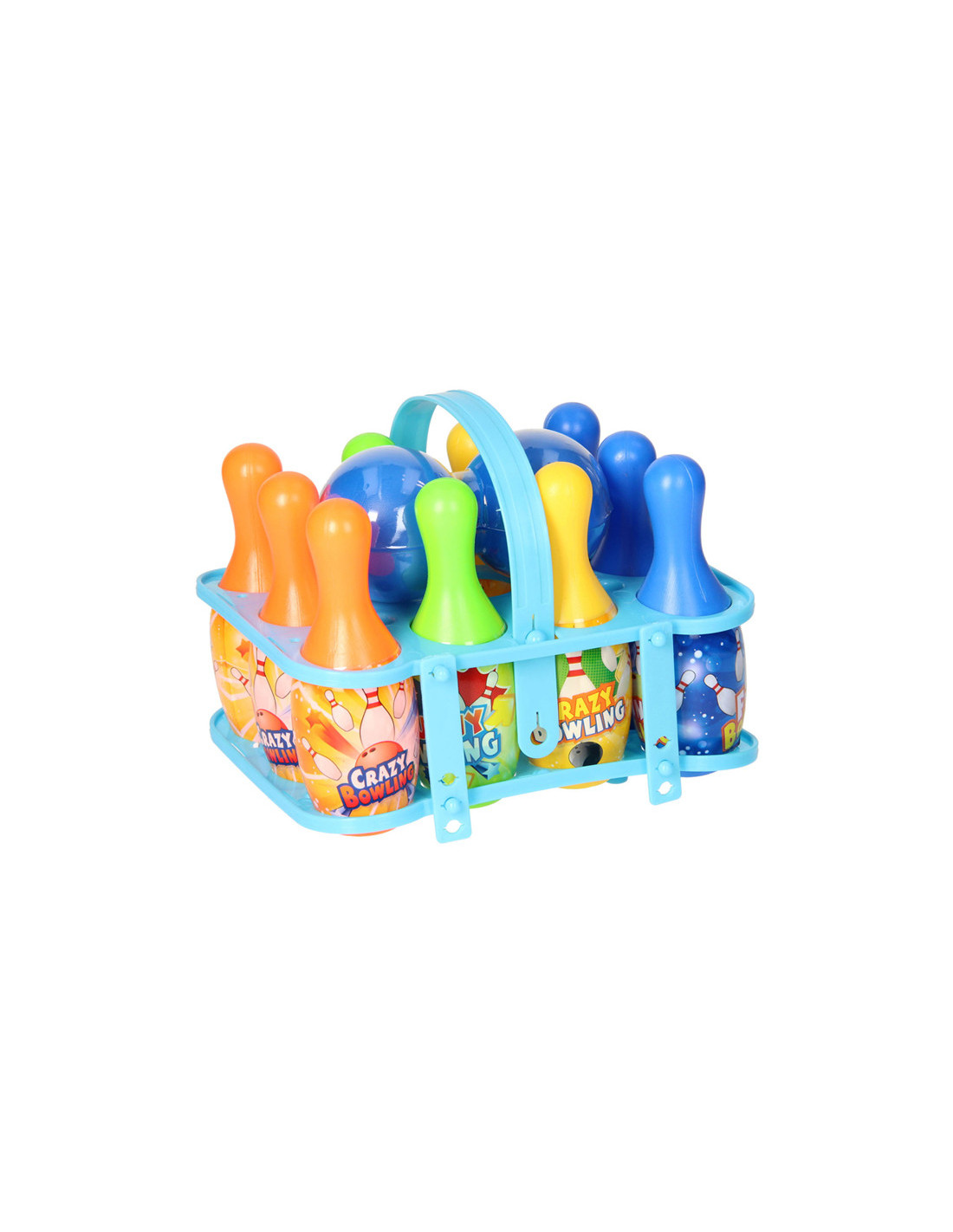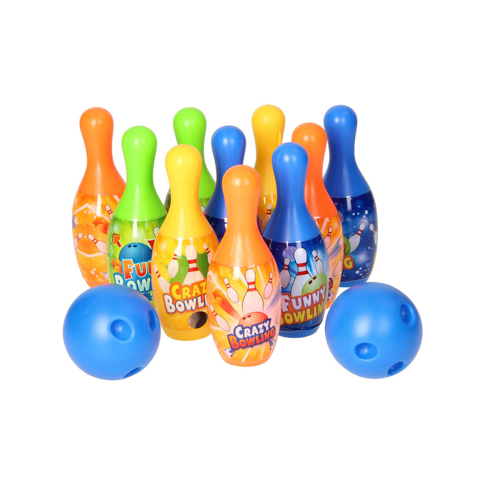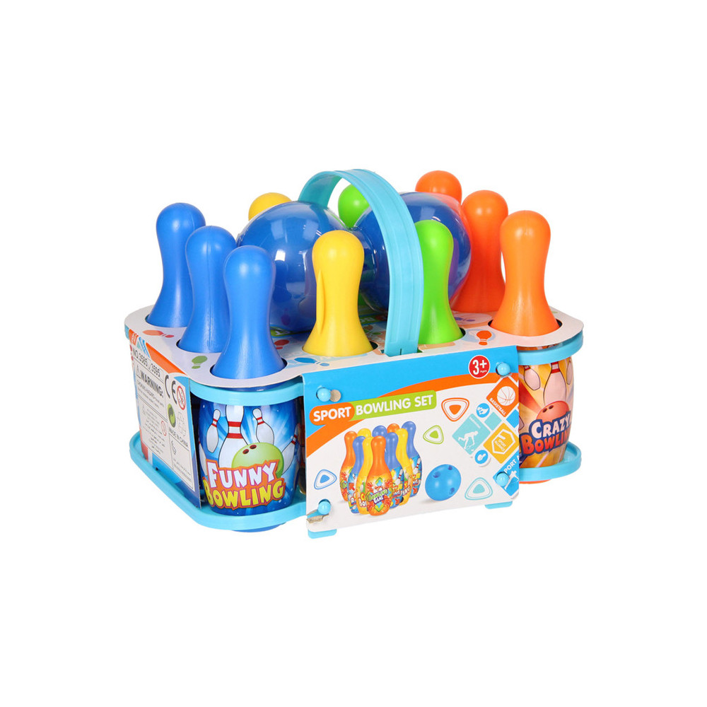 Kleurrijke bowlingset inclusief 10 pionnen, 2 bowlingballen en een rekje om alles in op te bergen. Geschikt voor kinderen vanaf 3 jaar.