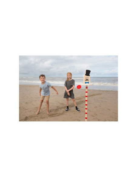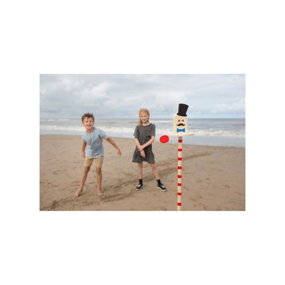Bob staat nietsvermoedend op het plateau, maar wat hij niet weet is dat jij probeert hem eraf te kukelen. De discs vliegen hem om de oren! Probeer steeds een stapje naar achteren te doen en vanaf een grotere afstand te gooien.