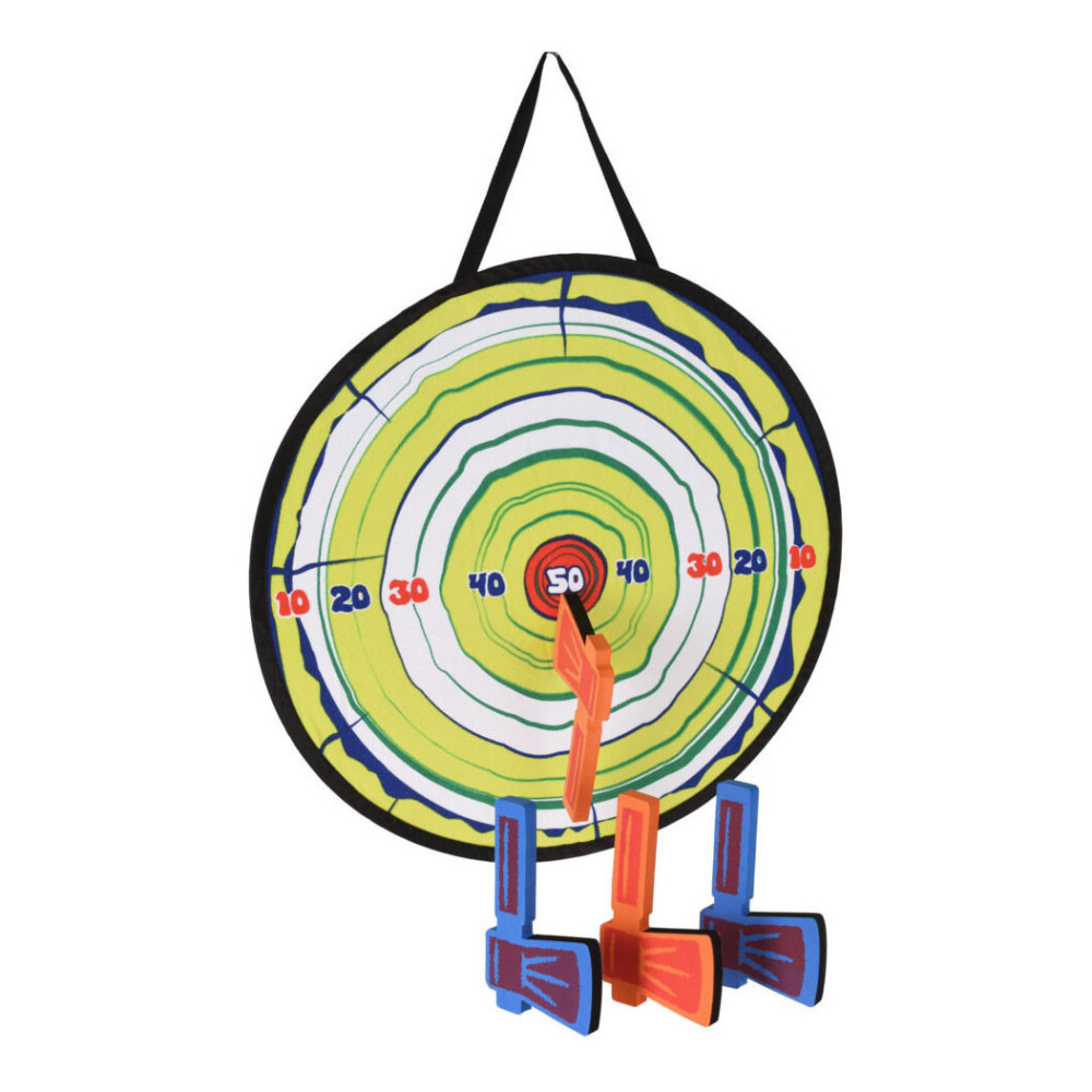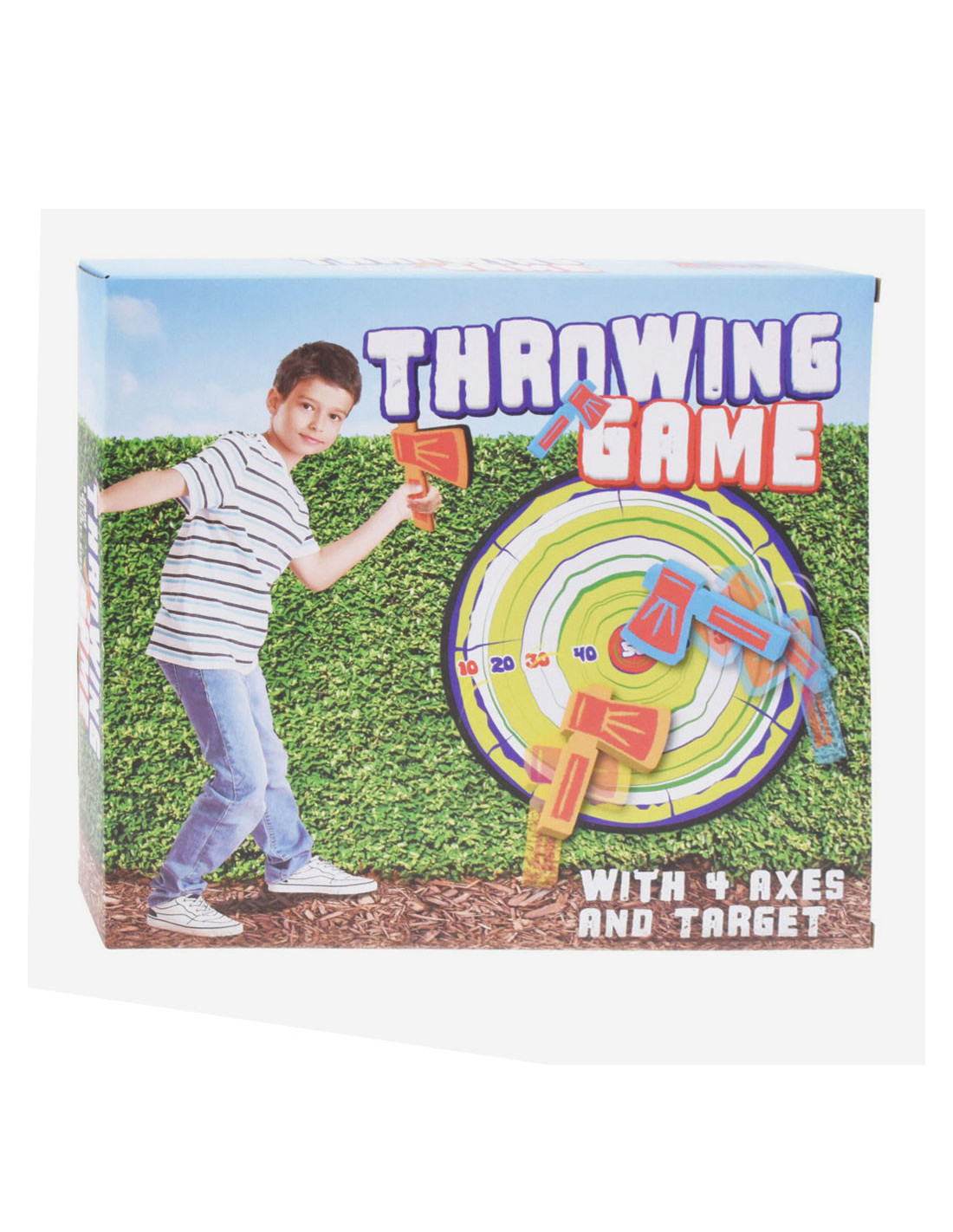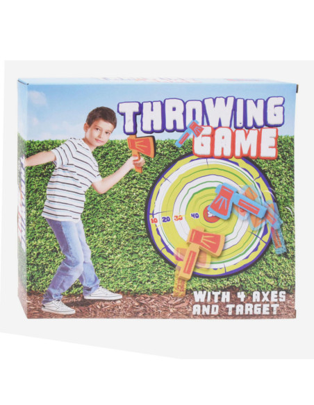 Werpspel van EVA-kunststof. Met doelschijf en 4 gooibijlen. Geschikt vanaf 3 jaar.