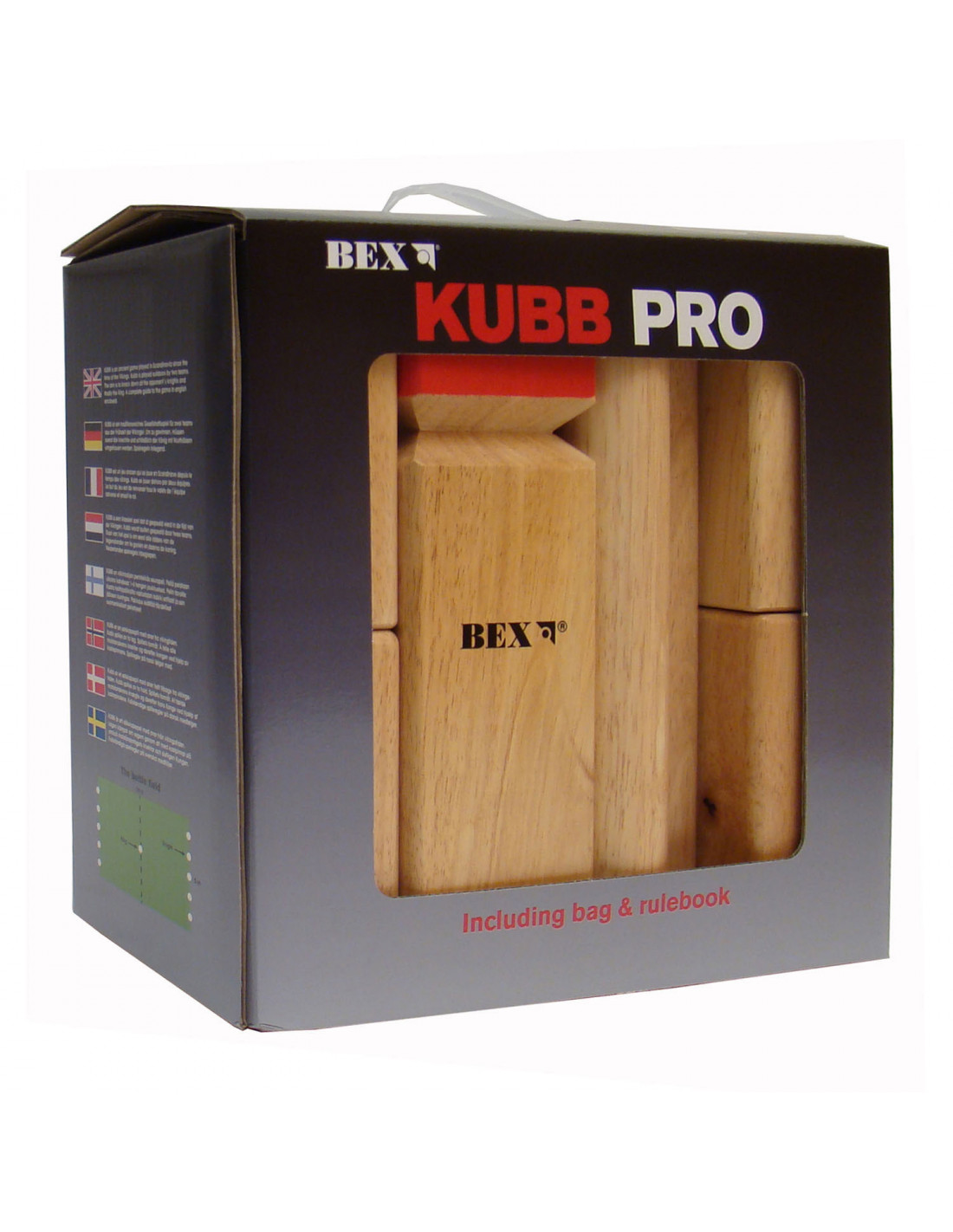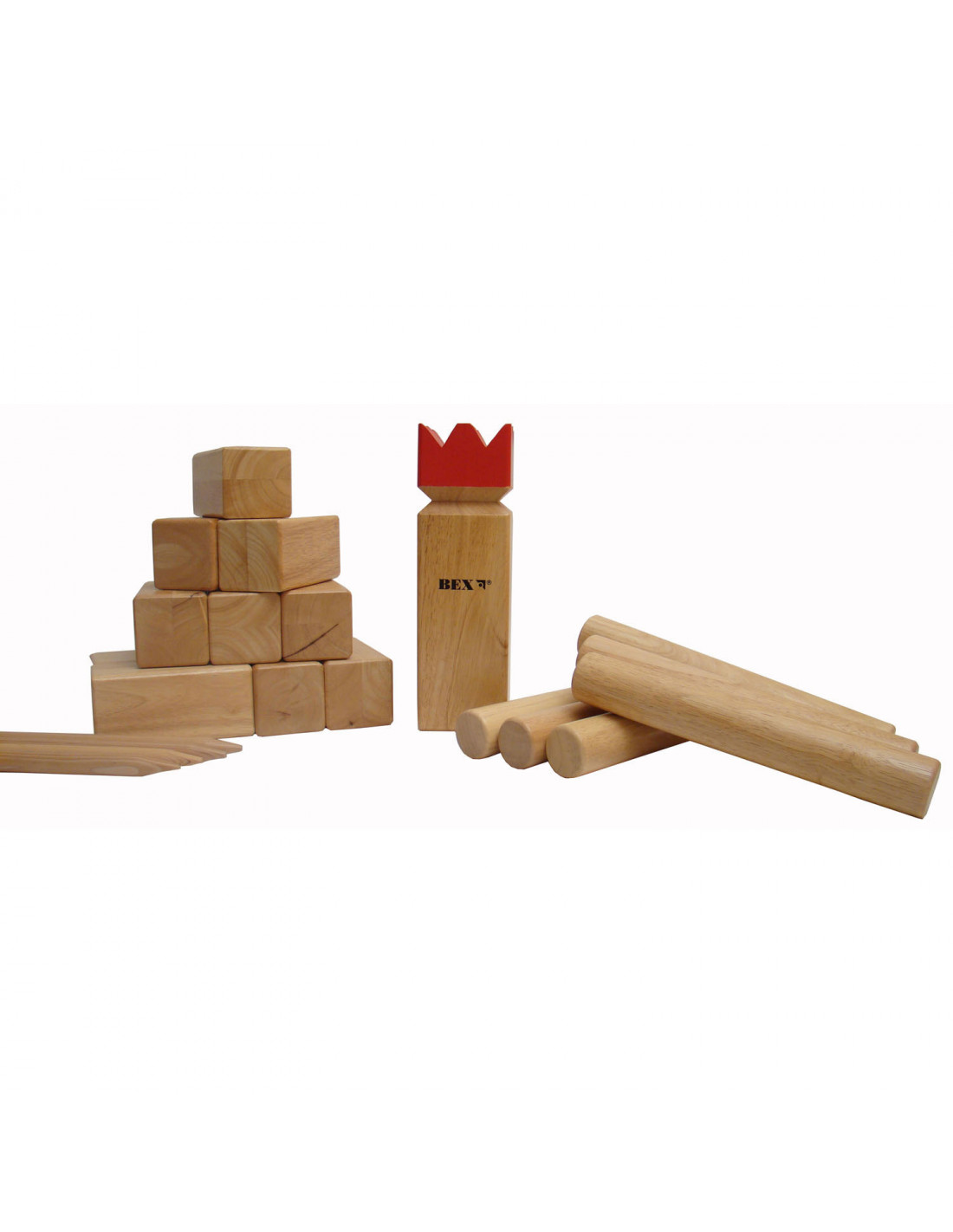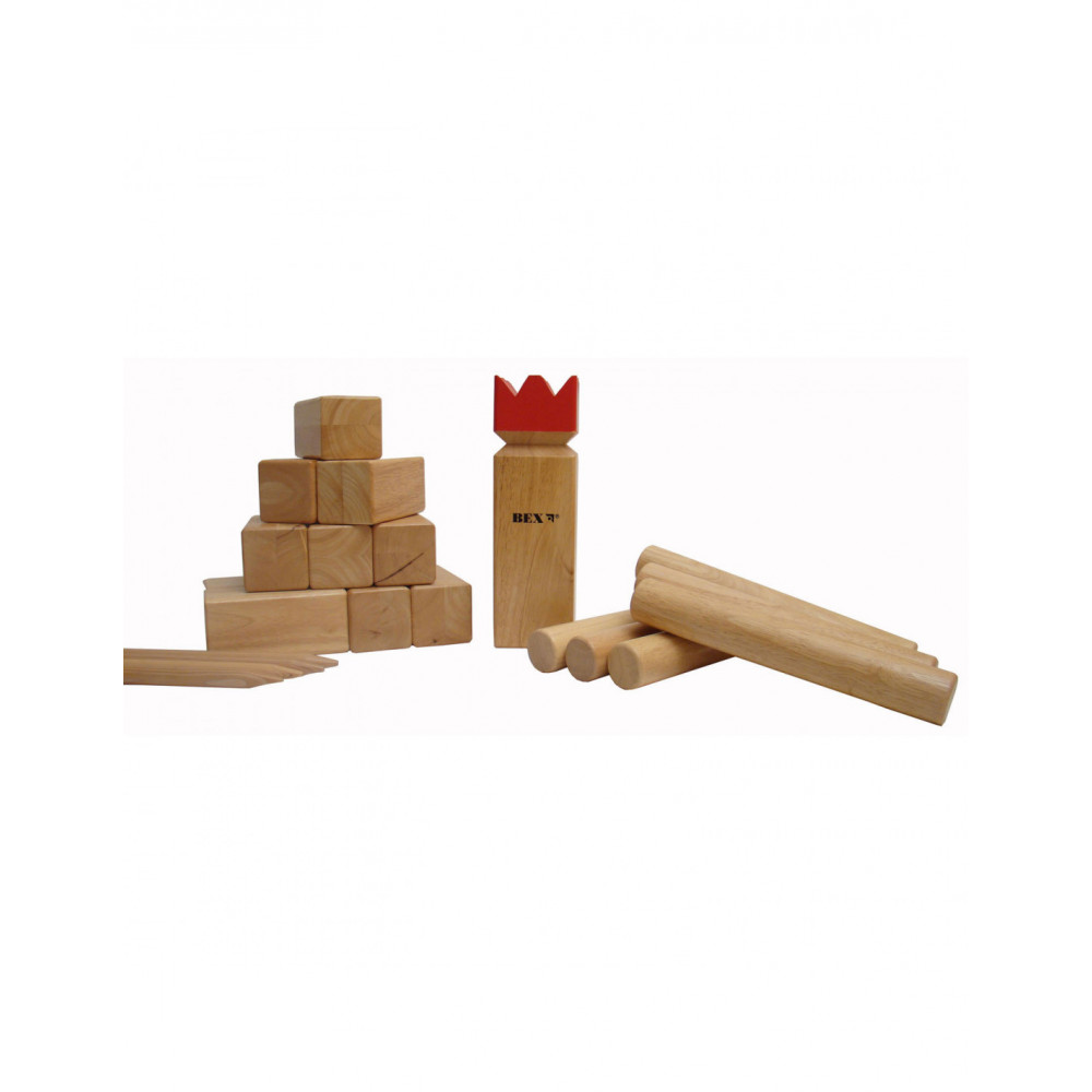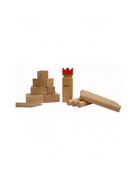Het spel Kubb is afkomstig uit Zweden en is een echt familiespel. Kubb is een spel voor buiten, en wordt gespeeld op een vlak speelveld. 1 koning, 6 werpstokken, 10 ridders, 4 markeerstokken, 1 nettas en spelregels.