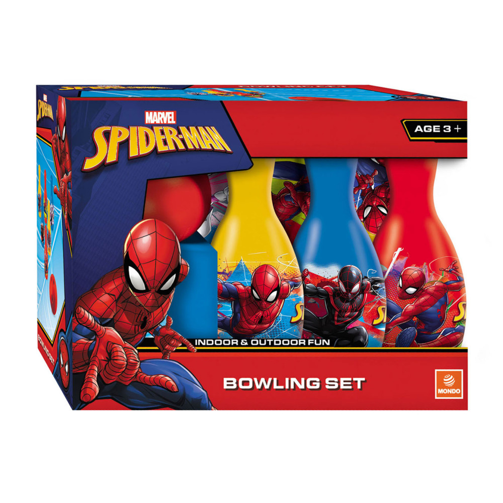 Spiderman bowlset! Met 6 kegels en 1 bowlingbal. Gemaakt van kunststof. De diameter van de bowlingbal is 19 centimeter.