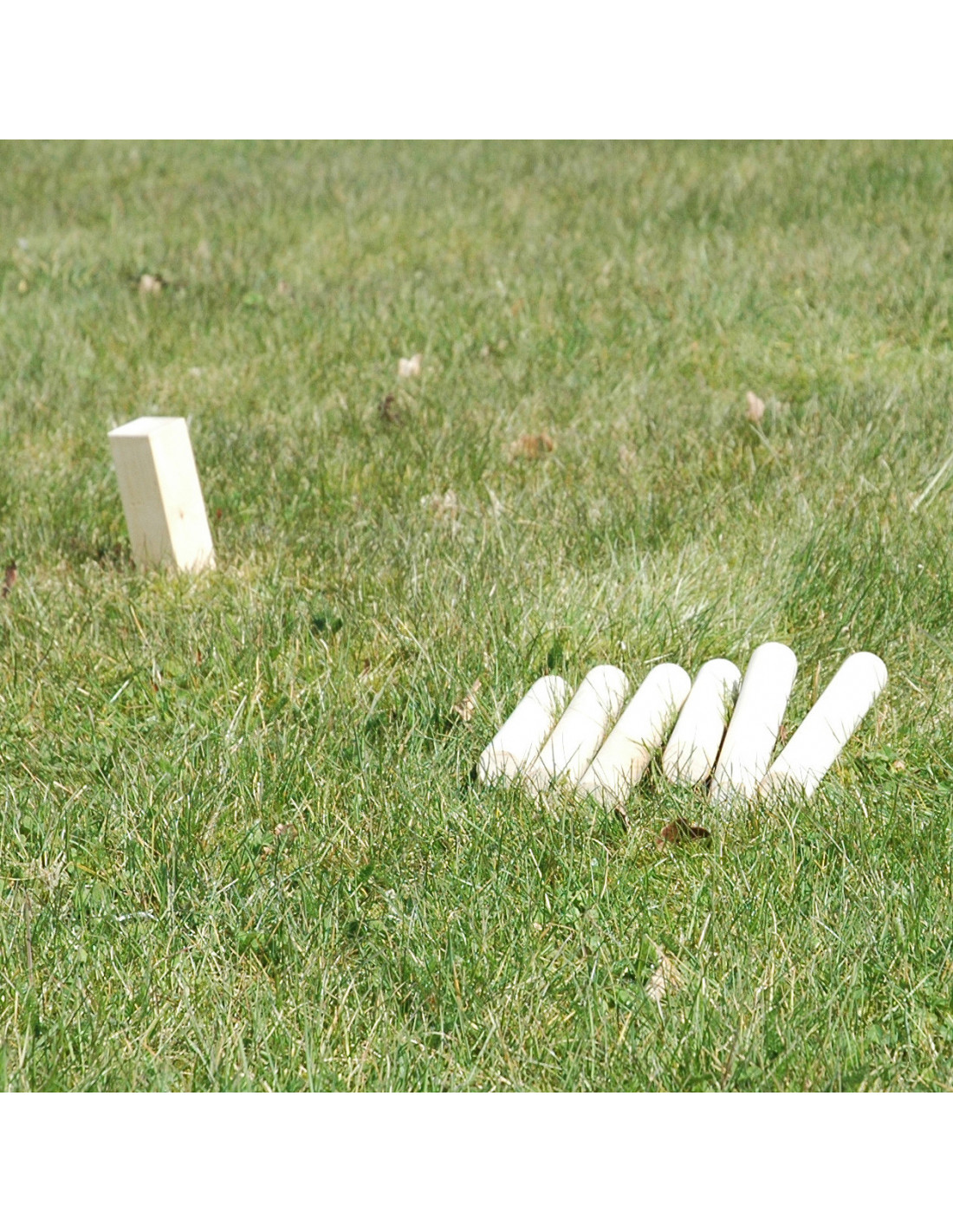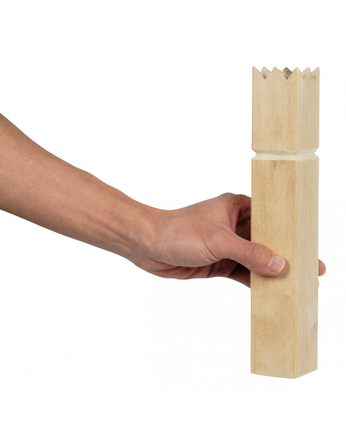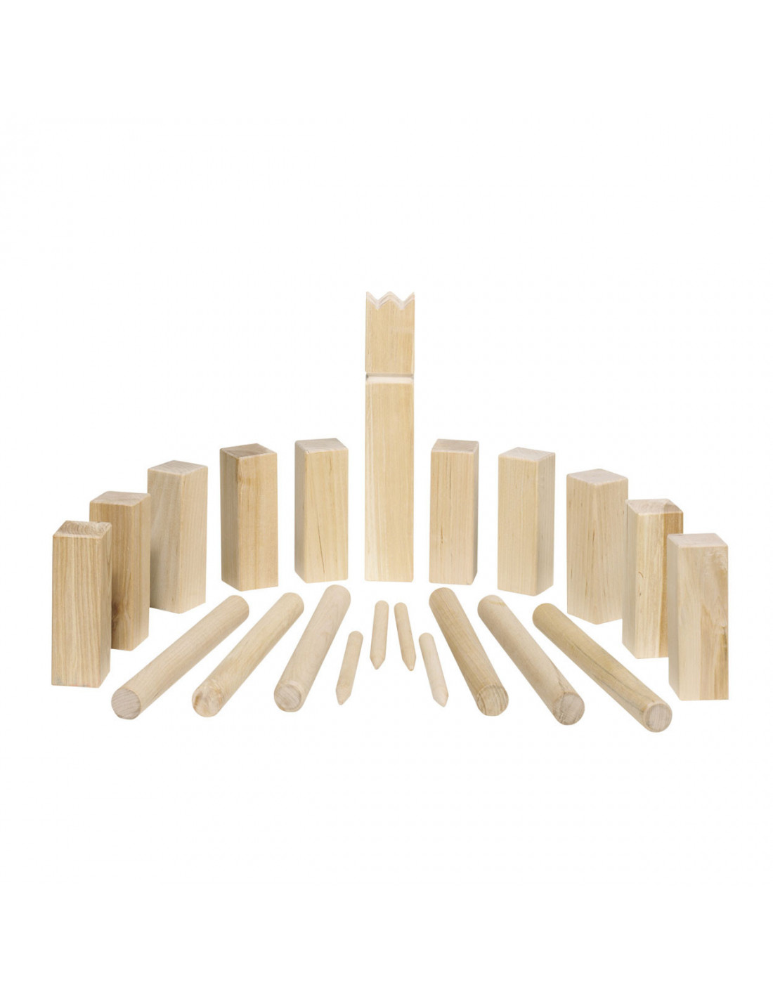 Welk team gooit als eerst alle kubbs van de tegenstander en de koning omver?