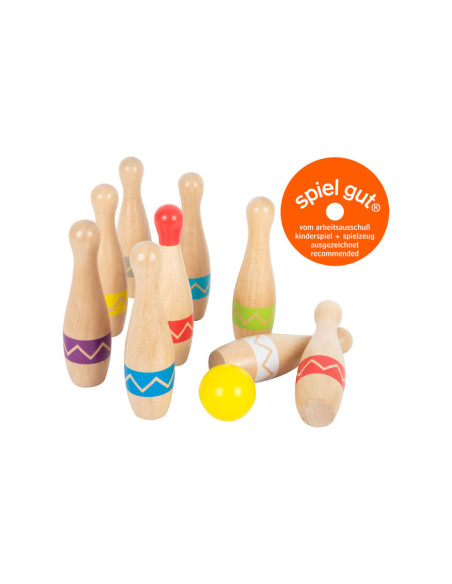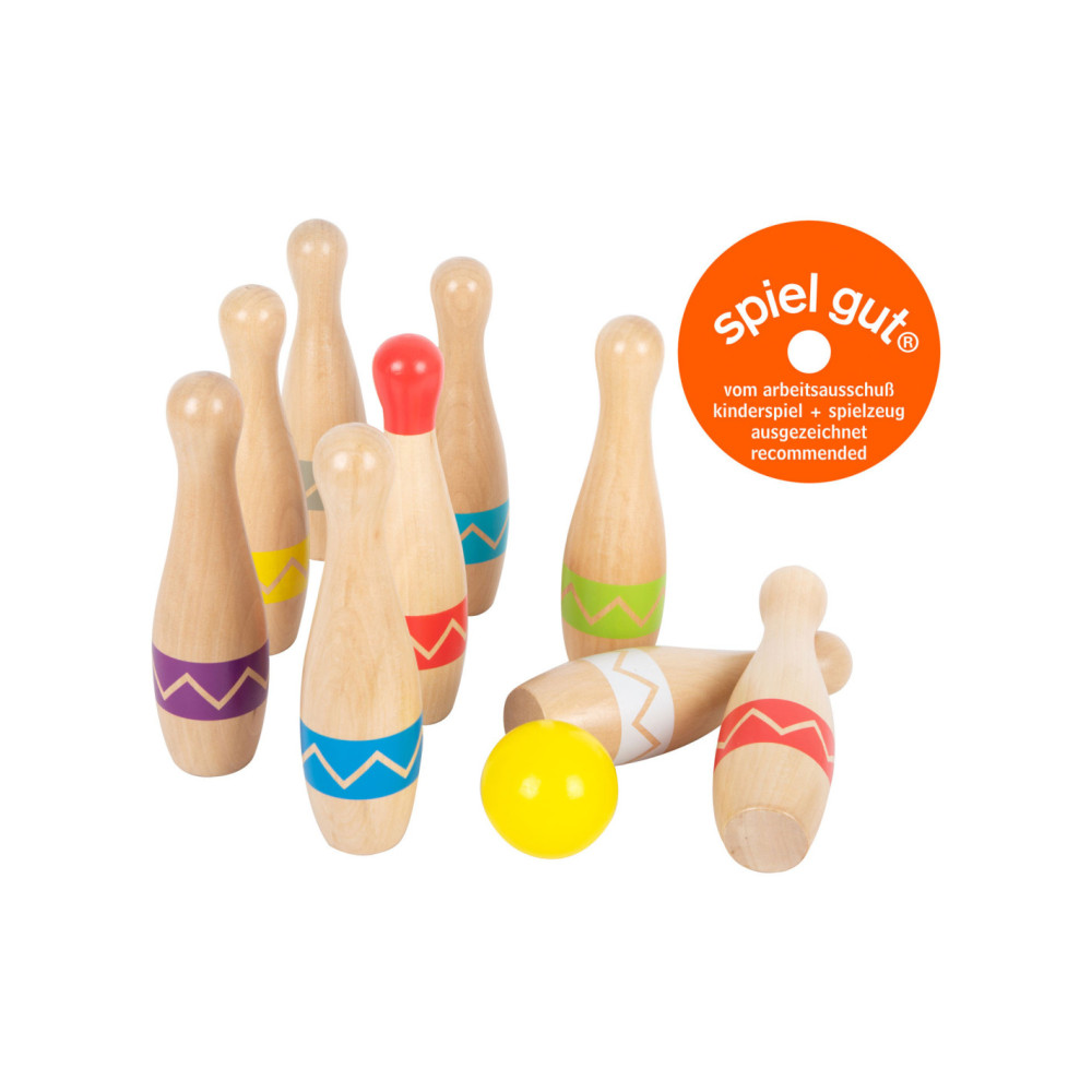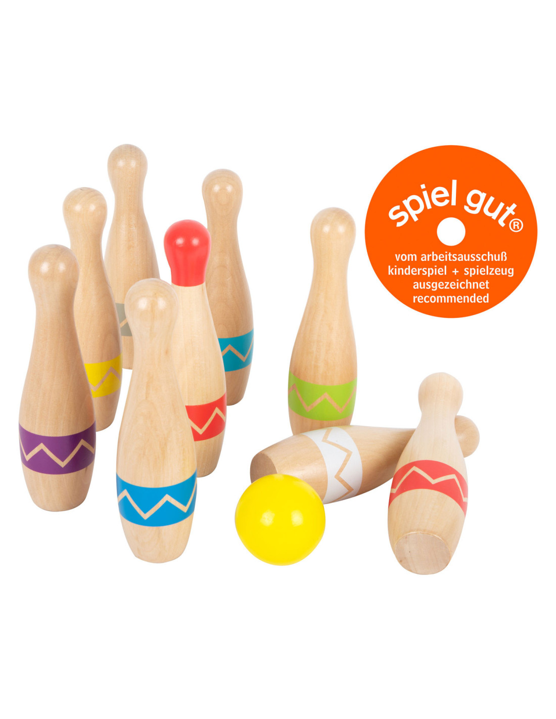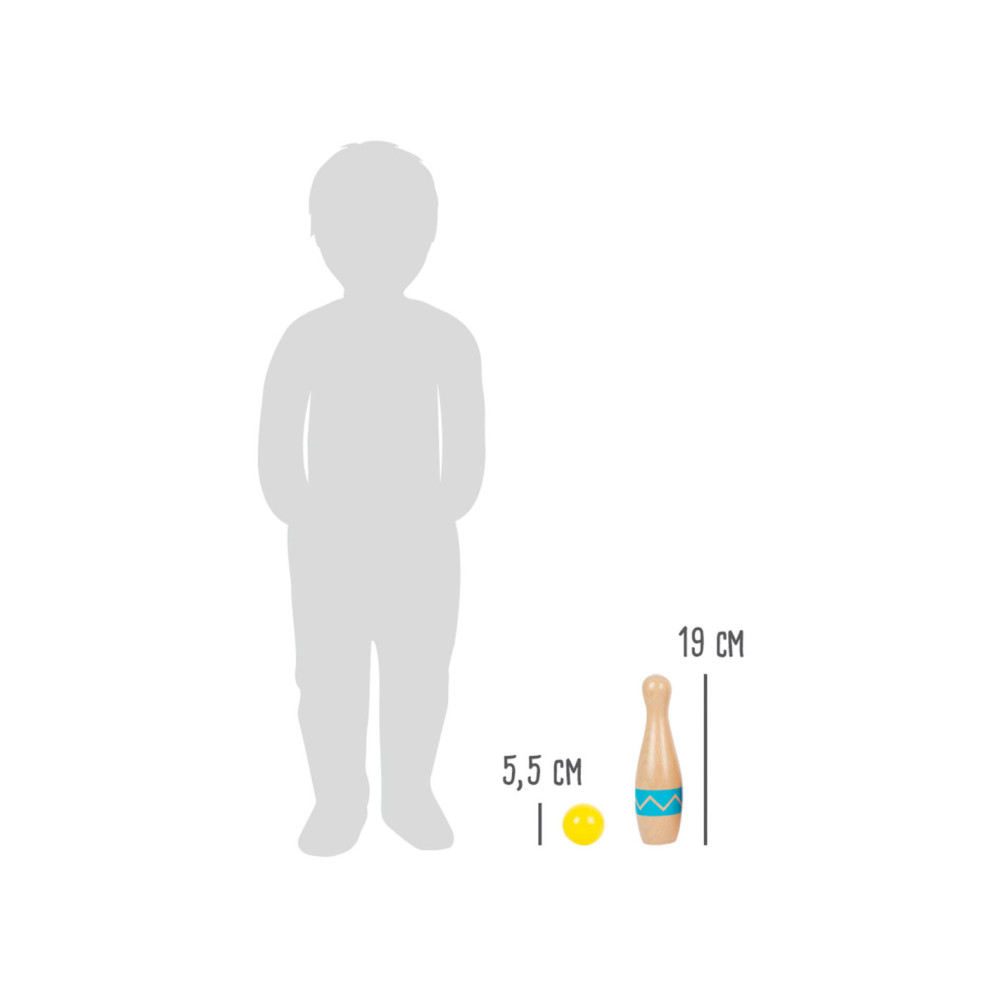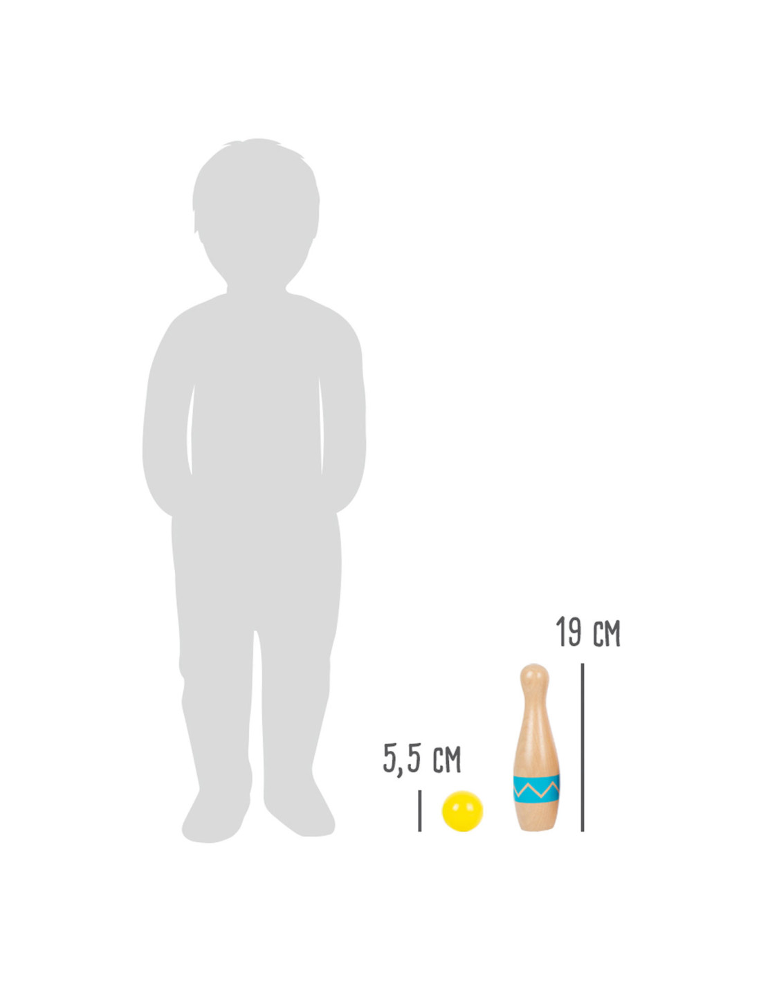 Deze kegelset brengt het spel op gang voor jong en oud! De negen massief houten kegels met een modern "Active" design en de twee houten ballen hebben een handig formaat voor kinderen en kunnen zowel binnen als buiten mee gespeeld worden. Dit maakt deze kegelset bijzonder flexibel en bevordert de ontwikkeling van eigen ideeën - ook buiten de klassieke kegelbaan. Dankzij de opbergtas kan alles gemakkelijk worden opgeborgen en is perfect geschikt voor onderweg!