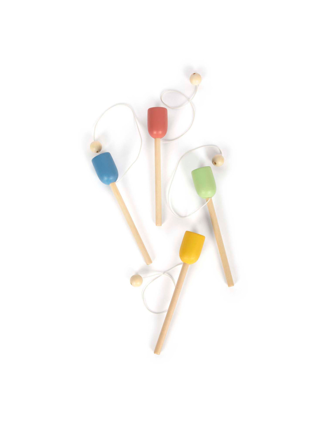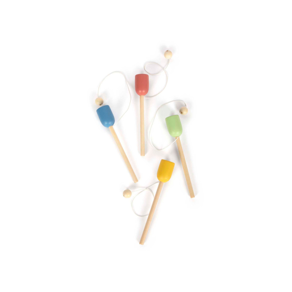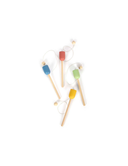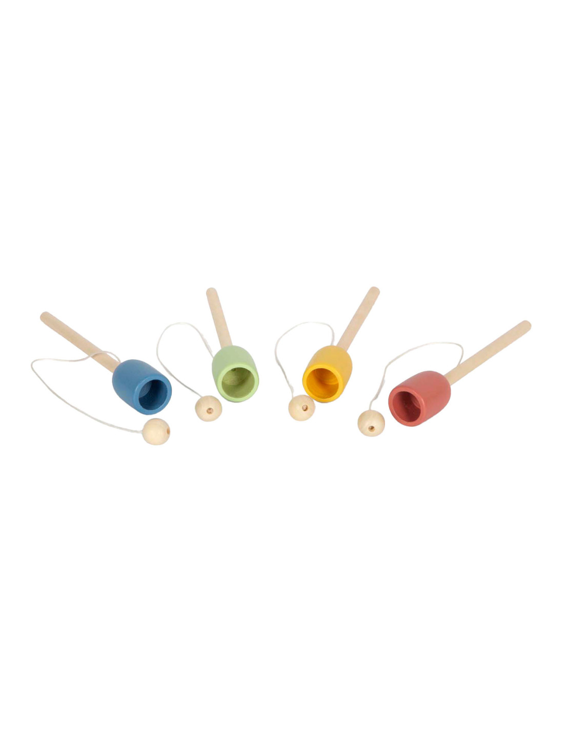 Set van 4 houten ballenvangers. Geschikt voor kinderen vanaf 4 jaar. Het formaat is 3 x 3 x 19 cm.