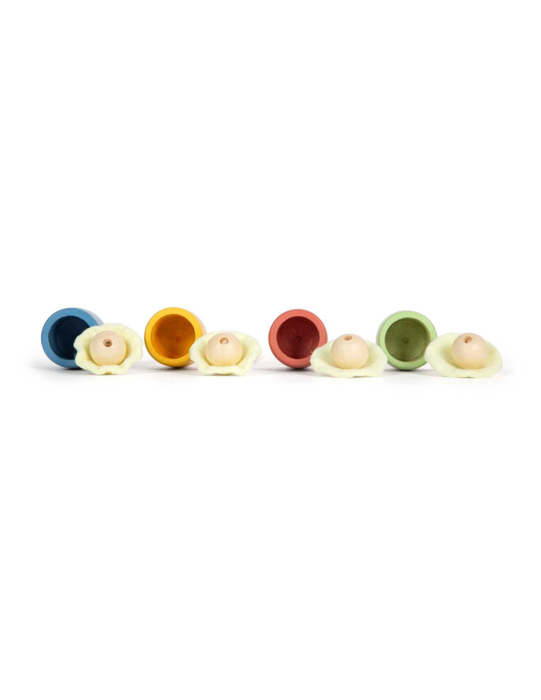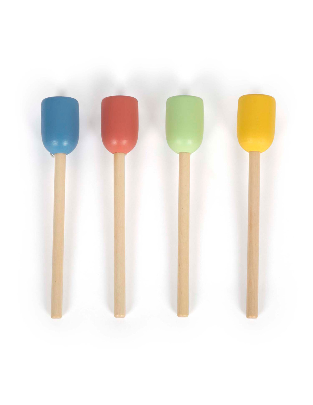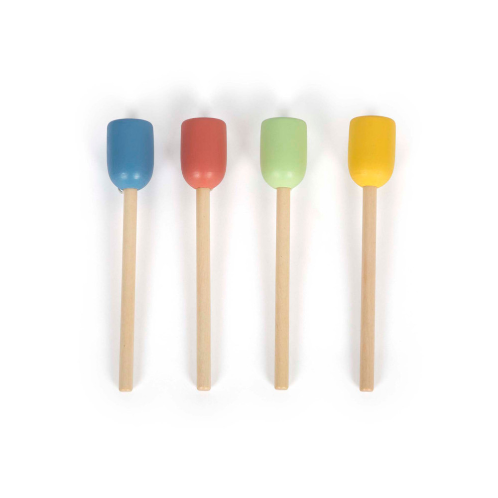 Set van 4 houten ballenvangers. Geschikt voor kinderen vanaf 4 jaar. Het formaat is 3 x 3 x 19 cm.