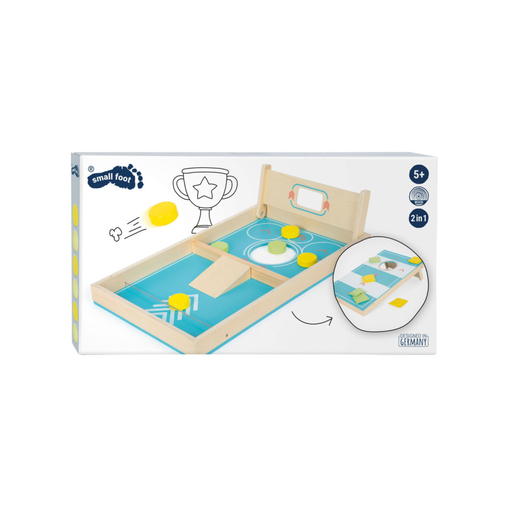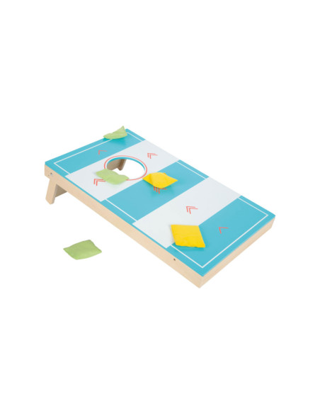 Nauwkeurigheid vereist! Dit multifunctionele 2-in-1 houten werpspel zorgt voor dubbel plezier met de twee spellen cornhole en sling puck. Bij het slingpuck-flipspel is het de bedoeling om zoveel mogelijk punten te scoren door de speelstukken om te draaien met behulp van de elastische band. Als je liever cornhole speelt, kan het speelveld eenvoudig op zijn kop worden gezet en worden gespeeld met de meegeleverde zandzakken. Dit zijn twee veelzijdige tuinspellen die met z’n tweeën of in teams gespeeld kunnen worden en geschikt zijn voor alle leeftijden. Wie kan het meest nauwkeurige gooien of flippen demonstreren en de meeste punten scoren?