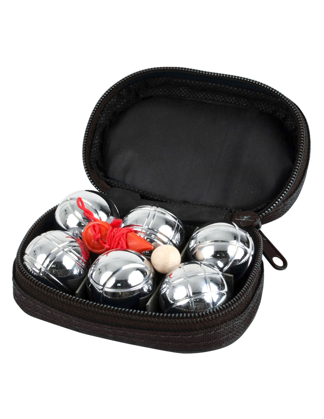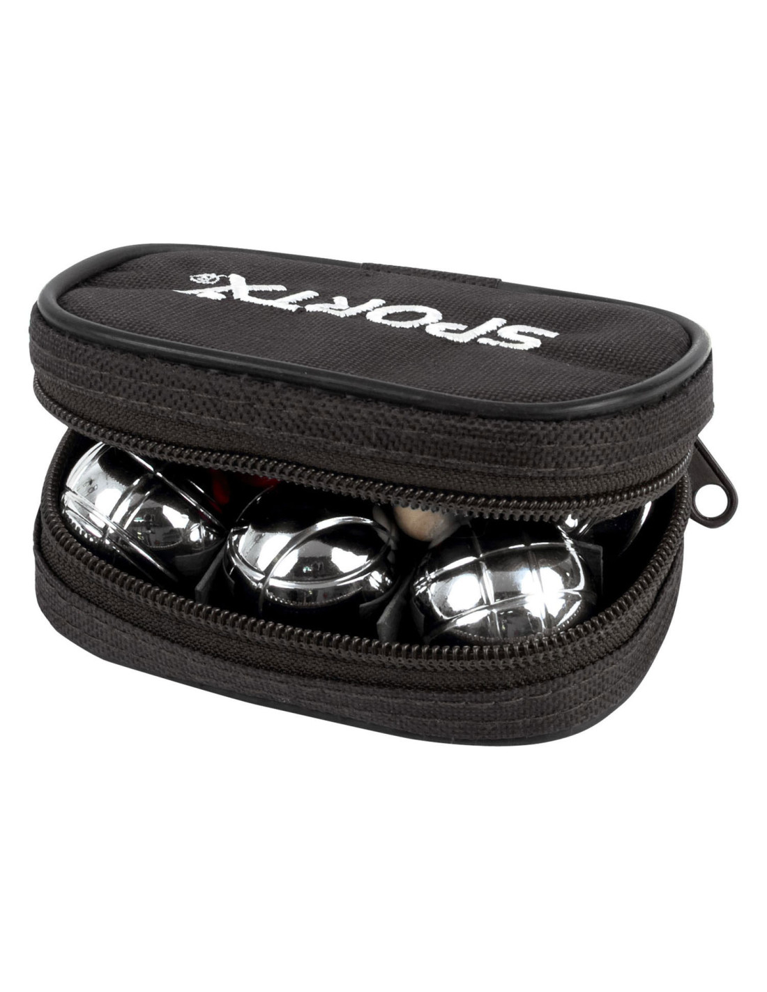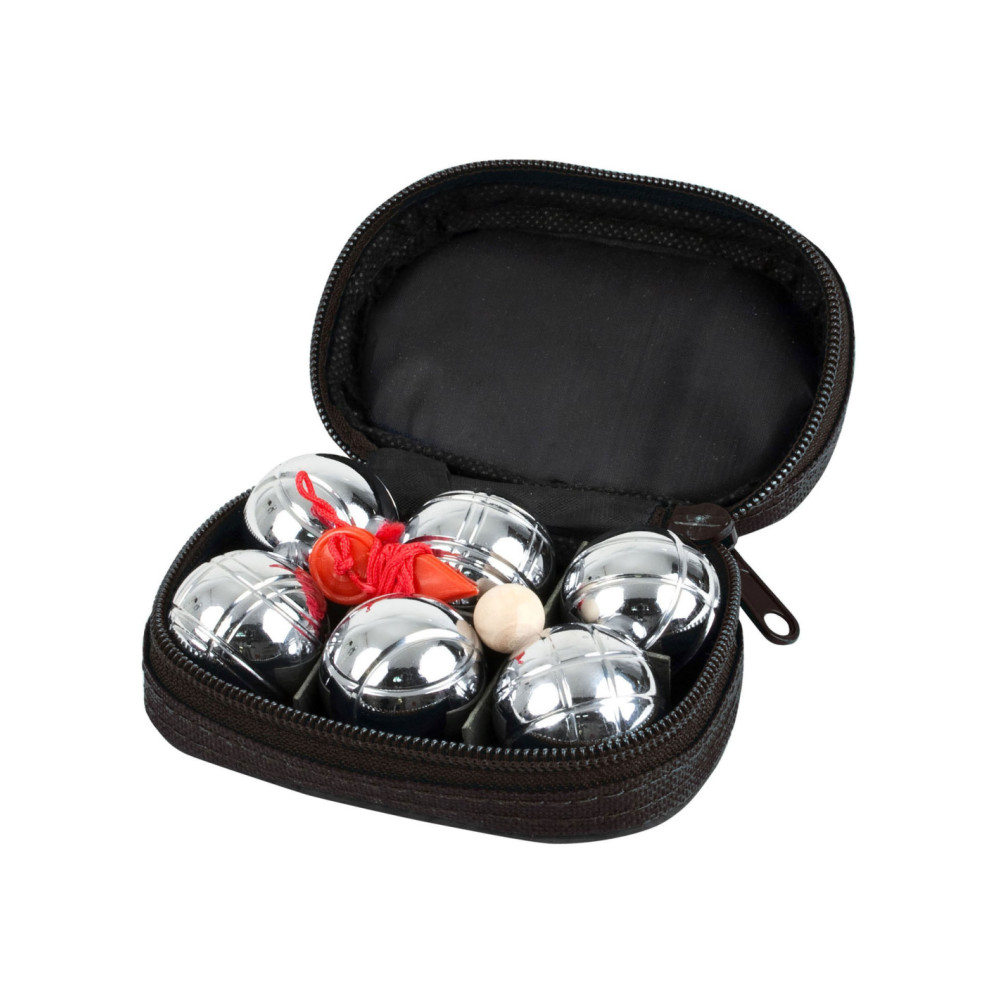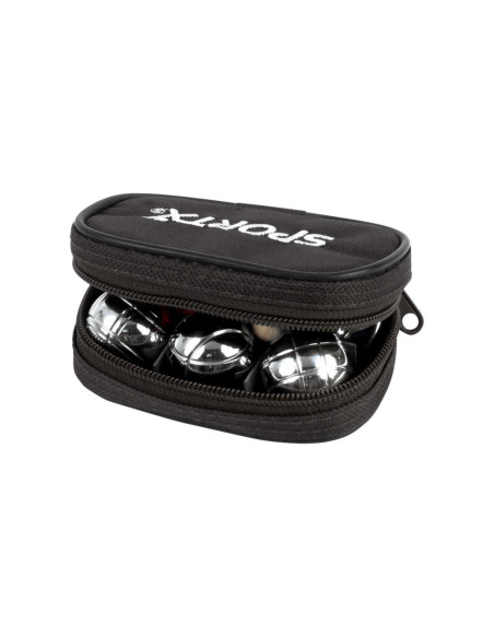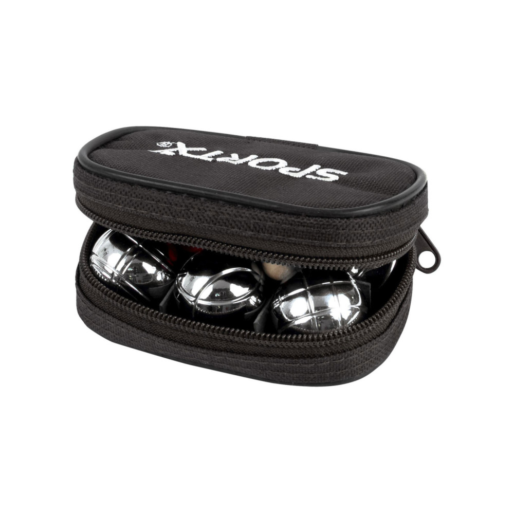 SportX mini Jeu de boules set. Set van 6 zware kwaliteit metalen ballen, 1 but bal en een meetlint. Verpakt in handige zwarte etui.