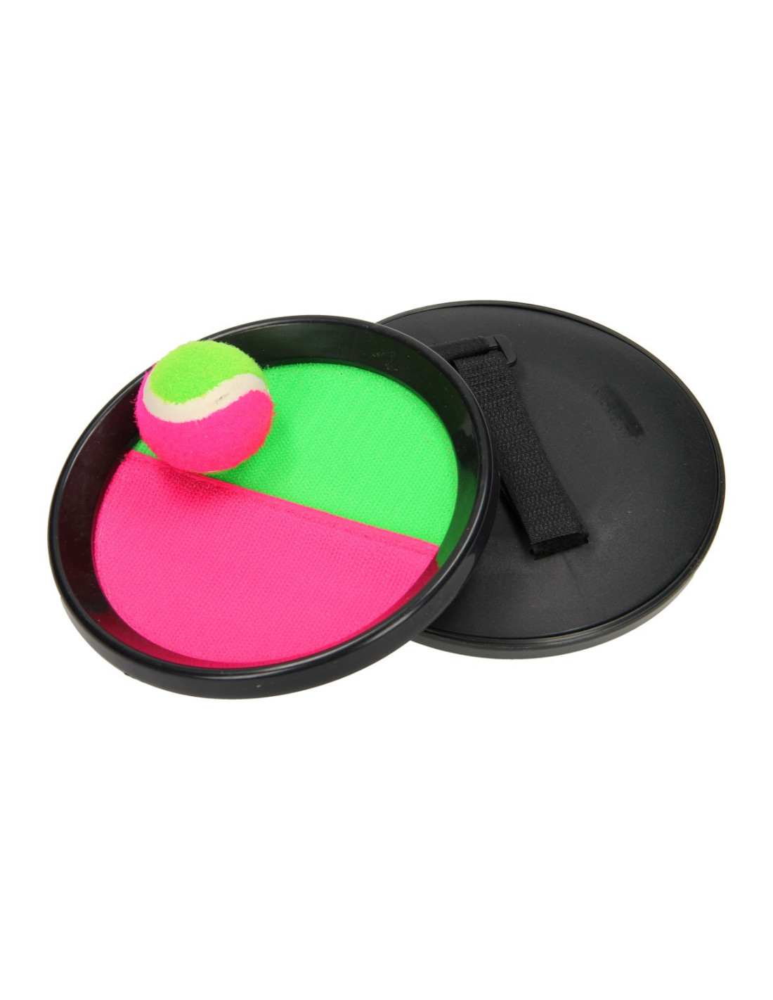 Met behulp van klittenband wordt een bal opvangen nu wel heel makkelijk gemaakt. Met één beweging heb jij de bal al te pakken! Deze set bestaat uit twee klittenband batjes en een bal.