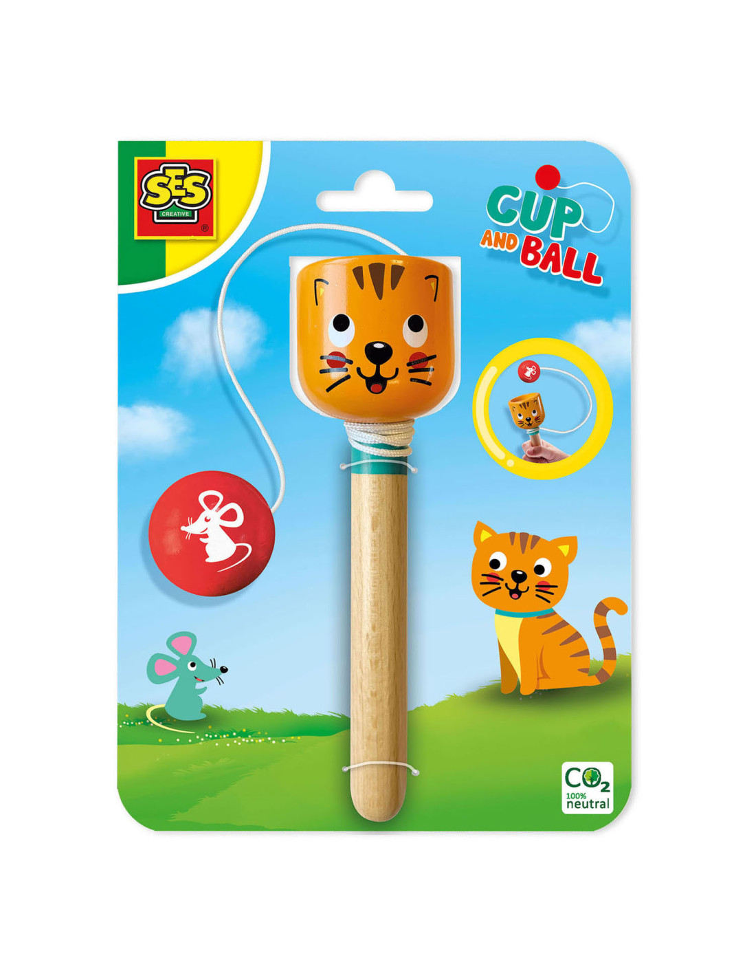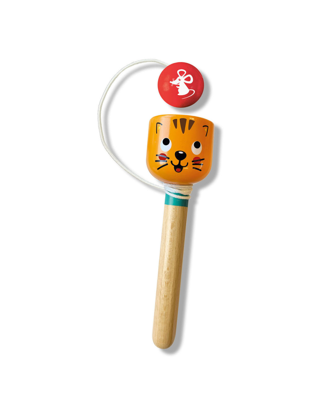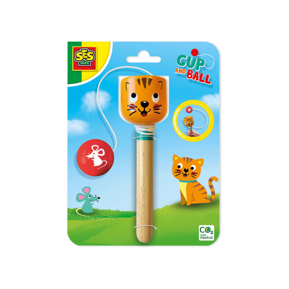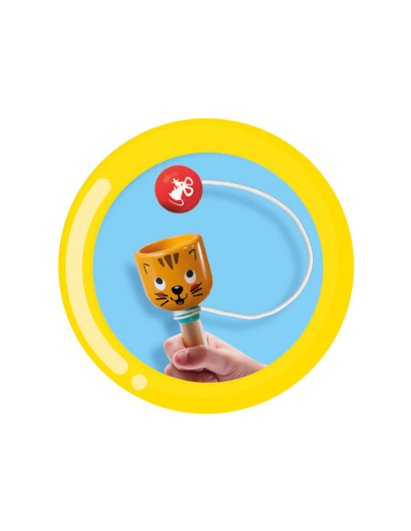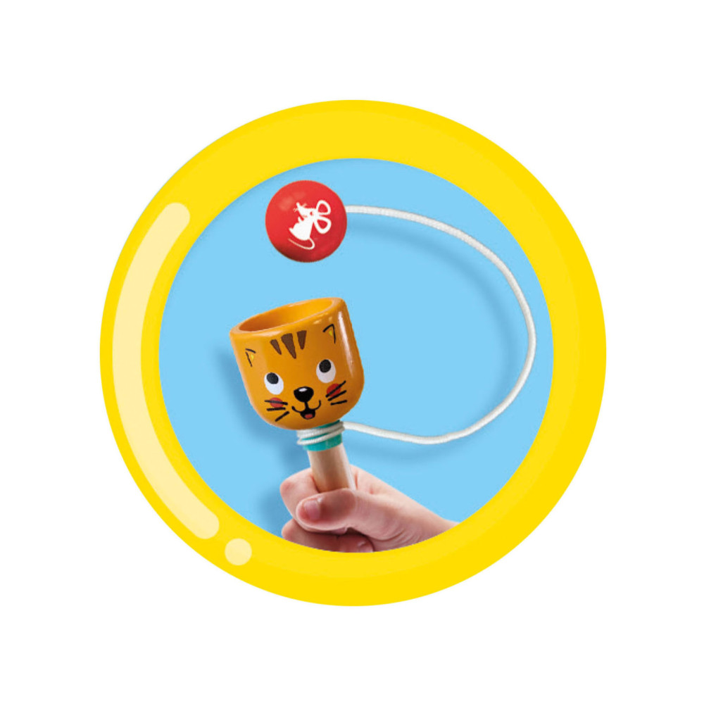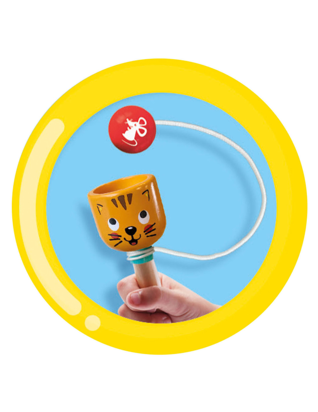 Lukt het jou om de kat de muis te laten vangen? Dat is de uitdaging van Vangbal �?? Kat. Probeer het balletje in de houten cup te gooien. Hoe vaak lukt het jou om de kat de muis te laten vangen?