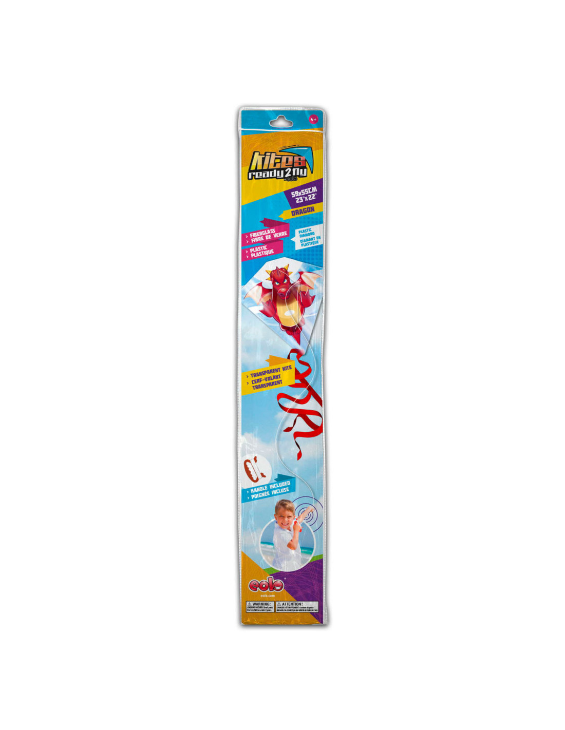 Verken het grote luchtruim met deze coole vlieger van Eolo! Deze kindervlieger heeft een indrukwekkende opdruk van een rode draak en is direct uit de verpakking klaar om mee te vliegeren. De vlieger heeft een stevig glasvezelframe dat snel en makkelijk te bevestigen is. De vlieger is op transparant materiaal geprint voor een realistische ervaring! Inclusief handvat, lijn en staart.