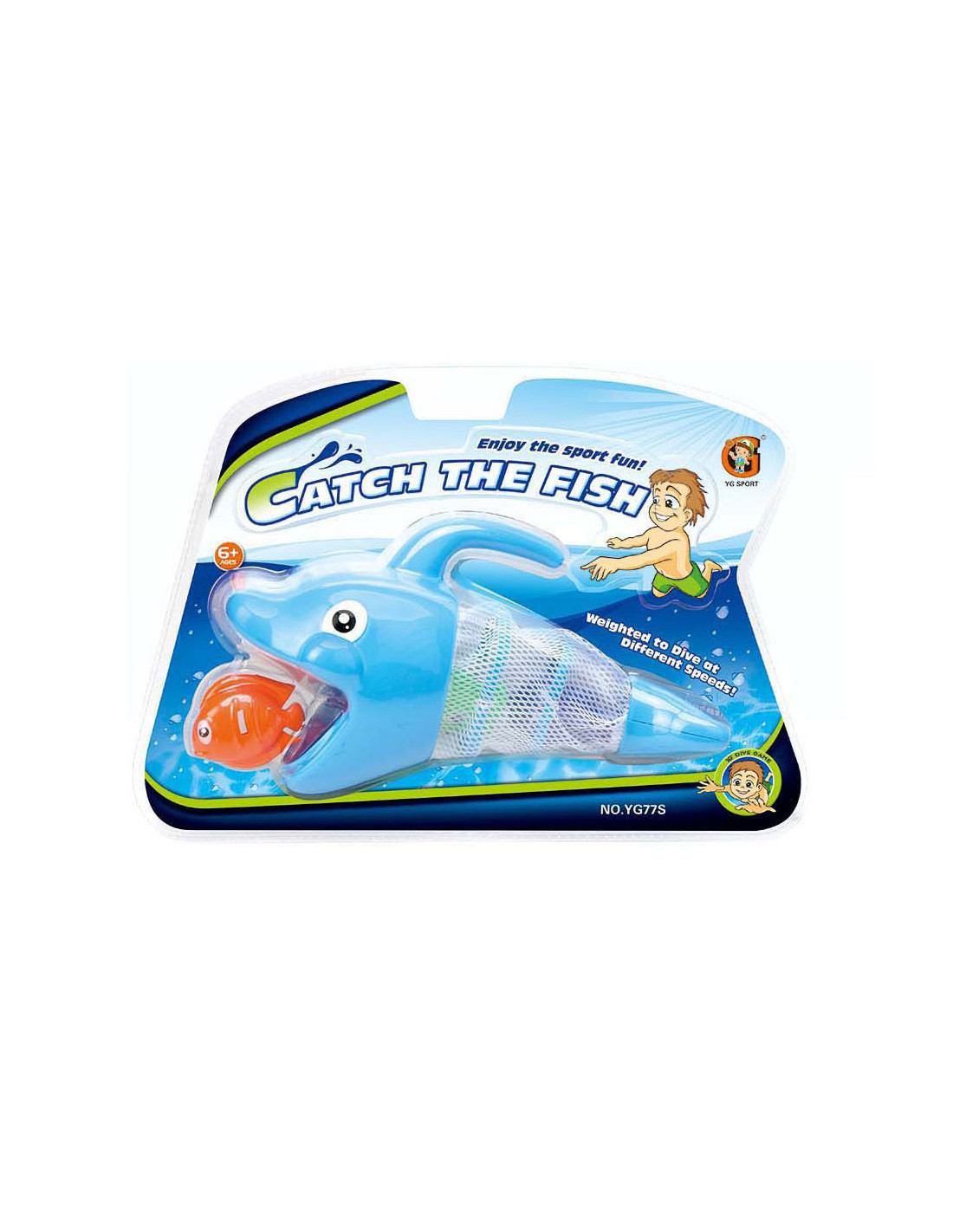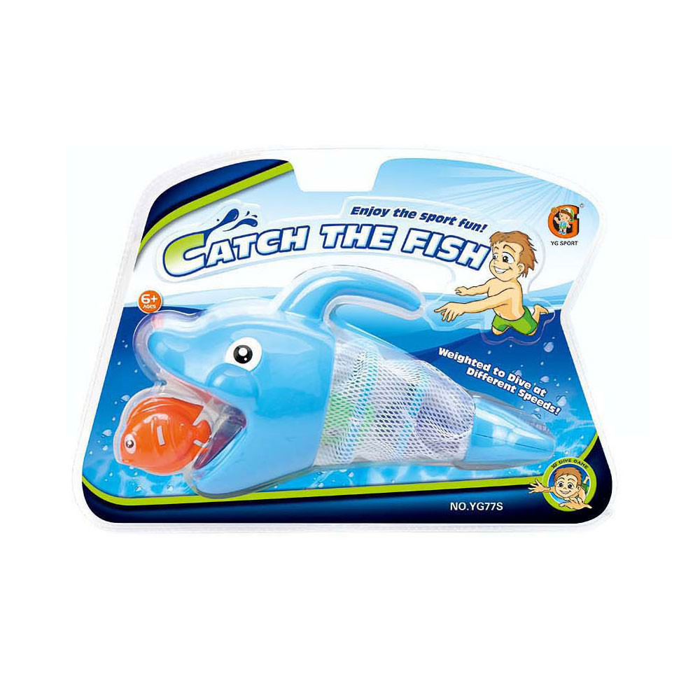 Duikset 'Vang de vis' met 3 visjes met verschillende gewichten, en een net in de vorm van een haai om ze te vangen. Geschikt vanaf 6 jaar.