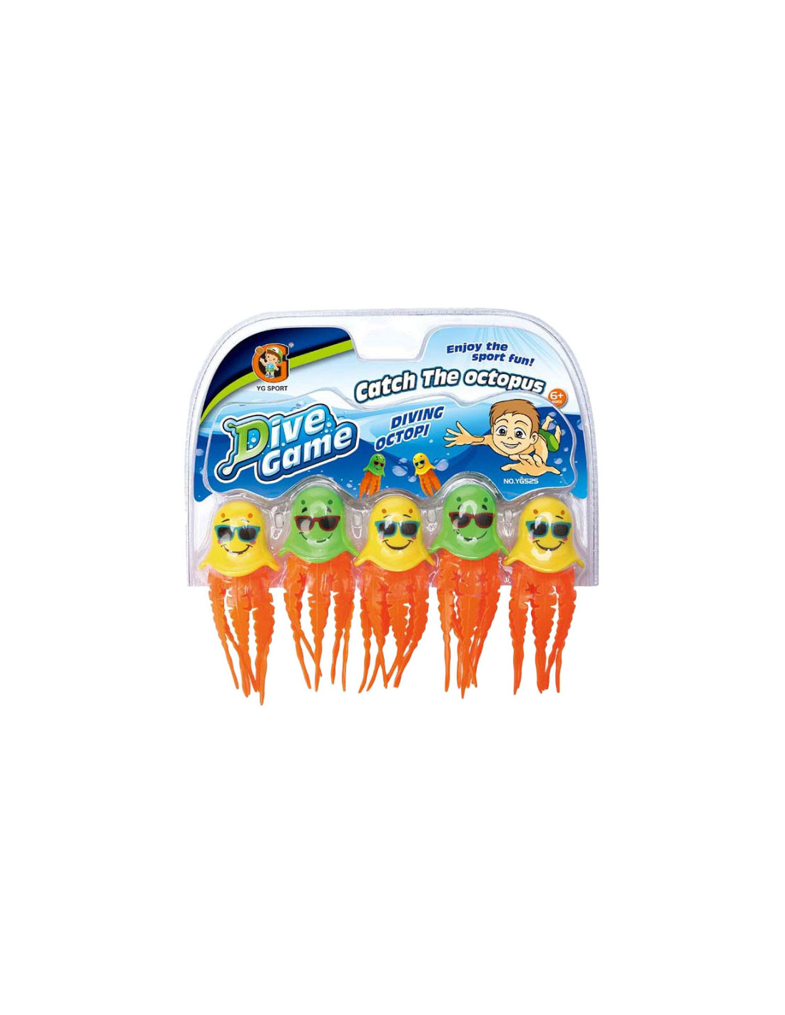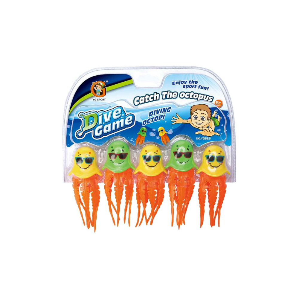 Duikspeelgoed bestaande uit 5 duikende, gekleurde octopussen. Laat ze in het water zakken en probeer ze allemaal te vangen! Geschikt vanaf 6 jaar.