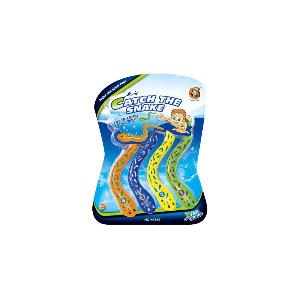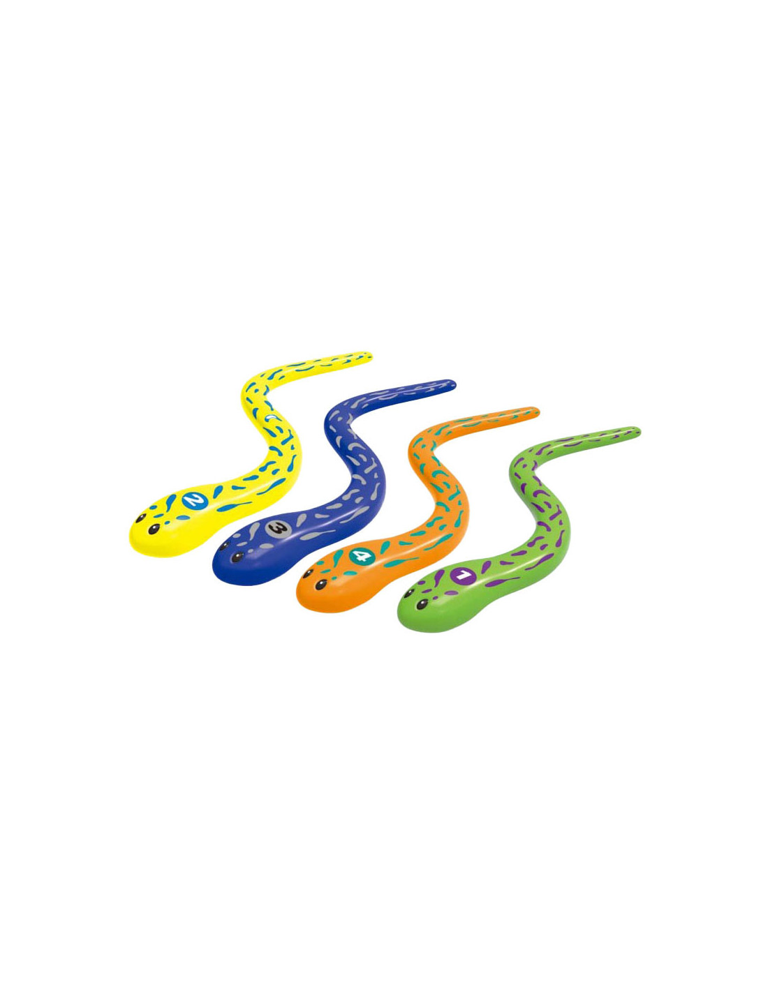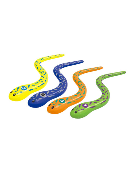 Set van 4 duikslangen in de kleuren groen, geel, blauw en oranje. Geschikt vanaf 6 jaar.
