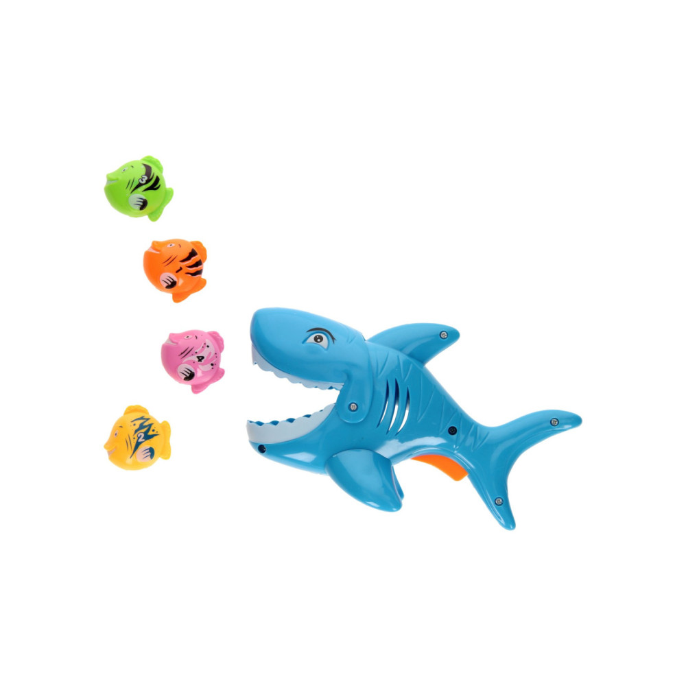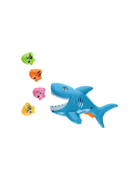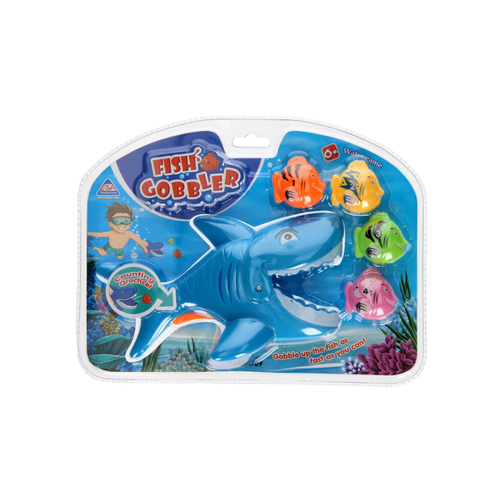 Hap, hap, hap, hap! Probeer met de Duikset Haaienjacht zo snel mogelijk alle visjes uit het water te happen! Pak de kunststoffen haai bij zijn staart, druk op de oranje knop en kijk goed waar de 4 kleine visjes zwemmen. De Duikset Haaienjacht is een leuke uitdaging voor in het water!