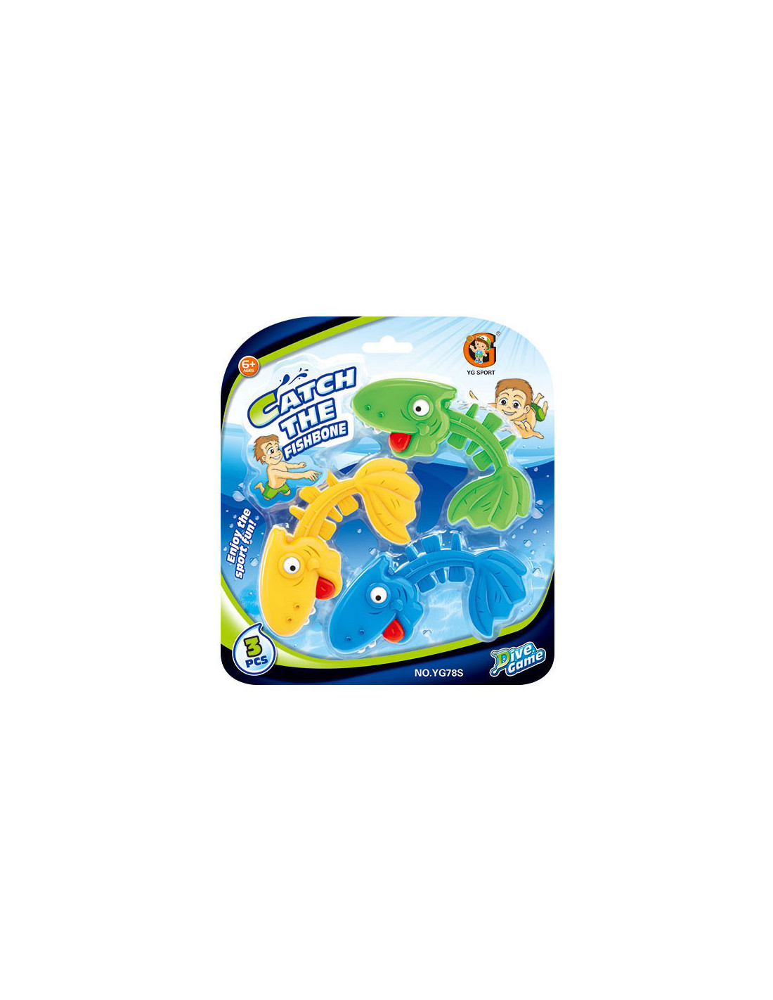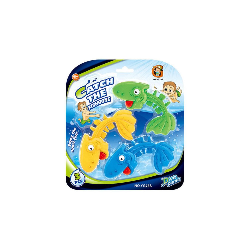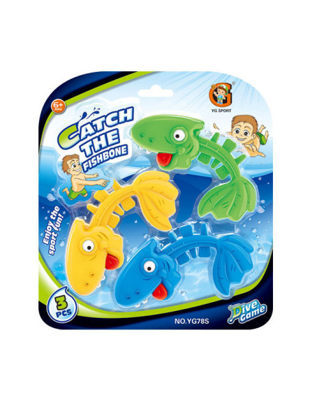 Set van 3 duikspeeltjes in de vorm van gratenvissen. Geschikt vanaf 6 jaar.