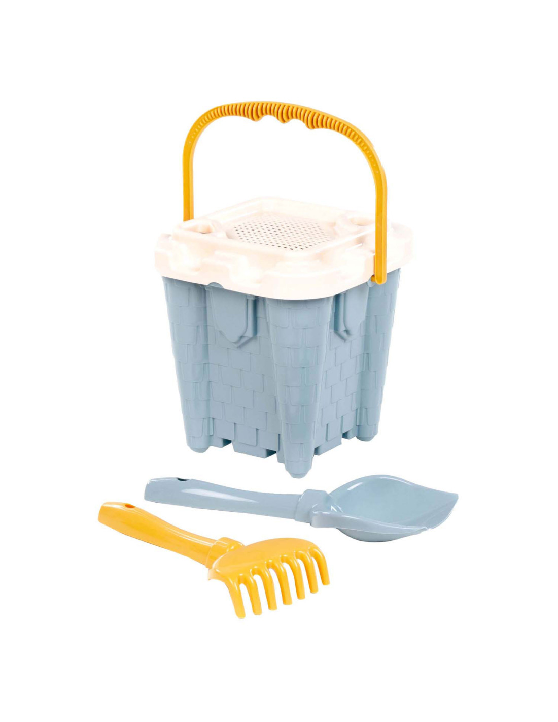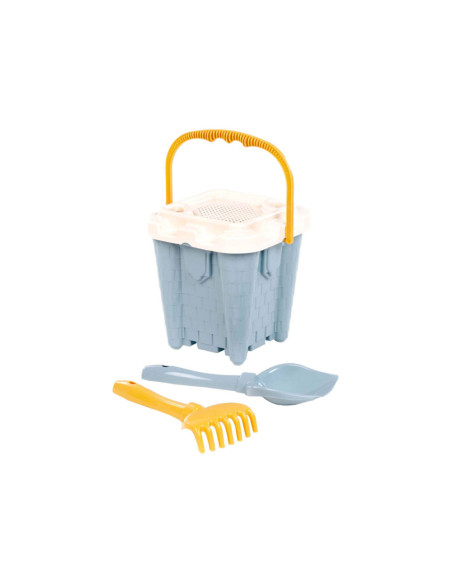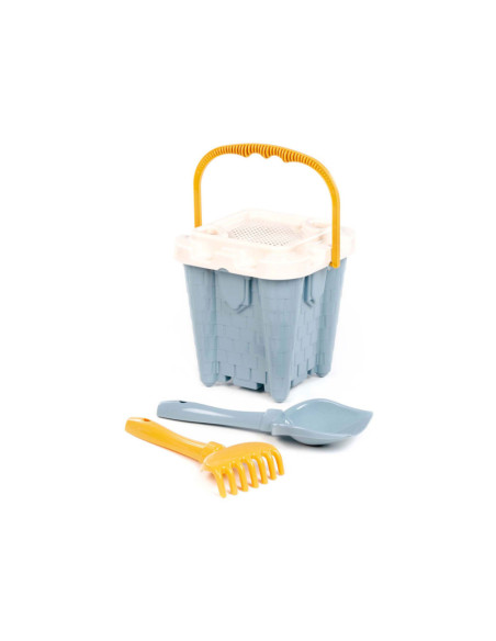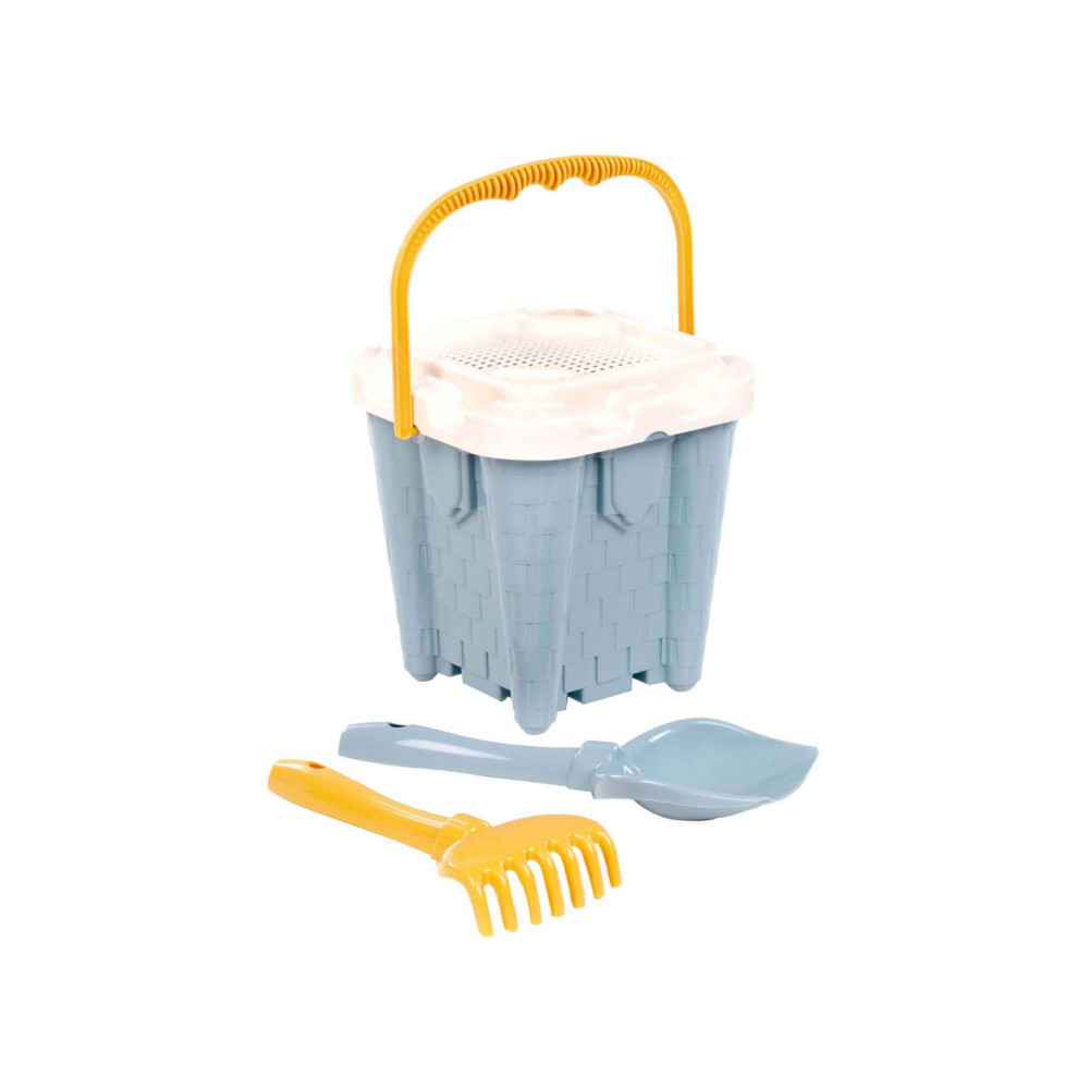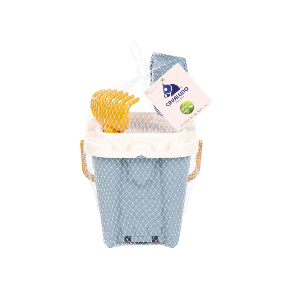 Cavallino kasteel blauwe emmerset, 4dlg. Met 1 hark, 1 schep en 1 zeefdeksel. Geschikt voor kinderen vanaf 12 maanden oud.