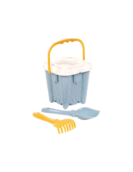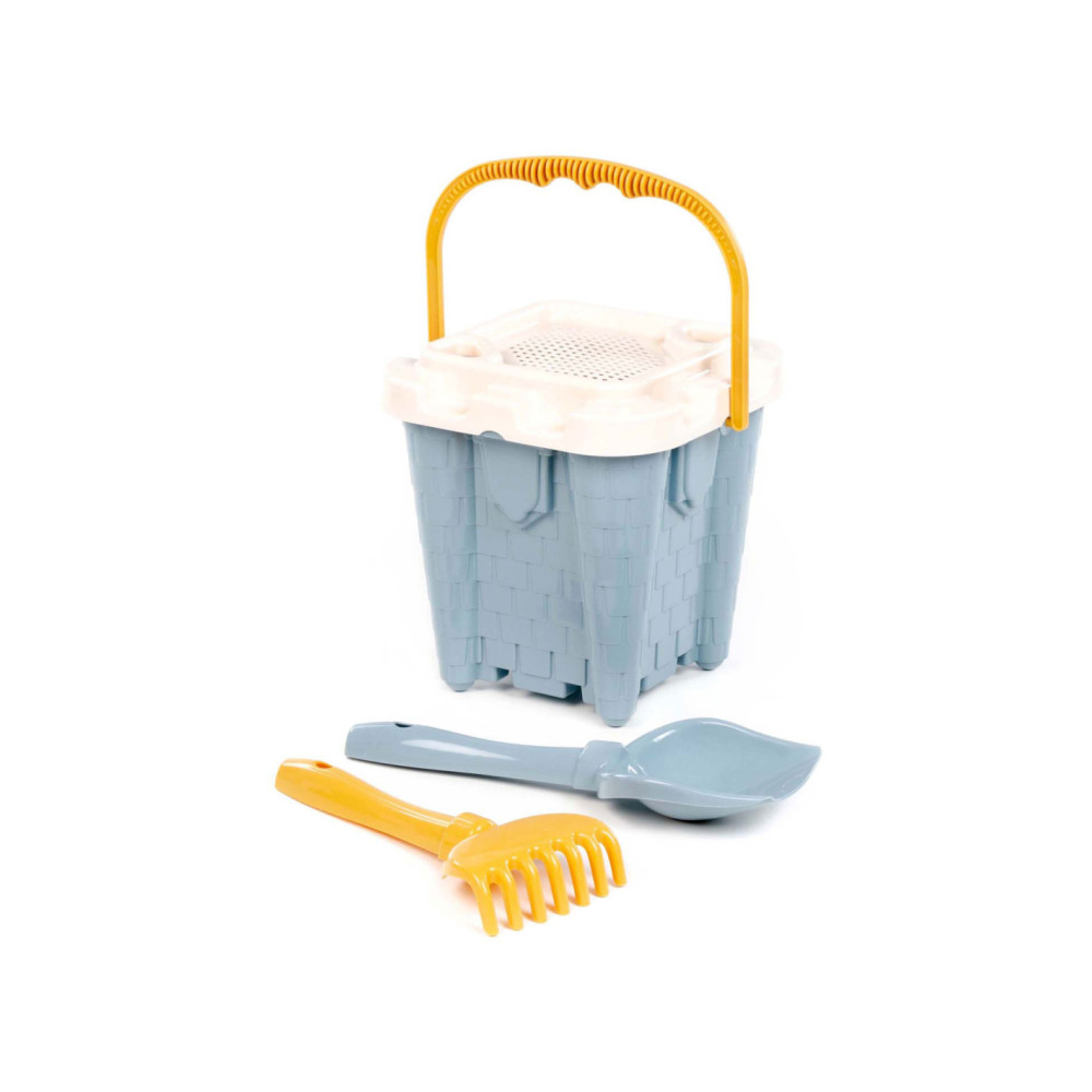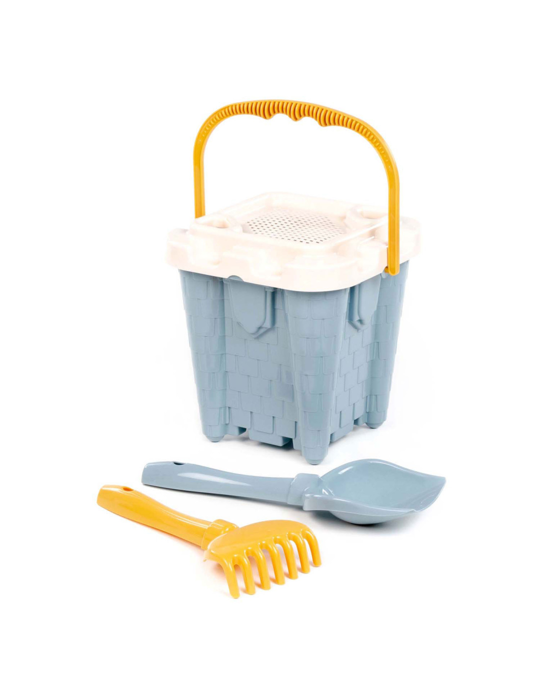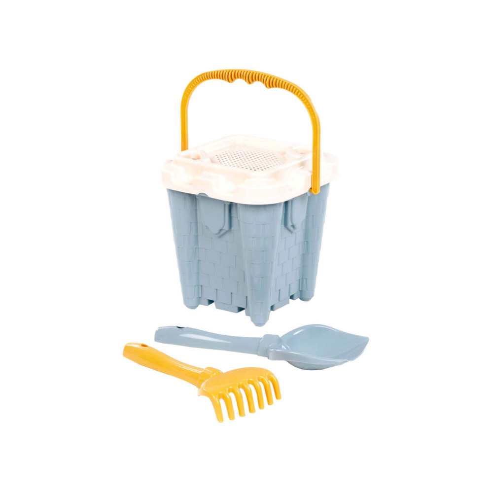Cavallino kasteel blauwe emmerset, 4dlg. Met 1 hark, 1 schep en 1 zeefdeksel. Geschikt voor kinderen vanaf 12 maanden oud.