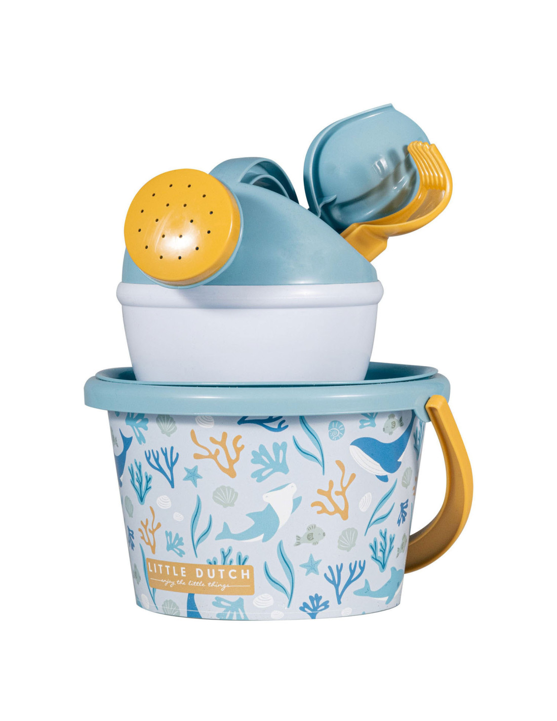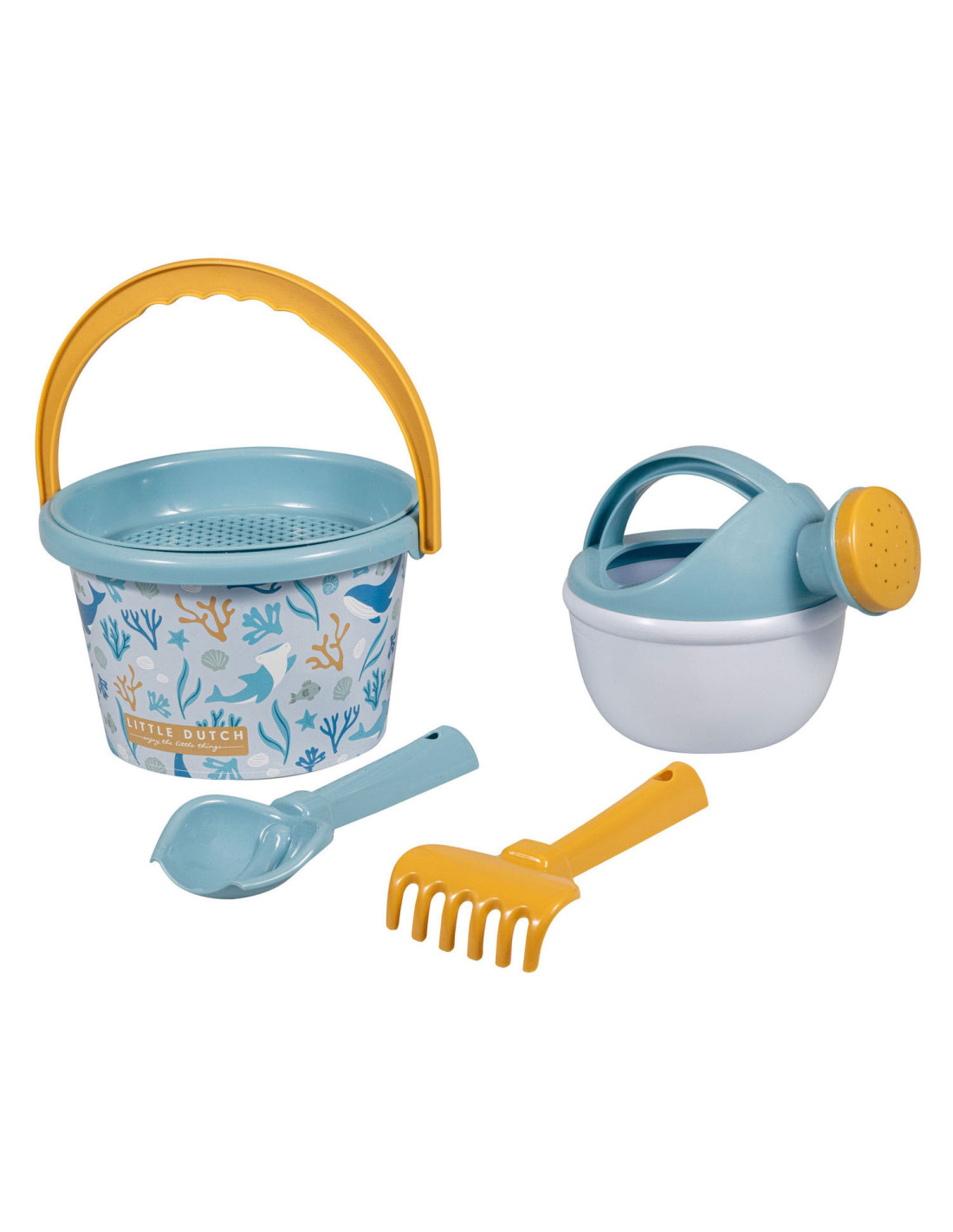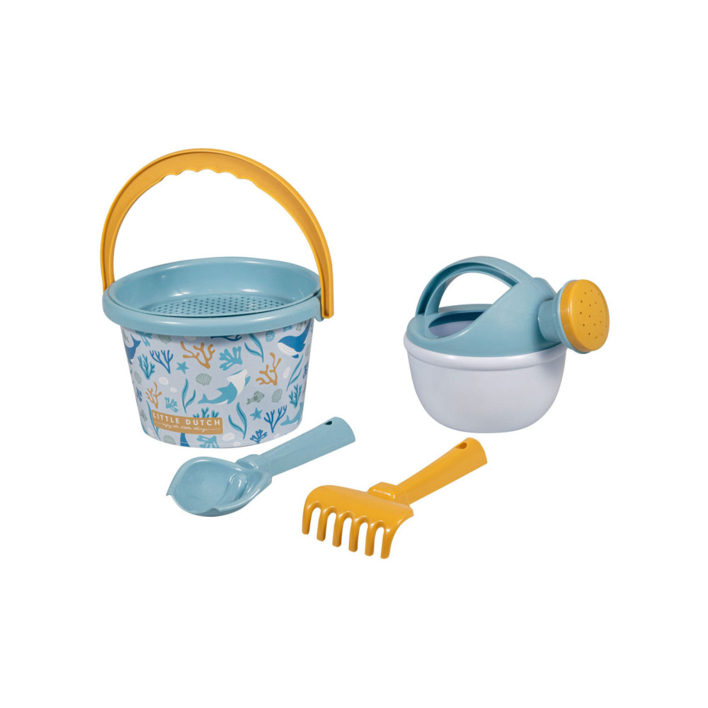 De Little Dutch Strandset Ocean Dreams Blue is de ideale metgezel voor eindeloos speelplezier op het strand. Met zijn betoverende ontwerp en mooie blauwe kleur zal deze strandset de verbeelding van je kleintje prikkelen. De set bestaat uit een schepje, een harkje en een vormpje, allemaal gemaakt van duurzaam materiaal voor langdurig gebruik. Laat je kindje de mooiste zandkastelen bouwen, schatten ontdekken en creatieve vormen creëren met de Little Dutch Strandset Ocean Dreams Blue. Een must-have accessoire voor urenlang speelplezier in het zand.