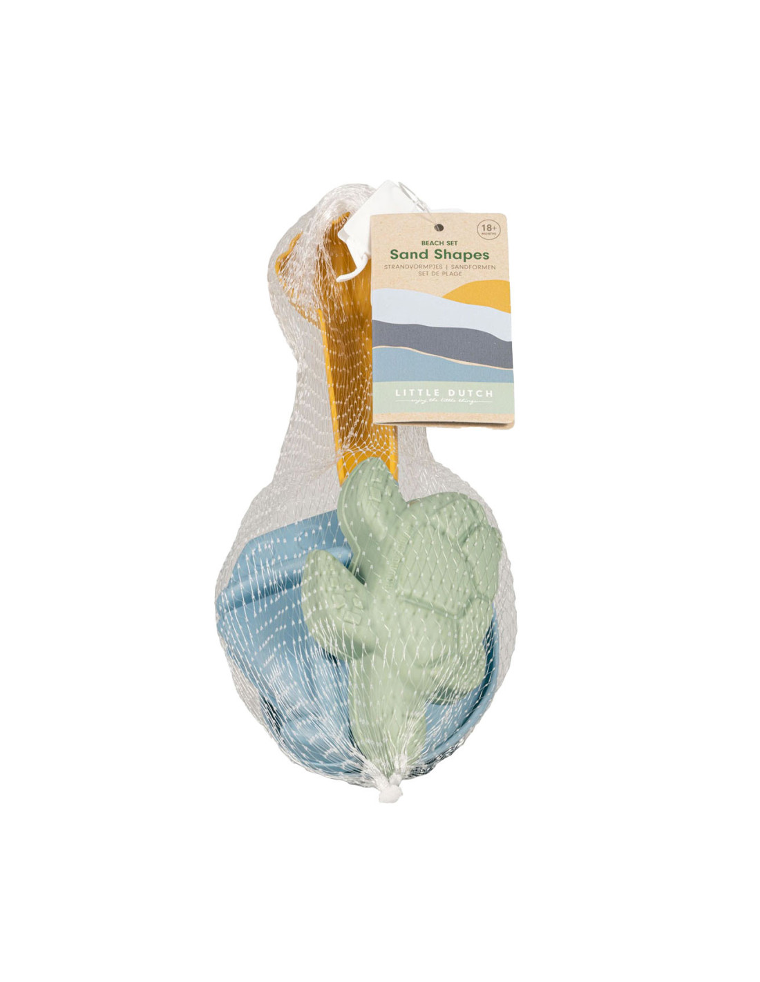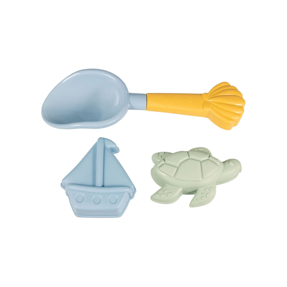 Uren lang speelplezier op het strand met dit Little Dutch strand setje. De set bestaat uit een schepje en 2 zandvormen uit het Sailors Bays thema. Verpakt in een netje met een hangtag. Geschikt voor kinderen vanaf 18 maanden.
