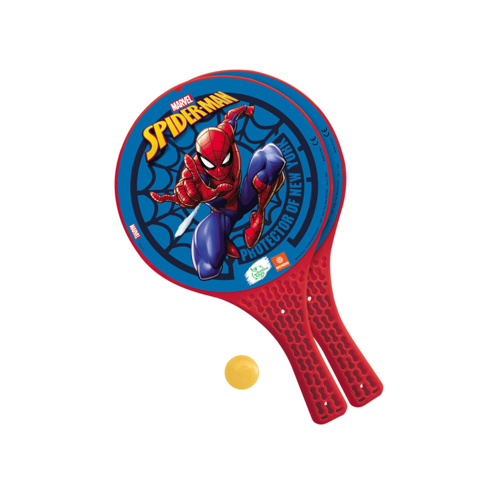Beachball set Spiderman. De rackets hebben een diameter van 22 centimeter.